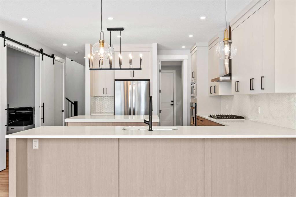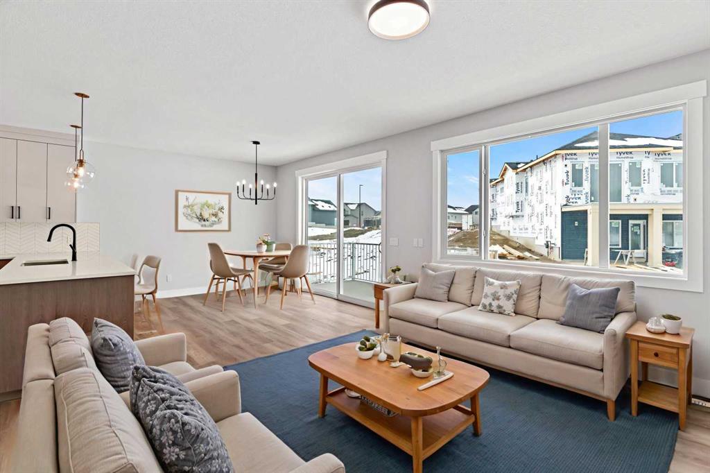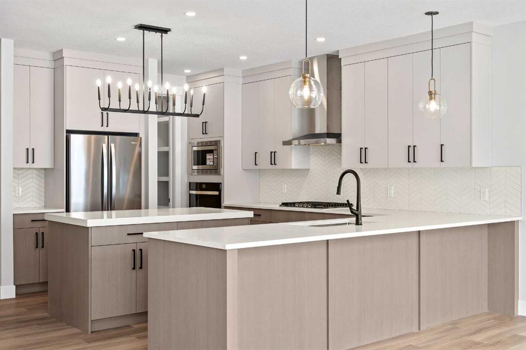 Experience refined living in Sunset Ridge with this thoughtfully designed Green Cedar Homes residence—a 5-bedroom, 5-bathroom home offering over 2,200 sq. ft. of above-grade living space, plus a fully developed basement. Blending modern elegance with functional design, this home showcases the quality craftsmanship Green Cedar is known for. The main floor features an inviting open-concept layout, filled with natural light and designed for both entertaining and everyday living. The chef-inspired kitchen is appointed with sleek cabinetry, premium finishes, and a walk-through pantry that connects seamlessly to a functional mudroom—ideal for busy households. A versatile flex room on this level provides the perfect space for a home office, playroom, or quiet study. Upstairs, a spacious bonus room creates a comfortable retreat for family gatherings or movie nights. The primary suite offers a private sanctuary, complete with a spa-inspired ensuite and a generous walk-in closet. Two additional bedrooms, each with convenient access to full bathrooms, provide ample space and privacy. The fully developed basement extends the home’s functionality with two additional bedrooms, a full bathroom, and a large recreation area, making it ideal for guests, extended family, or multi-generational living. Located in one of Cochrane’s most sought-after communities, Sunset Ridge offers scenic walking paths, nearby schools, parks, and breathtaking Rocky Mountain views, all just minutes from town amenities.