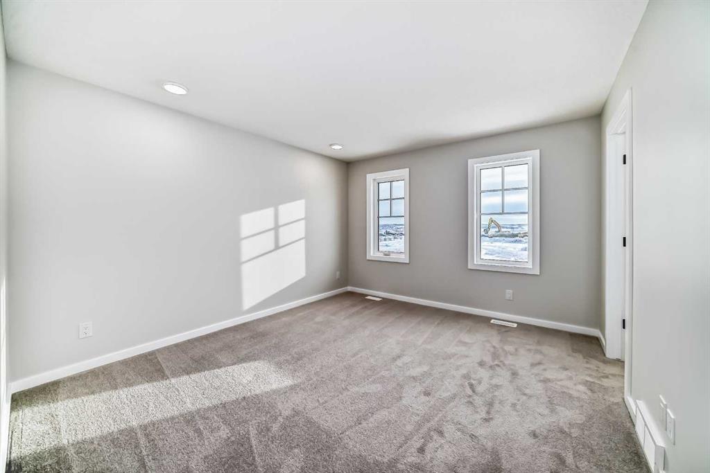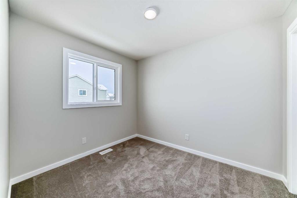 LET’S SKIP THE PART WHERE LISTINGS PRETEND EVERY HOME IS LIFE-CHANGING. This one is simply — and refreshingly — WELL THOUGHT-OUT. The main floor doesn’t force a moment of suspense or a “grand reveal.” It just opens into a BRIGHT, PRACTICAL LAYOUT that gets the fundamentals right. The POCKET OFFICE is tucked off to the side where it belongs, not jammed into a hallway. The living room and dining area fall into a natural rhythm, anchored by an ELECTRIC FIREPLACE that adds warmth without stealing the spotlight. And the kitchen keeps things clean and functional with 48” UPPER CABINETS, QUARTZ COUNTERS, a CHIMNEY HOOD FAN, and a BUILT-IN MICROWAVE that isn’t fighting for visual attention. Light is a quiet strength here, lifted by the 9′ CEILINGS and the way the windows pull brightness across the main floor. Warm wood-tone LVP carries the main level without any fuss. Out back, the 10′ X 10′ REAR DECK is already finished, and the REAR PARKING PAD keeps things simple and functional — no builder timelines, no guesswork. The FULL-WIDTH FRONT PORCH gives the home presence without being precious, and offers a practical spot to shake off the day before stepping inside. Upstairs, the BONUS ROOM does exactly what a bonus room should: fill the gap between bedrooms with a space that flexes easily without needing a title. The two secondary bedrooms sit together at the rear of the home, while the master takes the front — larger, brighter, and anchored by a WALK-IN CLOSET WITH NATURAL LIGHT. The ensuite keeps things straightforward with a glass-and-tile shower and quartz carried through from the main level. Practical upgrades are already handled: a HIGH-EFFICIENCY FURNACE, gas lines for both stove and BBQ, and the full 200-amp electrical panel. The basement is legitimately future-ready with 9′ foundation walls, a separate side entry, and ROUGH-INS FOR A BATHROOM, SINK, AND A SECOND LAUNDRY LOCATION — not the “maybe someday” setup buyers sometimes discover after the fact. Rangeview – Section 23 is built around a FARM-TO-TABLE PHILOSOPHY, where food, community, and daily life connect more naturally. COMMUNITY GARDENS, edible landscaping, pathways, and shared gathering spaces are woven in thoughtfully, without feeling themed. It’s less about buzz and more about rhythm. IMMEDIATE POSSESSION removes the waiting. From the layout to the long-term planning, this home delivers where it counts — and it shows best in person. Contact your agent and book a showing today! • PLEASE NOTE: Photos are of a DIFFERENT Spec Home of the same model – fit and finish may differ. Interior selections and floorplans shown in photos.