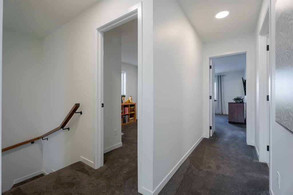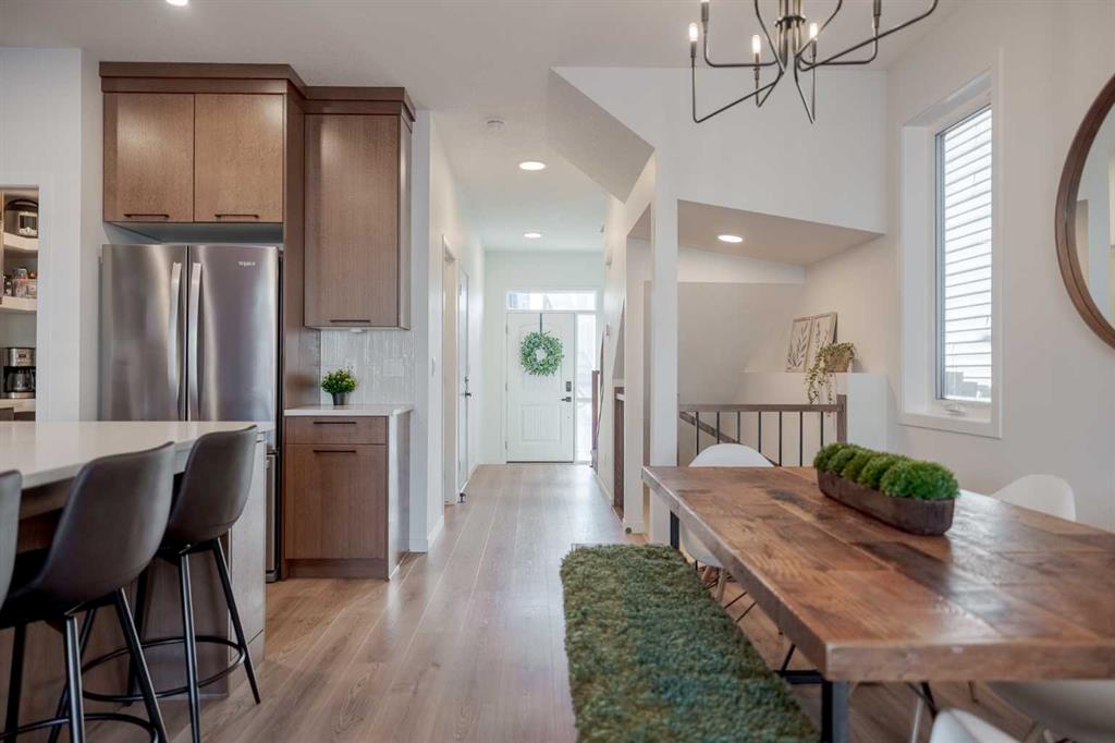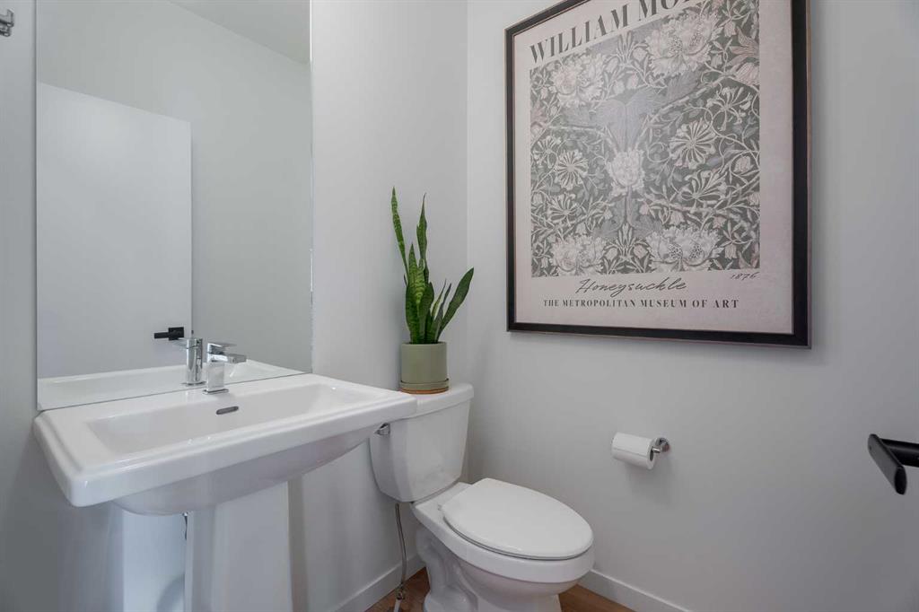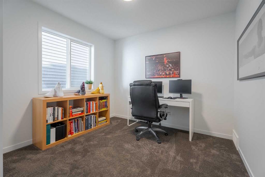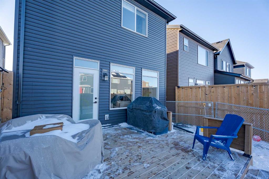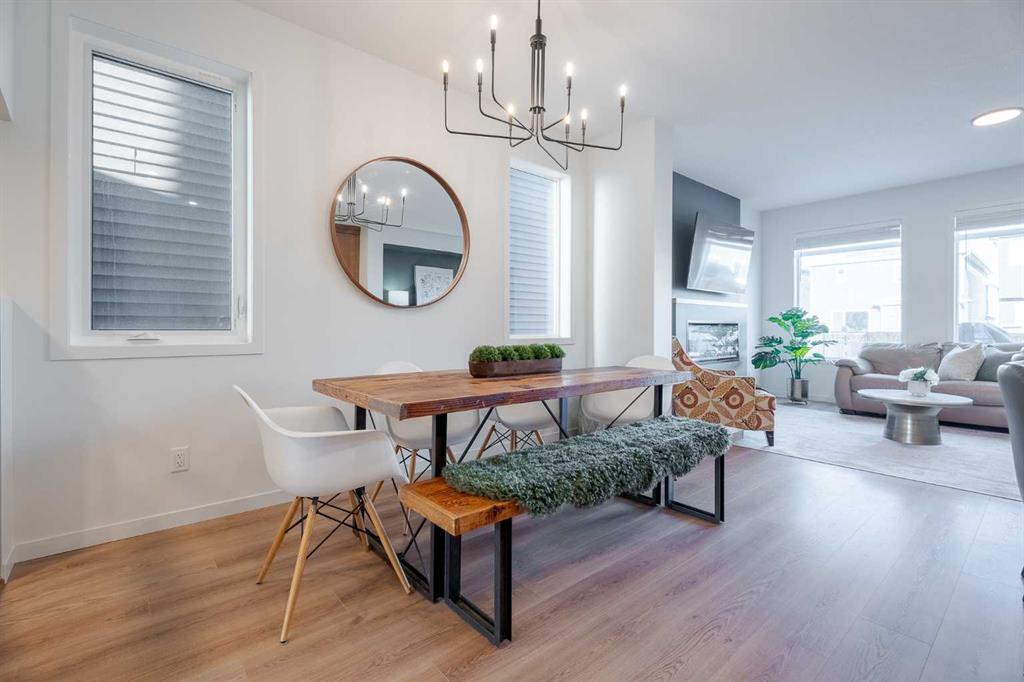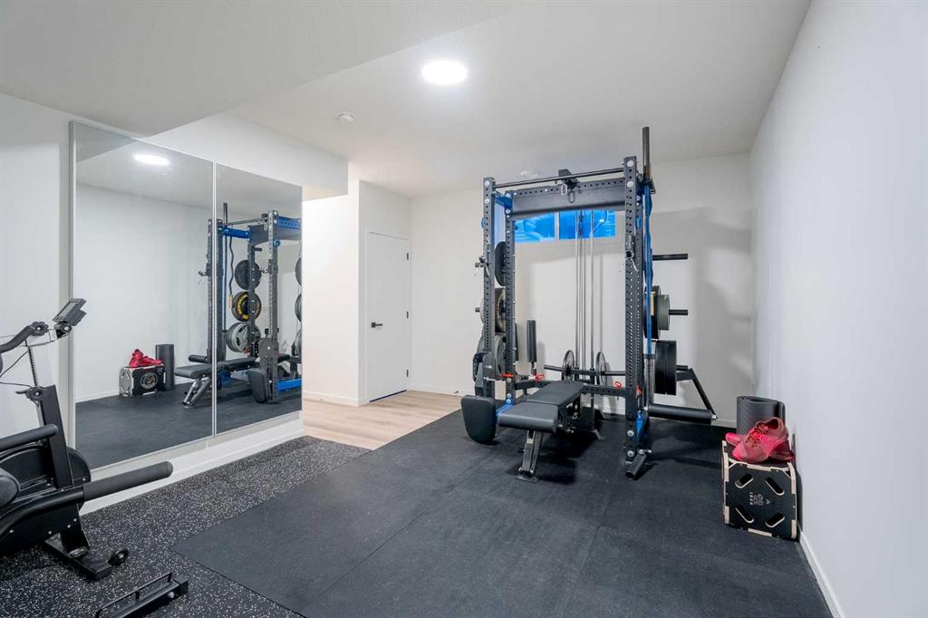 Welcome to an extraordinary residence in the prestigious southwest community of Belmont, where refined design and modern luxury converge. This newer, custom-built home is a masterclass in sophisticated living, thoughtfully curated with impeccable upgrades and meticulous attention to detail throughout, offering a truly elevated lifestyle. Upon entry, you are welcomed by an elegant, on-trend palette that beautifully complements the home’s timeless, earthy aesthetic. The stunning great room is anchored by upgraded wide-plank flooring and a striking 50-inch linear electric fireplace, complete with a bespoke oak mantel—an inviting focal point for intimate evenings and refined entertaining alike. The kitchen is nothing short of exceptional, designed to inspire both form and function. Highlights include a generous walk-in pantry with additional counter space, a show-stopping oversized island adorned with upgraded quartz countertops, and a custom designer backsplash. Floor-to-ceiling oak cabinetry, enhanced with additional drawers and storage, pairs seamlessly with premium appliances, including a gas range and counter-depth refrigerator, showcasing craftsmanship of enduring beauty. The main level is completed by a discreet and stylish powder room, ideal for guests. Upstairs, the private primary retreat is bathed in natural light and features a spacious walk-in closet and a spa-inspired ensuite with an oversized shower. Two additional well-appointed bedrooms share a beautifully designed family bathroom, offering comfort and elegance for family members or guests. The upper-level laundry room elevates everyday living with full-length hanging space and solid shelving, transforming routine tasks into a refined experience. The professionally designed lower level extends the home’s versatility, featuring a spacious family room—currently staged as a private gym—along with a four-piece bathroom and a fourth bedroom, perfect for guests or extended family. Thoughtfully upgraded lighting throughout the home creates a warm, inviting ambiance, enhancing every space. Outside, the fully landscaped yard adds exceptional curb appeal and provides a welcoming outdoor setting ideal for entertaining and relaxation. Set within the sought-after Belmont community, this home offers an unparalleled lifestyle defined by contemporary design, functional elegance, and a strong sense of community. Residents enjoy scenic pathways, playgrounds, a forthcoming outdoor shopping centre, future recreation facilities, a library, and convenient access to major roadways including Macleod Trail and Stoney Trail—ensuring effortless travel to downtown Calgary and the Rocky Mountains. This is a rare opportunity to claim a truly luxurious haven in one of Calgary’s most exciting new communities.