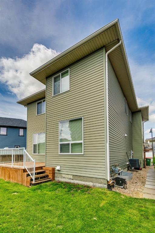 Welcome to the thoughtfully designed Williamsburg 2 by Broadview Homes—where style, comfort, and convenience come together. This well-maintained home features 9’ knock-down ceilings on the main floor, creating an open and inviting atmosphere. The spacious great room includes a cozy gas fireplace, while the well-appointed kitchen is equipped with granite countertops, a walk-in pantry, central island with raised eating bar, and a bright dining nook with direct access to the backyard. Step outside to enjoy the large rear deck, perfect for summer barbecues or relaxing evenings. The home also includes central air conditioning, keeping you cool and comfortable all season long. Upstairs, the home offers a versatile bonus room, a 4-piece main bath, and three generously sized bedrooms. The primary suite is a private retreat, featuring a walk-in closet and a spa-inspired ensuite complete with a soaker tub. Additional upgrades include new impact-resistant shingles, freshly painted throughout with neutral color tones, underground sprinklers, and rear lane access. This home is ideally situated near several top-rated schools, including Kenneth D. Taylor School, Our Lady of Grace School, Panorama Hills School, and William Aberhart High School, making it perfect for families. Located in the desirable community of Evanston, residents will enjoy convenient access to Evanston Towne Centre with its variety of shopping and dining options, as well as excellent recreation opportunities such as hockey rinks, an aquatic centre, public library, and indoor sports facilities. The neighborhood also features scenic walking trails and tranquil pond areas, creating a perfect blend of suburban peace and active family living.