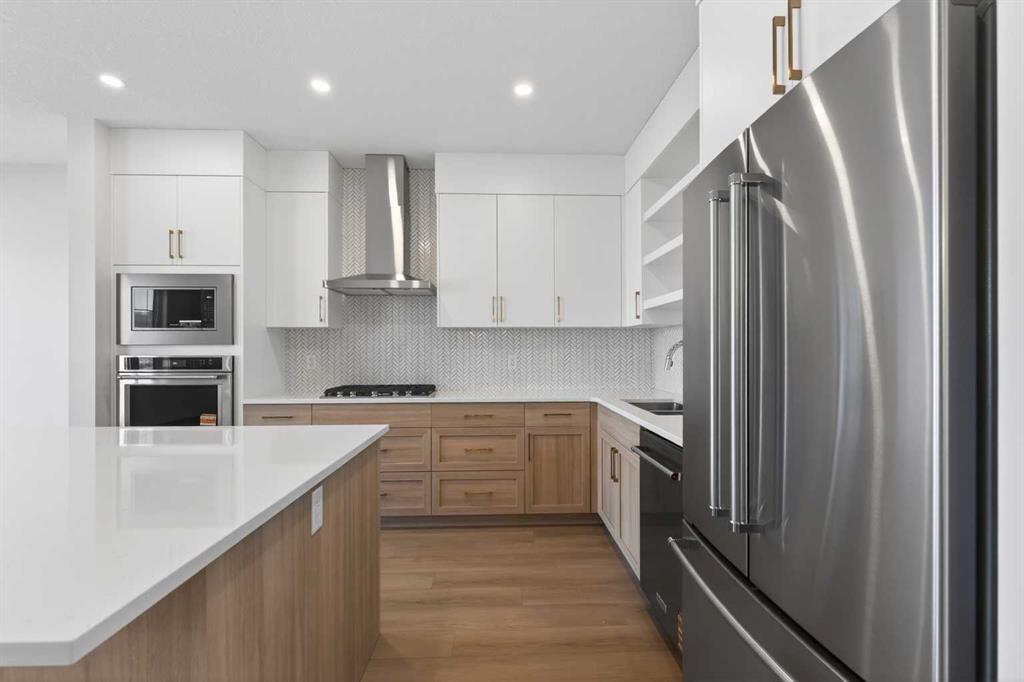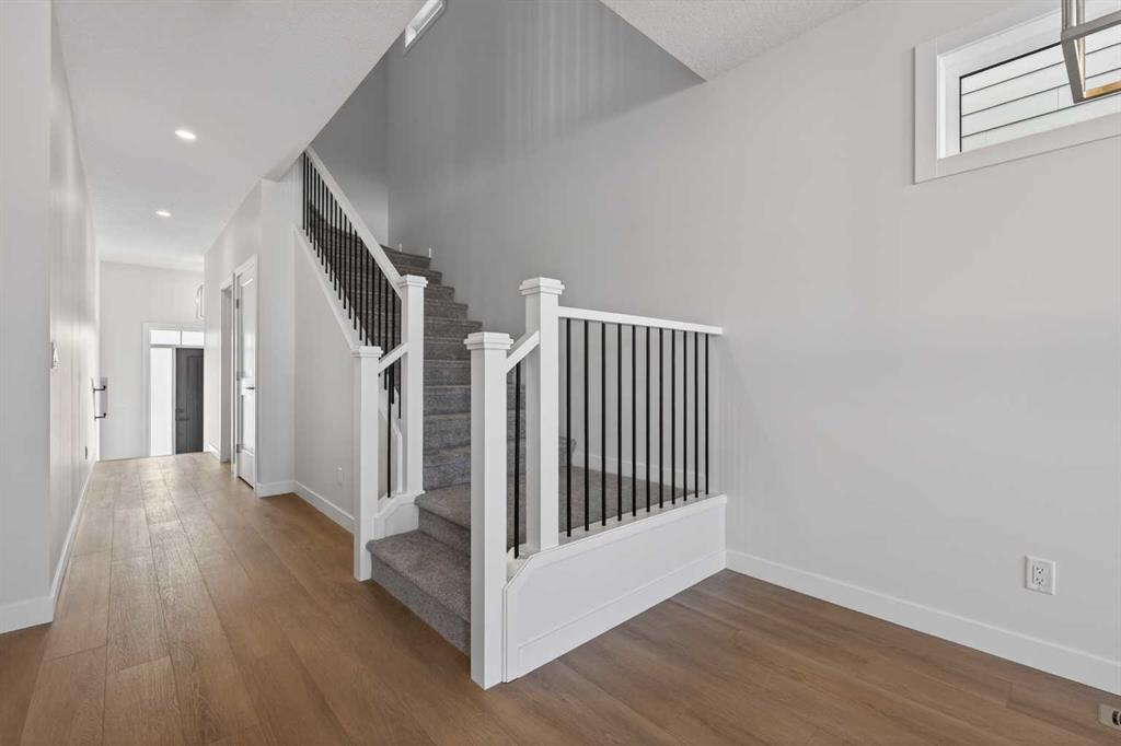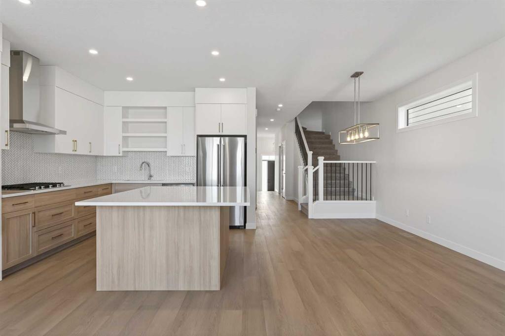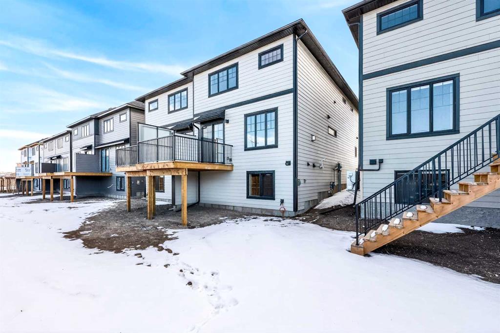OPEN HOUSE, March 1, Sunday 2-4pm**New Luxury home with many upgrades! Stunning 3 bedroom, 2.5 Bath Home is ready for immediate possession. Built by Partners with Full New Home warranty. Entering in the front door you will notice beautiful upgraded LPV flooring. Stepping into the BRIGHT OPEN Main floor the stunning Chef’s kitchen will get your attention with it’s Huge island, Upgraded cabinets with soft close drawers & doors, Quartz counters, Walk-in pantry, ALL Kitchen Appliance are High-End Stainless Steel “Kitchen Aide” Gas stove top, built-in convection oven, Built-in microwave, Refrigerator & Dishwasher. The Dining room is family size, and the Generous Livingroom has a gas fireplace with gorgeous front facia and Mantle. The fireplace also has a fan for circulating warm air. There are garden doors to the deck that has a gas-line for Bar-B-Q. All light fixtures are LED. Completing the main floor is a Powder room. Up the stairs you will notice the wide staircase with upgraded railings. Luxury appointments continue on the second floor starting with a large family Bonus room with extra LED lighting. The Primary suite is King sized, with a large walk-in closet, The En-suite has been upgraded and is gorgeous with it’s walk-in shower, separate soaker tub and Quartz counters. There are 2 more large bedrooms with large closets and a 4 piece bath. The laundry is complete with high end washer/dryer, conveniently located on the second floor. Home is equipped with “hot water on demand” for those long hot showers. The lower level is unfinished but has been well laid out to create more living space, with High ceilings, plumbing & electrical neatly tucked in, home is roughed in for Central AC, Basement has a rough -in for full bath. HUGE Egress window has been added. The garage is insulated & drywalled. **Walkway and driveway to be poured concrete as soon as weather permits. All this plus a Great Location. A short walk or bicycle ride to the Farmer’s market. Plenty of shopping and Great Restaurants close by. Easy access to Stony Trail and Crowchild Trail.