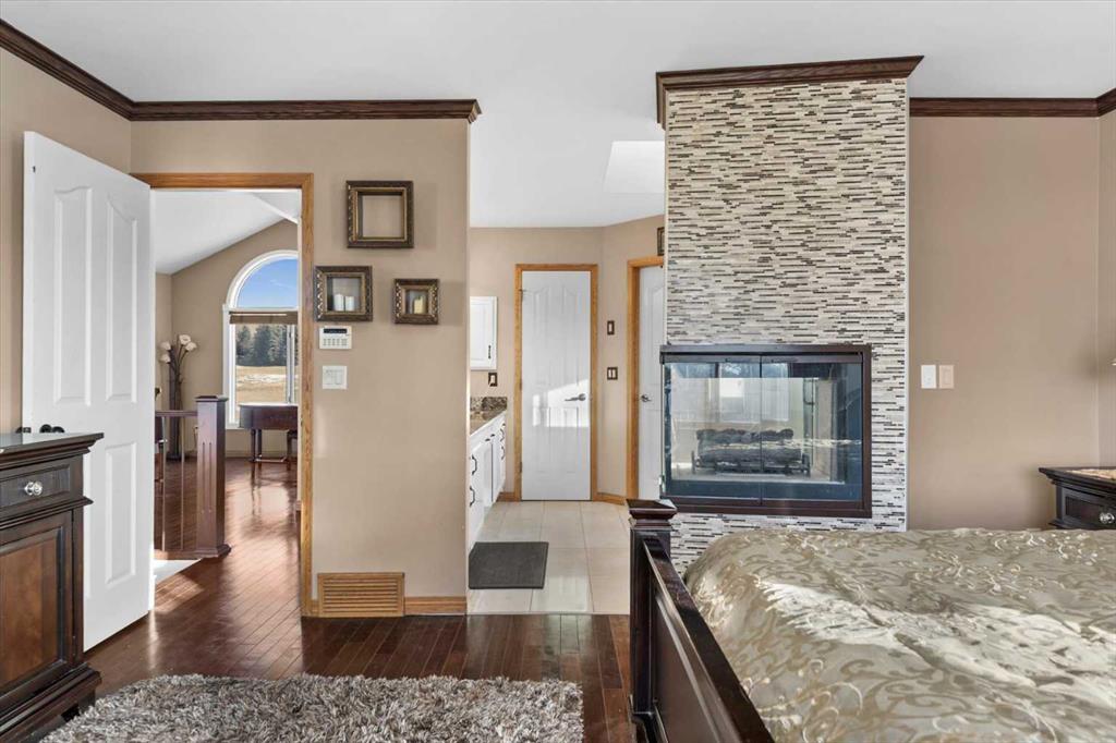 Upstairs, you’ll find a generous bonus room and the primary bedroom, which includes a 5-piece ensuite and a triple-sided fireplace. In addition to the primary suite, the upper level offers a total of four bedrooms, including the primary plus three additional bedrooms, one of which features its own private 2-piece bathroom. A separate 4-piece bathroom completes the upper level, providing excellent convenience and flexibility for family or guests.