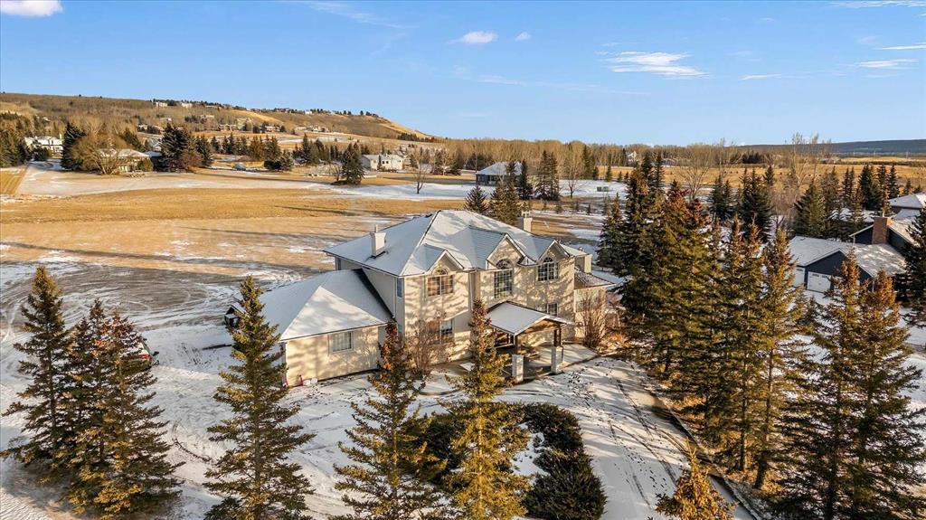 Welcome to Rosewood Estates, an exceptional Springbank community located just minutes west of Calgary. This original-owner 2-storey home with a walkout basement sits on a beautifully landscaped 2-acre lot and offers over 5,000 sq. ft. of thoughtfully designed living space, all positioned to capture sweeping, unobstructed views.