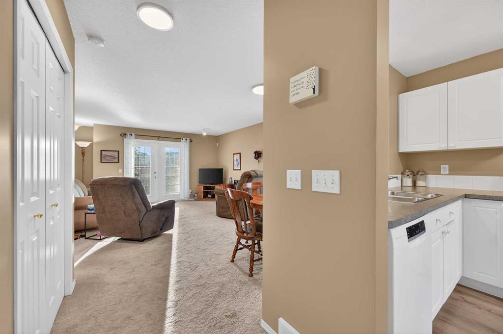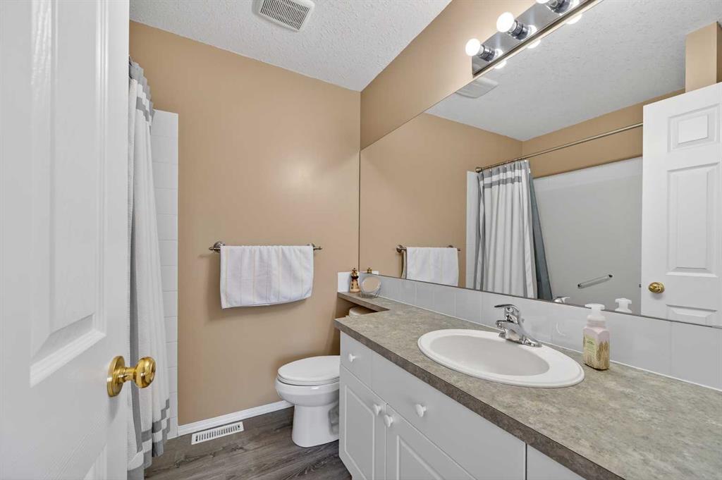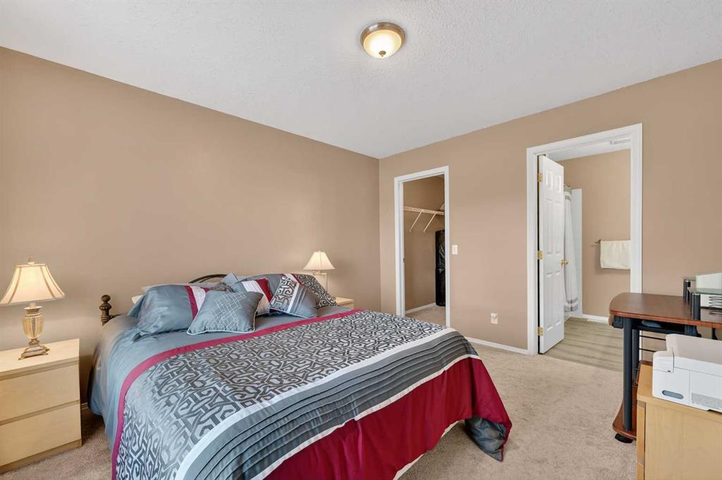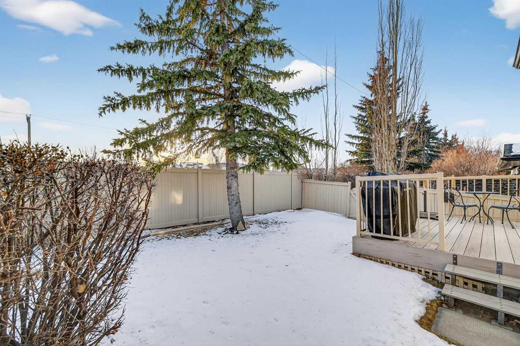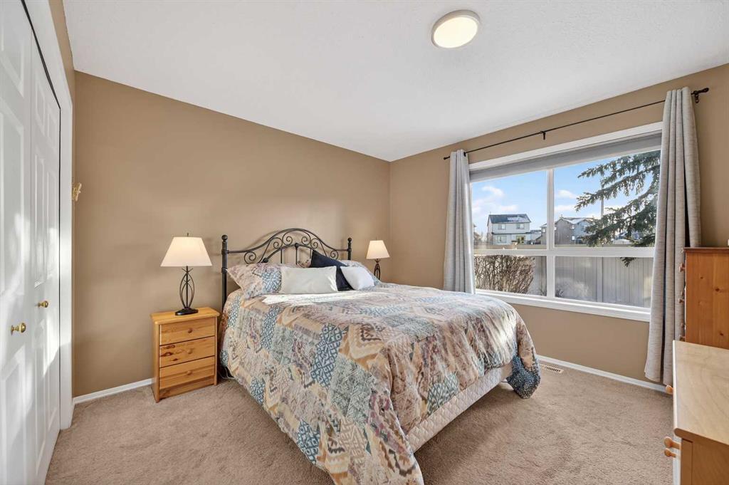 Welcome to West Pointe Villas, Airdrie’s sought-after adult living community, where pride of original ownership is evident throughout this beautifully maintained home. Thoughtfully designed with comfort and functionality in mind, the main level features an open-concept kitchen overlooking the living room, creating a bright and airy atmosphere. A generously sized dining area sits adjacent to a large window, offering an inviting space for everyday meals or entertaining. French doors from the living room lead to a sunny south-facing deck, overlooking a peaceful, fully fenced backyard—perfect for relaxing or enjoying outdoor time. A spacious bedroom on the main level can serve as a primary or guest room and is conveniently located next to a full four-piece bathroom. The upper level is dedicated entirely to a private primary retreat, featuring a large walk-in closet and a full four-piece ensuite, providing a quiet and comfortable escape. The lower level includes an additional bedroom, a welcoming family room, aundry area, and a large storage room, offering excellent versatility and extra living space. There is a rough in for a 3rd bathroom in the basement. Completing the home is a beautifully landscaped backyard and a single attached garage, making this property an exceptional opportunity for low-maintenance living in a well-established community.