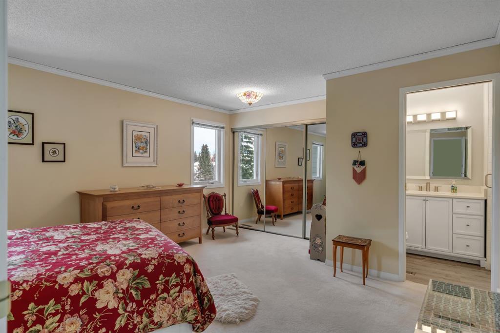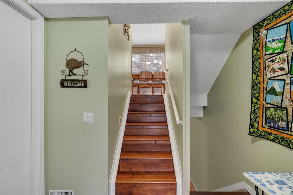 Welcome to Woodacres and peaceful living on the ravine of Fish Creek Park with all that nature has to offer. This 3-bedroom, 2.5-bathroom home, with attached garage, has all the room you need. Upon entering the home, you are greeted by a good-sized foyer, from there, up to the kitchen with island and a generous amount of cupboards and counter space. Attached is the dining area with access to your large backyard patio. The living room is a generous size and has a corner fireplace and a large triple paned window looking out onto the ravine. The next level has two additional bedrooms and a 4-piece bathroom. The top level is dedicated to your primary bedroom, which can easily accommodate a king-sized bed and dressers, and a fully renovated 3-piece ensuite. The basement is fully finished with recreation room, 2-piece bathroom and a utility area. Updates done over the past years: roof, Hardie board siding, hardwood flooring, windows, doors, garage door, ensuite and patio. The complex is located in a quiet corner of Woodbine, no busy roads here, with quick access to Stoney Trail, and located close to shopping, amenities and transit. Come have a look and Welcome Home!
