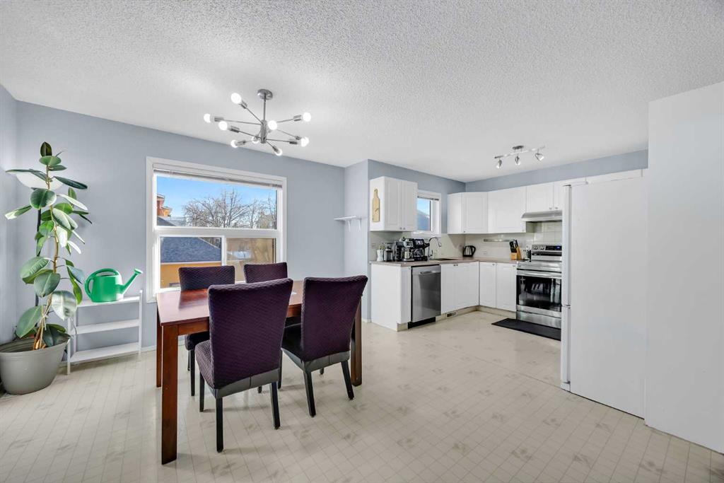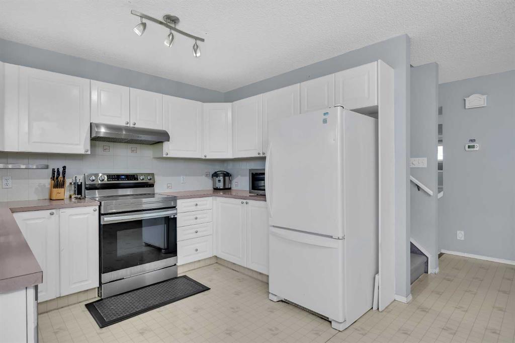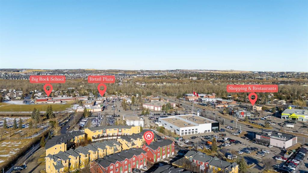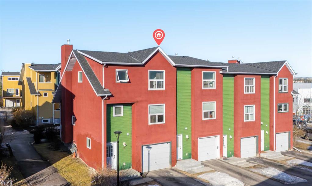 This well-maintained end unit offers added privacy, great natural light, and a functional multi-level layout designed for comfortableeveryday living. The entry level features a convenient 2-piece bathroom, generous space for coats and shoes, and direct access to the attachedgarage. A short flight up, the bright living room stands out with extra-tall ceilings and a cozy gas fireplace, creating a spacious, airy feel that’s hard tofind in townhome living. The next level opens into a large kitchen and dining area with enough room to accommodate a sitting area or workspace,making it ideal for both daily living and entertaining. Upstairs, the primary bedroom includes a 4-piece ensuite and access to a private, coveredbalcony. Two additional bedrooms, a full bathroom, and upper-level laundry complete the upper floor. The fully finished basement provides a versatilebonus space that works well as a home office, gym, media room, or hobby area, while still offering plenty of storage. Recent updates within the pastfive years include a raised front deck with new boards and railing, three exterior doors, and eleven windows. Major mechanical upgrades have alsobeen completed, including a furnace and hot water tank replaced approximately three years ago, along with the addition of a water softener. As anend unit, the home further benefits from additional windows and a quieter setting within the complex. Conveniently located within walking distance toshopping, schools, parks, and restaurants, this property offers a practical layout and an easy Okotoks lifestyle.
