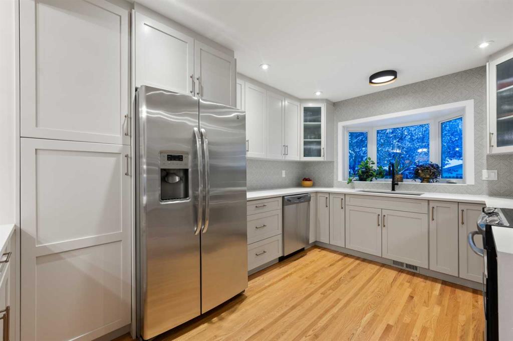 *OH, Sat. April 11, 12-2pm* Located on a quiet, dead end cul-de-sac with only 22 homes, this beautifully renovated Lake Bonavista home offers 1535 sq. ft. above grade & nearly 3,000 sq. ft. of developed living space in one of the community’s most desirable pockets. Just moments from Andrew Sibbald School, Fish Creek Park, the lake, & the dog park, this location is exceptional for families seeking both daily convenience & a strong sense of community. This property has arguably some of the nicest curb appeal & landscaping you’ll find in Lake Bonavista. The vaulted ceiling allows for massive windows at the front which bring in loads of natural light. Professional landscaping transformed the front & backyard with a poured concrete front path & pad, rear deck & stairs, sod, decorative rock work, edging, mulch & stepping stones. The low maintenance perennial garden with more than 150 specimens adds beauty, colour & character throughout the seasons. Inside, the home has been thoughtfully transformed with a major renovation creating a bright, open floor plan with timeless finishes & highly functional spaces throughout. The open main level also has nicely defined spaces which creates a connected, modern layout. The kitchen was beautifully updated with new cabinetry, countertops, a peninsula with waterfall edges & an imported Italian porcelain tile backsplash, resulting in a space that feels elevated, stylish & highly practical for everyday living or entertaining. The quality of the renovation is immediately apparent throughout the home. The main level features newer hardwood floors & baseboards, while the upper level hardwood was refinished. Additional improvements include Lux windows, Lux front & back doors, updated interior doors including solid wood doors upstairs, designer light fixtures, LED pot lights, ceiling fans, updated hardware, fresh interior paint & Hunter Douglas roller blinds, including blackout blinds on the east facing side of the home. Three full bathrooms have been extensively updated with new cabinetry, sinks, mirrors, light fixtures, glass shower enclosures, updated faucets & improved plumbing. The lower level adds even more versatility with a kitchenette area, custom built-ins, coat lockers & shelving, making it ideal for growing families or anyone wanting extra functional space. The 1st lower level has 2 additional bedrooms – one being currently used as a recreation area/TV room. Beyond the interior upgrades, the exterior has also seen meaningful investment. In 2021, the cedar siding was painted, gutters were updated, fascia on the garage was replaced & exterior lighting was improved. Additional recent improvements include a new fence & gates in 2025. Lake Bonavista is Calgary’s premier lake community due to its maturity, schools, recreation, shopping & proud residents. This is a rare opportunity to own a substantially renovated home in a prime location, tucked away on a quiet cul-de-sac & close to some of the community’s most valued amenities.