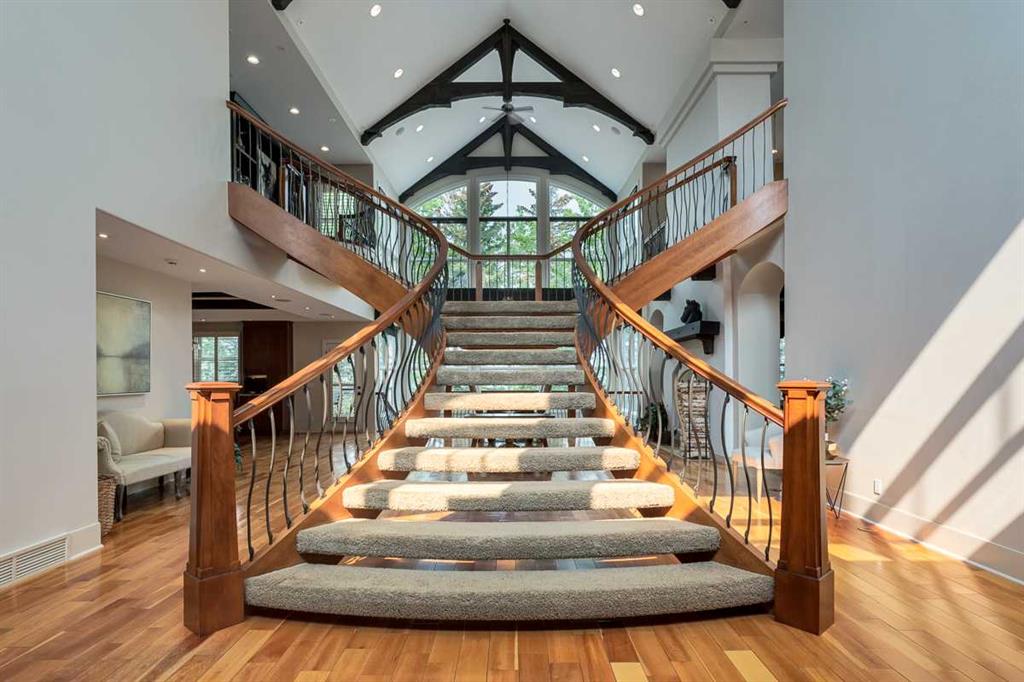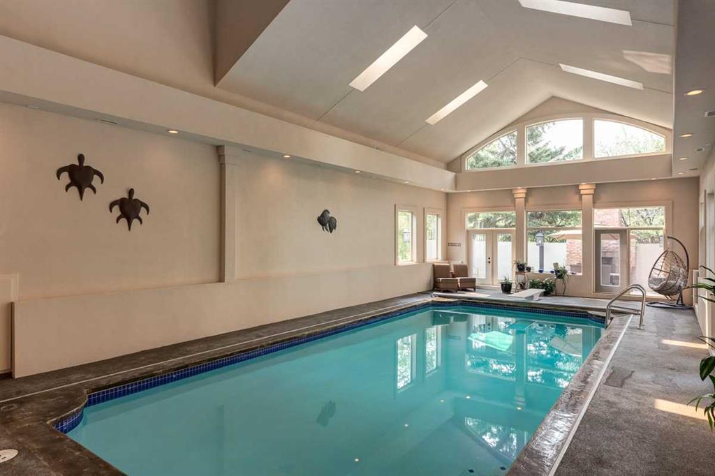 Welcome to this one of a kind dream home nestled in the exclusive and private neighbourhood of Pinehurst. Escape the city vibe when you enter this secluded neighbourhood and massive 1.2 acre property. Enjoy the natural setting while surrounded by an environmental reserve, forrest and streams. You won’t think you are anywhere close to the city. This completely custom-built retreat offers the perfect blend of tranquility and luxury. Every aspect of this estate has been created with luxury and comfort in mind. As you enter through the solid Fir front door you are greeted by exceptional design and well planned architecture. Starting with the incredible one of a kind curved open riser staircase with solid cherry wood handrails and continuing with the soaring vaulted ceilings and floor-to-ceiling windows, every detail reflects sophistication and elegance. Wide-plank cherry hardwood floors flow seamlessly throughout the main level, where multiple living areas offer a harmonious connection to the beautiful outdoors and forrest views. This home boasts over 10,500 sq ft of incredibly upgraded living space, providing room and entertainment for everyone and everything. With six spacious bedrooms and seven bathrooms, there’s no shortage of space or amenities for large families. The heart of the home is the massive gourmet kitchen, featuring top-tier stainless steel appliances, granite countertops, and a convenient pot filler. The wraparound, multi-tiered deck and concrete patio with an outdoor kitchen and brick fireplace is perfect for outdoor dining and entertaining. Ascend the gorgeous staircase to the upstairs level with the primary suite that will blow you away, offering hardwood floors, vaulted ceilings, and a private balcony overlooking the pool. The spa-like ensuite bath includes a steam shower, large stand alone tub, beautiful tile and a private balcony. Three additional bedrooms are located on the opposite side of the floor, including one with a 4-piece ensuite and two sharing a Jack & Jill bath. A cozy homework or hangout space with a fireplace completes this level. The walkout basement is designed for entertainment, featuring a family room, games area, bar, theatre room, gym, and two additional bedrooms.There is a plethora of upgrades in this home but none more amazing than the large indoor pool, with its own sealed room for safety and independent HVAC system for maximum comfort. Additional features include multiple tile surround gas and wood burning fireplaces, large home office, three steam showers, in-floor heating with multiple zones, a dual coil hot water heater, maintenance-free concrete decks, irrigation system, 4 car heated and finished garage, built in speakers, custom entertaining bar in the basement and the list goes on…