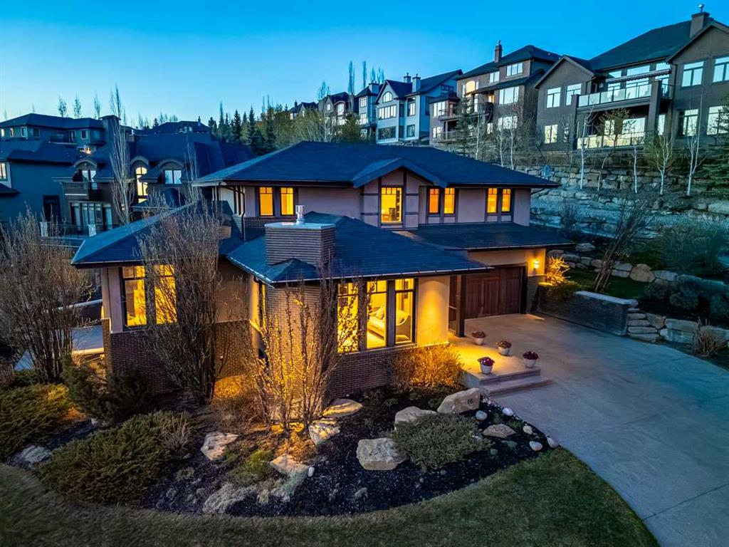 Experience the epitome of luxury living in this custom-built, two-story estate home nestled in prestigious Springbank Hill. Set on an expansive lot, this glorious home offers over 6,564 sq ft of meticulously designed living space, featuring 5 bedrooms (4 up, 1 down) and 6 bathrooms. Immerse yourself in breathtaking mountain and valley views, all while enjoying the home’s impressive curb appeal. Step inside to a grand foyer that opens to a sun-soaked living room adorned with massive floor-to-ceiling windows and a striking gas fireplace. The main floor also includes two elegant vanity bathrooms, a spacious mudroom with built-in storage and main floor laundry, and a dedicated home office with custom shelving. Entertain with ease in the formal dining room featuring vaulted ceilings, or gather in the expansive family room framed by wall-to-wall windows. The chef-inspired kitchen is a true masterpiece, showcasing double quartz islands with seating, high-end stainless steel appliances including a built-in oven and gas range, and a hidden walk-in pantry for optimal organization. The upper level boasts four generously sized bedrooms, a stylish 4-piece bathroom, a 3-piece bathroom, a study area with dual built-in desks, and a second laundry room. The lavish primary suite is a private sanctuary complete with double walk-in closets and a luxurious 5-piece ensuite featuring a soaker tub, dual vanities, and a steam shower. The walkout basement is an entertainer’s dream, offering a 5th bedroom, a full bathroom with another steam shower, a home theatre with projector and screen, a recreation room with abundant natural light, a cozy gas fireplace, and a full wet bar complete with a stunning quartz island, wine room, and ample storage. Additional upgrades include luxury hardwood flooring, triple-glazed low-E windows, three furnaces, central air conditioning, underground sprinklers, and a comprehensive audio and video security system. Outside, the professionally landscaped yard includes a private deck with a cedar pergola, an electric screen, and panoramic west-facing views. A covered patio and exposed aggregate walkway lead to the heated triple tandem garage with extensive driveway parking. Conveniently located near some of Calgary’s top-rated schools, including Webber Academy, Rundle College, and Ernest Manning High School, with quick access to the Westside Rec Centre, LRT, and Stoney Trail. This is more than a home—it’s a lifestyle.