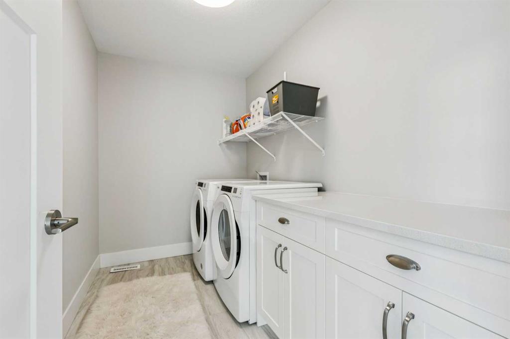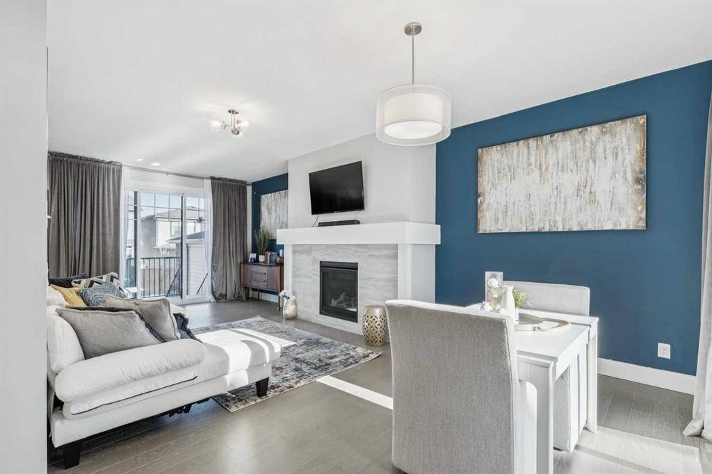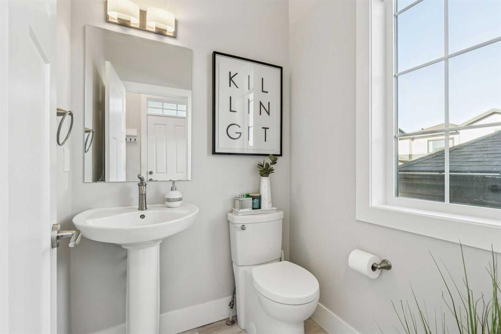 Welcome to this beautifully designed former showhome by Dream in the sought after new community of Alpine Park. This detached two storey home with a third level loft features a smart, functional layout that prioritizes purposeful spaces over wide open floor plans, reflecting one of the leading design trends for 2026. The main floor features distinct yet connected living and dining areas that integrate seamlessly with outdoor spaces. Windows at both the front and back of the home allow natural light to flow throughout the day. The living and dining rooms sit on the west side of the home, anchored by a cozy gas fireplace. Sliding patio doors on both sides of the space create easy indoor and outdoor living and allow for flexible furniture arrangements. The kitchen is spacious and well designed, perfect for the home chef. A moody blue colour palette paired with crisp white cabinetry creates striking contrast against the rich hardwood floors. Features include upgraded stainless steel appliances, open shelving, a large island, and a corner walk through pantry. Just off the kitchen is a bright front flex room, ideal for a home office or playroom. A large south facing bay window fills the space with natural light and offers views of the private park across the street. A discreet powder room and rear mudroom lead to the full width back deck, yard, and oversized garage. The second level offers three generous bedrooms, including a primary retreat that impresses with a vaulted ceiling and sun filled atmosphere. The large walk in closet leads to a spa inspired ensuite featuring dual sinks, a standalone tub, and a full walk in shower. Two additional bedrooms, a four piece bathroom, and a conveniently located laundry room complete this level. The third level loft is a valuable upgrade from the standard plan and adds exceptional flexibility and square footage. This space is ideal for a media room, play area, study space, or teen retreat, with views to the north toward downtown and to the south toward the mountains. This home is ideal for buyers seeking flexible living spaces, a low maintenance exterior with no shovelling, seamless indoor and outdoor flow, and elevated finishes throughout. Alpine Park offers the perfect balance of city and nature, located approximately 15 minutes from downtown Calgary and 30 minutes from the Rocky Mountains. Designed to bring people together, the community features parks, pathways, and convenient access to everyday amenities just minutes away. The small monthly condo fee of $102 includes the HOA fee for Alpine Park as well a snow removal and upkeep of greenspace’s’ /common areas.