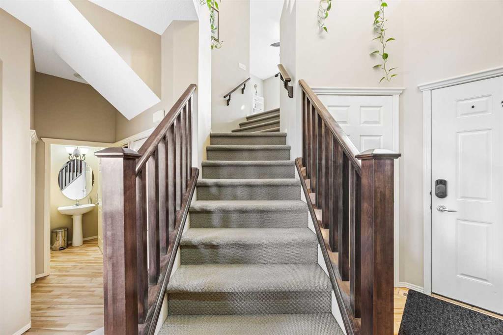 A rare find in the beautiful community of Tuscany! This meticulously maintained 4 bedroom, 3.5 bathroom home backs directly onto green space with direct views of COP. From the moment you walk in, you’ll be impressed by the open-to-above foyer and the warmth of the freshly refinished natural hardwood floors throughout the main level. The open-concept kitchen features a central island, corner pantry, and stainless steel appliances, overlooking the inviting living room with its elegant gas fireplace. A spacious dining area flows seamlessly onto the massive backyard, complete with a two-tiered deck and ultimate privacy thanks to the greenspace behind. The main floor is rounded out with a 2-pc bathroom and a convenient laundry room. Upstairs, you’ll find a bright and spacious bonus room featuring large west-facing windows and a built-in surround sound setup—perfect for entertaining or as a family play area. The primary retreat includes a 4-pc ensuite with a relaxing soaker tub, walk-in closet, and built-in wardrobe. Two more generously sized bedrooms and another full bathroom complete the upper level. The fully finished basement (2022) offers a large family room with a cozy electric fireplace, an additional bedroom, a 4-pc bathroom, and ample storage. Step outside into your private backyard oasis with lush landscaping, a two-tiered deck, and a hot tub overlooking the green space—with no neighbours behind. Other updates include: Refinished hardwood flooring (2025), new roof (2023), washer (2022), dryer (2024), dishwasher (2023), and hot water tank (2025). Perfectly located just minutes from Stoney Trail, top schools, shopping, restaurants, and Calgary’s extensive bike path system—this is the ideal home for family living.