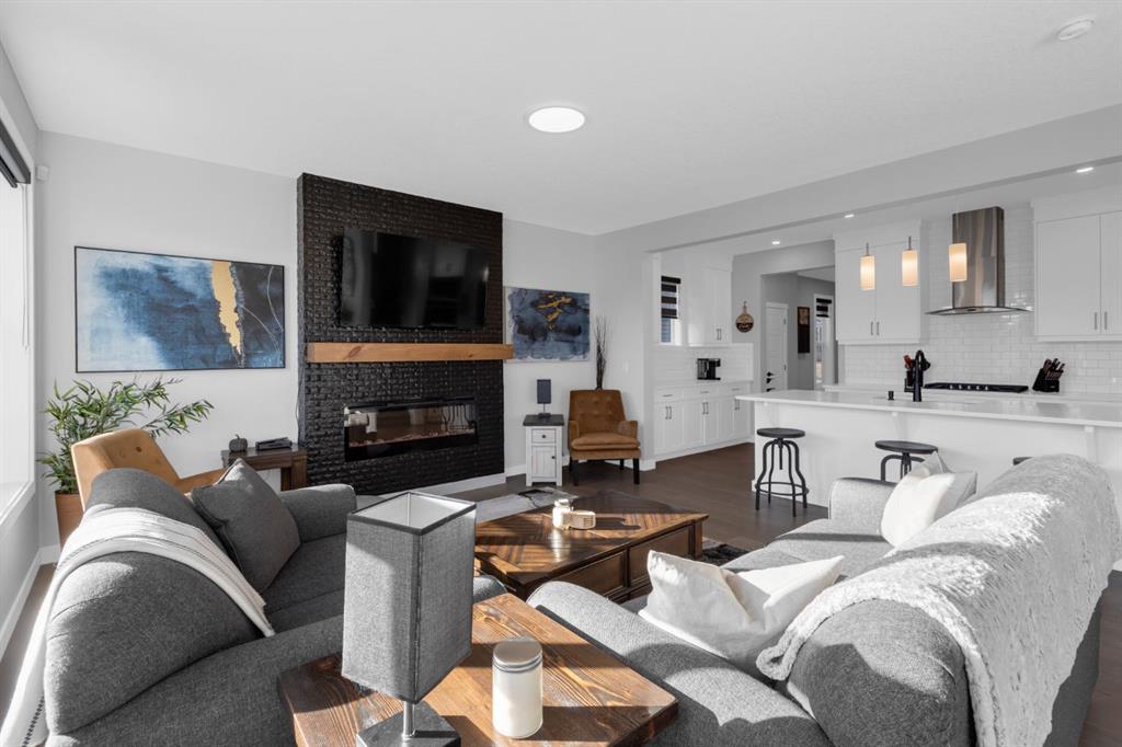 ENGINEERED HARDWOOD flows throughout the bright open-concept main level with 9 FT CEILINGS and an abundance of NATURAL LIGHT. CUSTOM BLINDS enhance the many large windows, while a beautiful FEATURE FIREPLACE serves as the focal point in the family-friendly GREAT ROOM.
