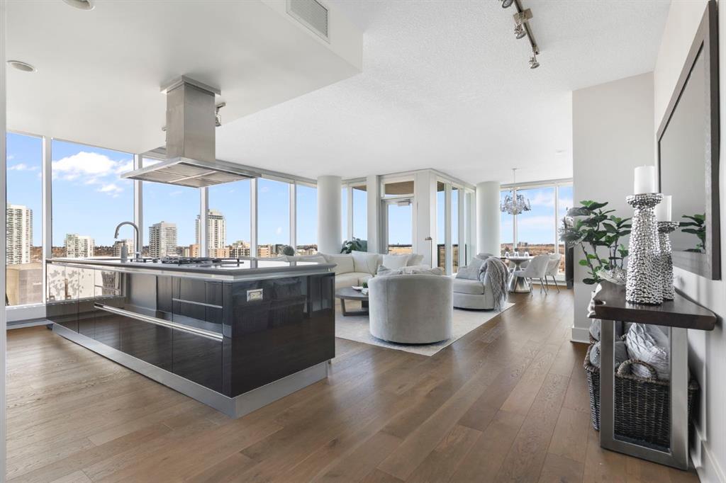 Experience elevated downtown living in this stunning 16th-floor residence at the iconic Arriva Tower. Spanning 1,367 sq. ft., this bright and airy corner unit offers 2 bedrooms, 2 bathrooms, and uninterrupted east facing views through floor to ceiling windows that capture the morning light and stretch across the city skyline and Bow River valley. The orientation provides an incredible sense of privacy and tranquility, paired with sweeping, ever changing vistas.