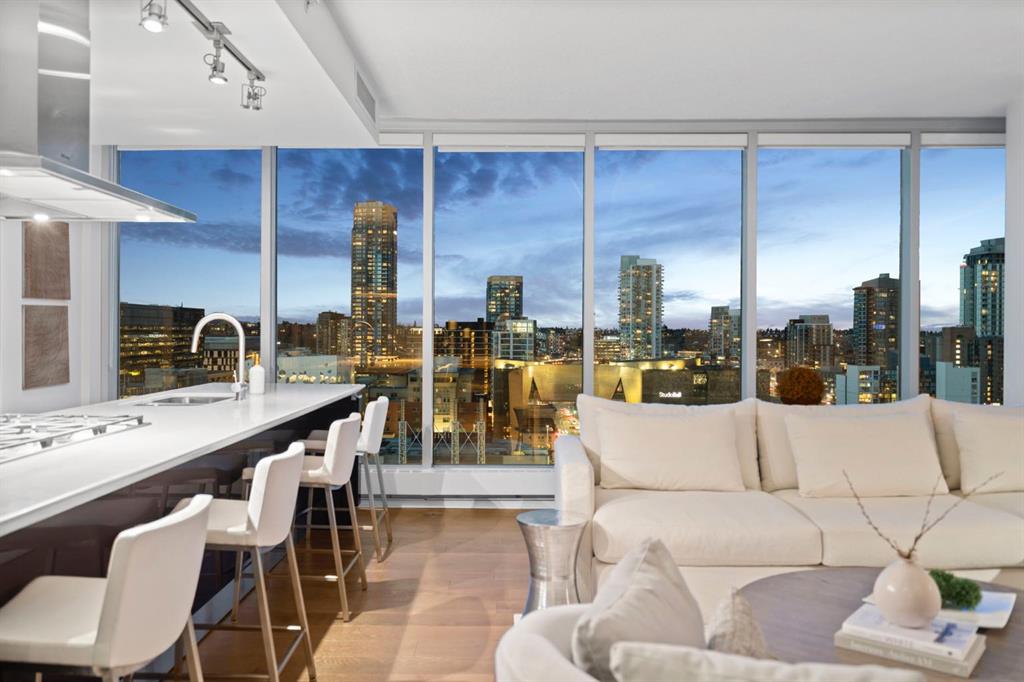 This home includes two titled underground parking stalls, an assigned storage locker, central air conditioning, and high speed elevators for quick, private access.