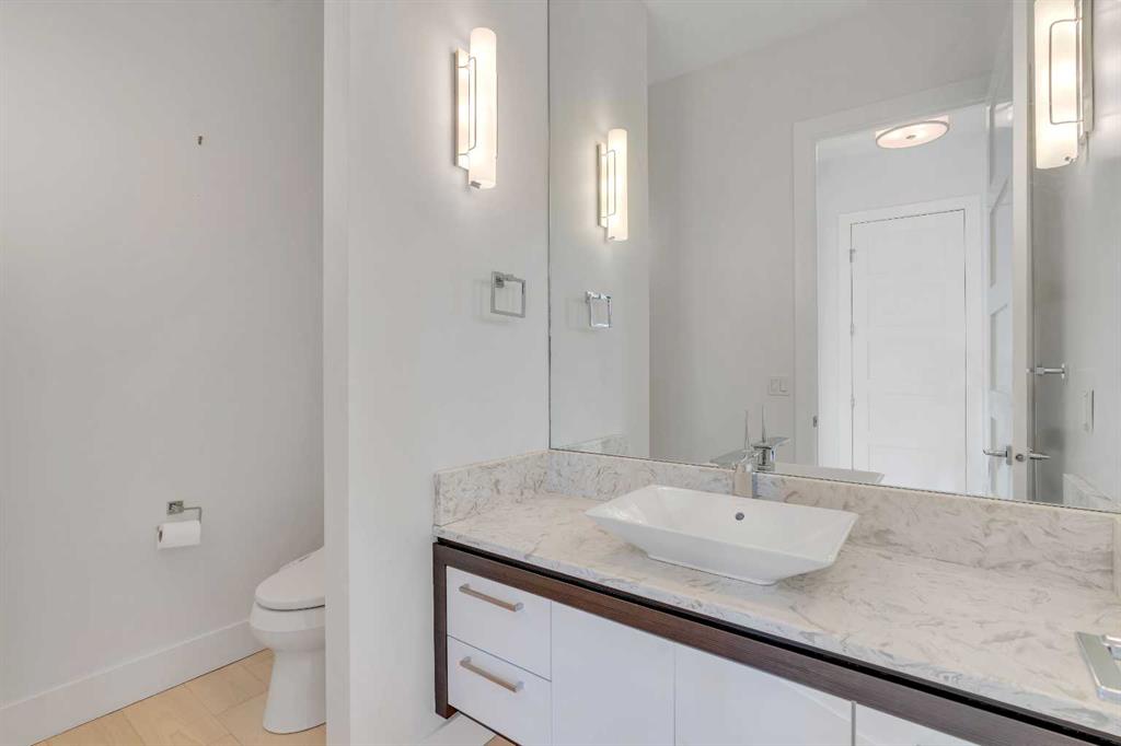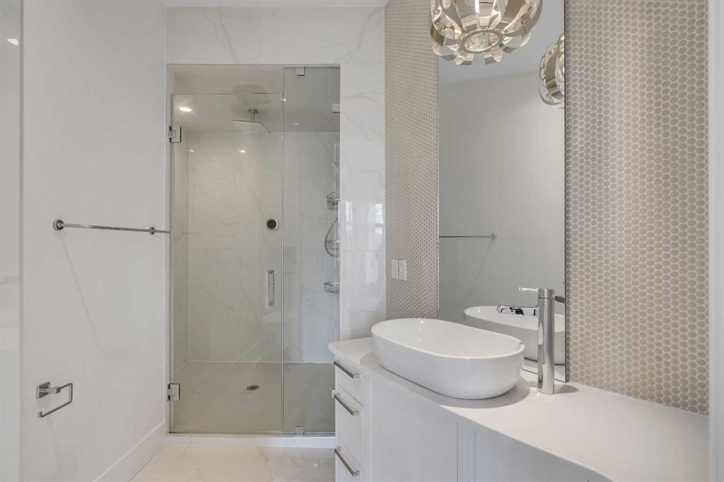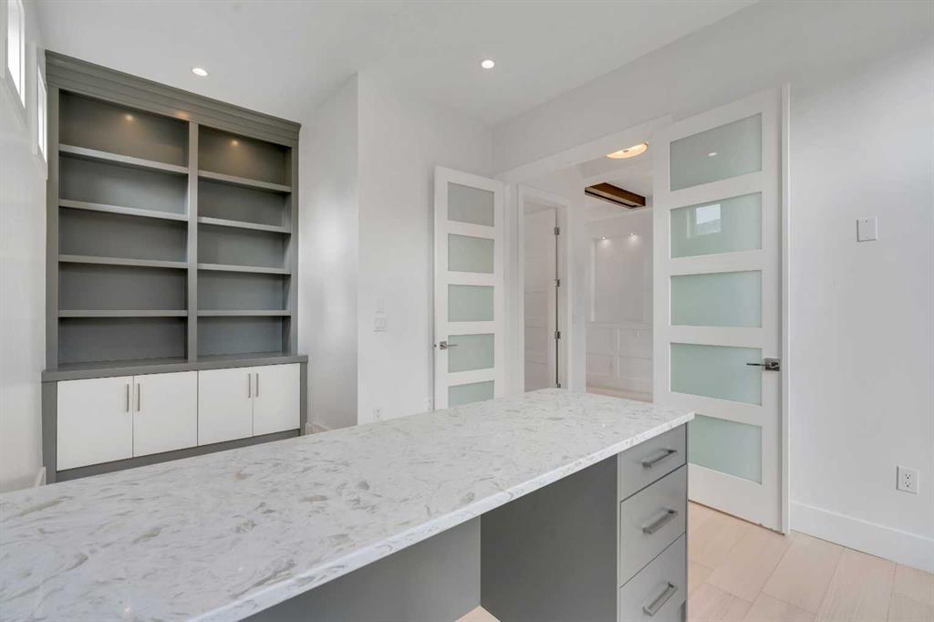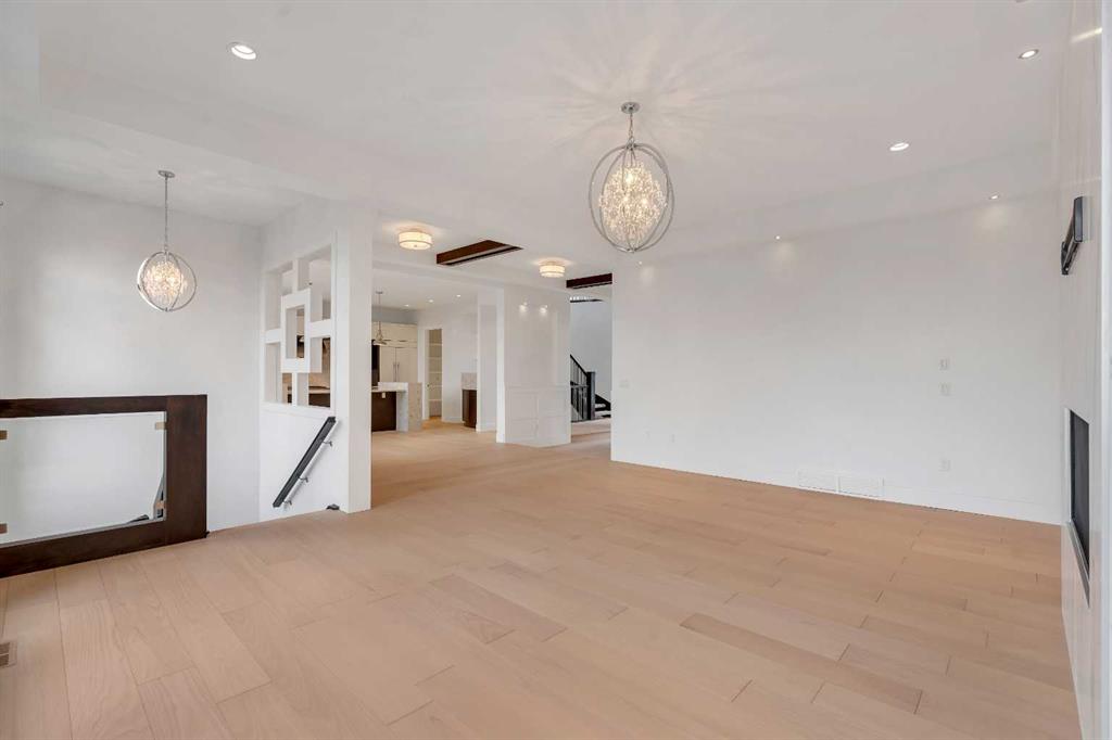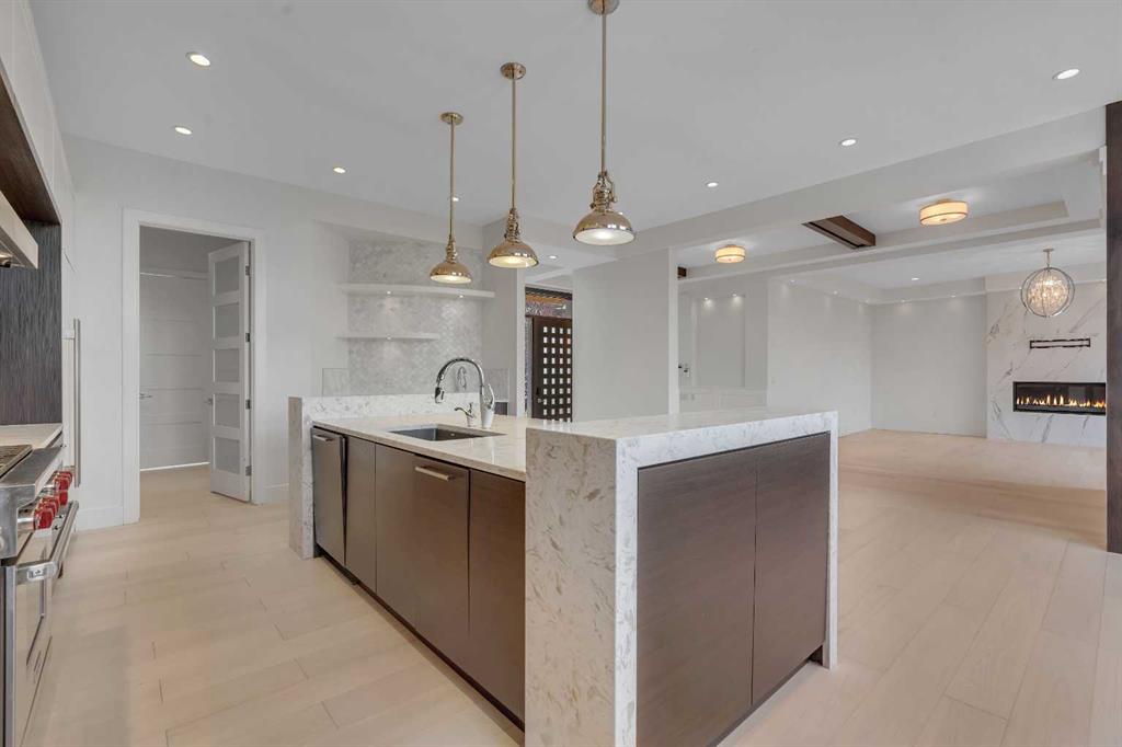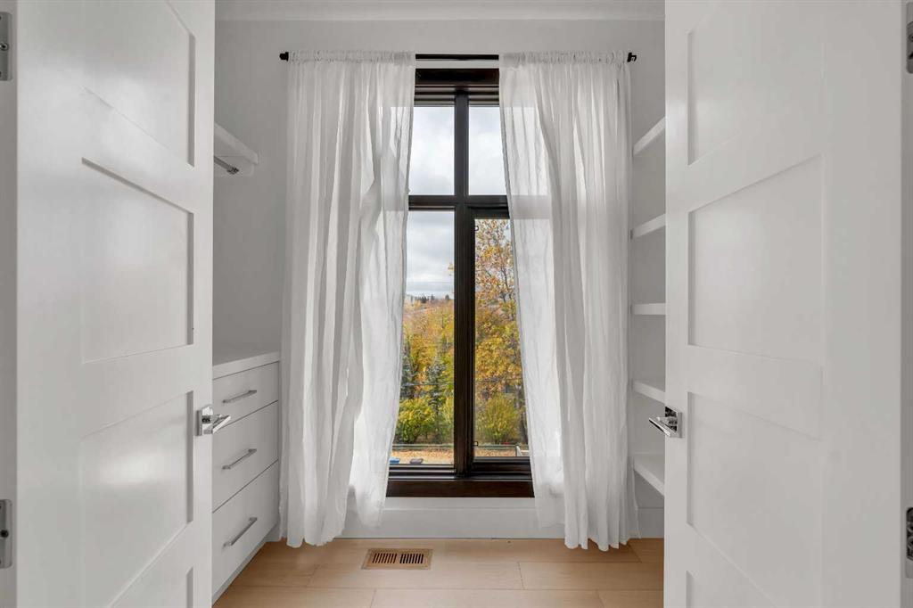 Recently renovated to achieve the perfect harmony of sophistication, light & function, this luxurious inner-city residence offers over 4,800 sq. ft. of refined living space backing west amid treetop outlooks & glowing sunset skies. A dramatic entry sets the tone with wide plank hardwood & a marble inlay, leading to soaring ceilings framed by custom millwork, exposed beams & black-clad windows that capture every nuance of daylight. French doors open to a private office detailed with built-ins, creating an ideal work-from-home sanctuary. The heart of the home is an exquisite designer kitchen that balances modern minimalism with warmth, showcasing pristine white cabinetry contrasted by rich wood accents, a waterfall-edge granite island & professional-grade Wolf appliances including a 6-burner gas range, steam oven & built-in espresso system. A curved wet bar & walk-through butler’s pantry enhance the home’s entertaining flow. Beyond, the dining room’s double-height ceiling, sculptural chandelier & wall of glass doors invite connection between indoors & out, while an automated awning provides shade over the upper deck for sunset dinners. The adjoining living room blends quiet luxury with comfort around a sleek linear fireplace wrapped in full-height marble, its ambiance carried by soft recessed lighting & serene west views. Ascend the glamorous curved staircase illuminated by a cascading crystal chandelier to the upper level. French doors lead to a sumptuous primary retreat where a private balcony, spa-inspired ensuite with steam shower & soaker tub, and a custom dressing room create a boutique-hotel experience. 2 additional bedrooms, each with its own ensuite, complete this level. The fully finished walkout lower level continues the home’s refined aesthetic, offering a seamless blend of comfort & sophistication. Heated epoxy floors provide quiet warmth underfoot, while a sleek wet bar invites easy entertaining & relaxed evenings with friends. The spacious recreation area is ideal for movie nights or game-day gatherings, complemented by a well-appointed fourth bedroom & a stylish full bath for guests. A versatile den adds flexibility for a gym, yoga studio or private theatre, & dual stairwells connect this level effortlessly to the rest of the home for exceptional flow. Outside, the fenced west yard offers ample green space for relaxation or play, with a detached double garage featuring its own electrical panel, drive-through door & additional RV parking. Thoughtful upgrades include remote blinds, smart thermostats, tankless water heating, central air conditioning, in-floor boiler heat, sump pump & central vacuum. Perfectly positioned within Hounsfield Heights/Briar Hill, this exceptional property offers unmatched access to parks, top schools, SAIT, Kensington, the Bow River pathway system, North Hill Centre, hospitals, downtown & the mountains beyond—all wrapped in elevated design & timeless luxury!