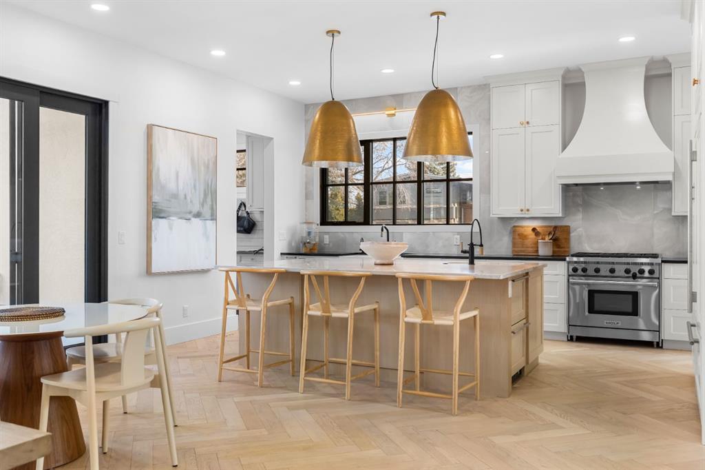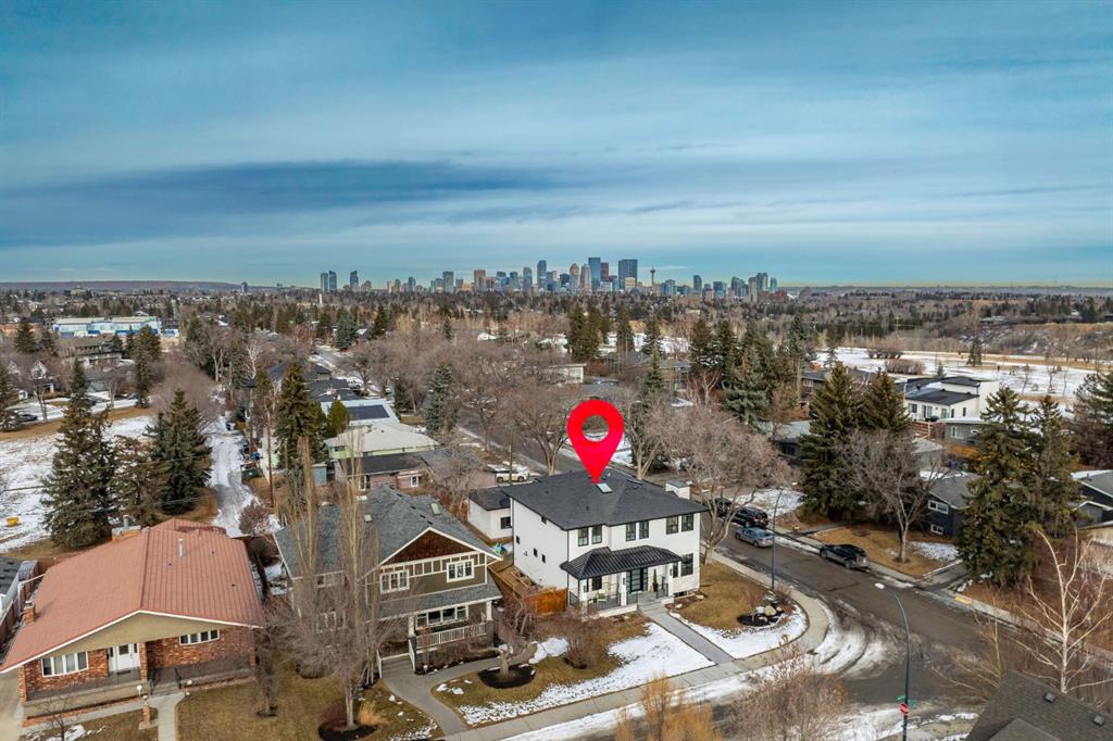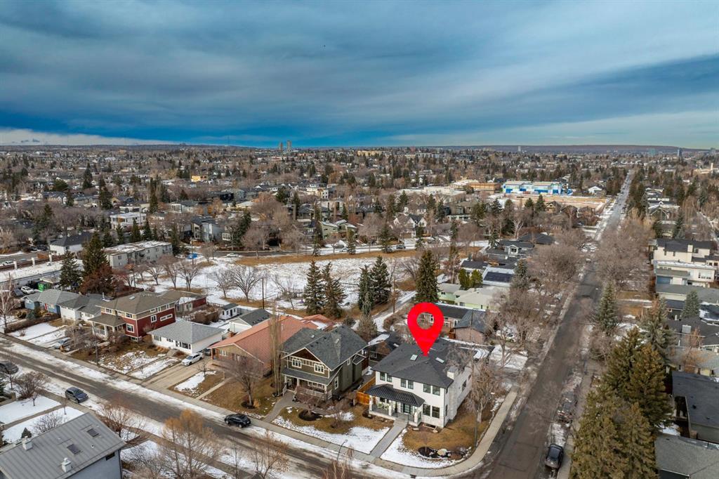 Set on one of Altadore’s most coveted tree-lined streets, this exceptional 3,339 sq. ft. residence sits on a rare 60’ x 120’ corner lot with a playground literally in the backyard and Sandy Beach, river pathways, and off-leash dog parks just steps away. Designed for both everyday living and entertaining, the home offers a timeless centre-hall floor plan with refined, functional spaces throughout. The main level features a professional-grade kitchen with walk-in pantry, a welcoming living room, formal dining area, private den, and seamless indoor-outdoor flow—ideal for hosting at any scale. Upstairs, you’ll find four bedrooms, including a spacious primary retreat with a spa-inspired ensuite and an impressive walk-in closet—perfectly positioned for privacy and comfort. Sliding patio doors open to a covered outdoor living area complete with built-in BBQ station and radiant heaters, overlooking an additional uncovered patio with a built-in fireplace—an entertainer’s dream year-round. The over-height triple car garage (12’ ceilings) easily accommodates three car lifts, and the corner-lot driveway provides the perfect setup for kids’ hockey games or basketball. The fully developed basement adds even more versatility with a large recreation room, built-in wet bar, wine room, exercise room, bedroom, bathroom, and ample storage. Built by inner-city specialist Calista Homes, this is a rare opportunity to own a thoughtfully designed, family-friendly home on one of Altadore’s best streets—where lifestyle, location, and craftsmanship come together effortlessly.