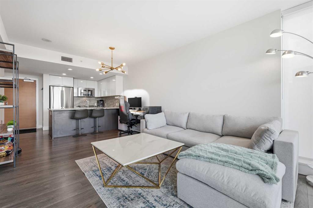 Stand on your 16th floor balcony and look out over the Stampede grounds with the Calgary Tower front and centre. This is one of those units where the view never gets old. South-facing, so you get great afternoon sun all year long. And the same view follows you into the bedroom, with floor to ceiling windows that bring it right in. Blackout curtains are there for when you actually want to sleep. The layout flows the way a good condo should. The kitchen has bar top seating, granite counters, and a gas range. New dishwasher and a new in-unit washer and dryer. It opens into a proper dining space with room for a real table, then into the living room which is big enough for a sectional. Walk straight out from there onto your balcony. Gas hookup for the BBQ is already there and you have enough space to actually sit out and enjoy it. The whole main living area connects without feeling cramped. The bathroom is set up better than most. Soaker tub, a separate stand-up shower, and the toilet and sink are tucked into their own water closet area. It feels like more bathroom than the floor plan suggests. The building is called Evolution and it delivers. Two gyms, a social lounge, a steam room, a sauna, and an outdoor patio. Concierge at the front desk and overnight security. Key fob access throughout the building. Your parking stall is underground and you have a storage locker in the parkade too. Condo fee covers heat. Central AC is in the unit. East Village is one of the better spots in Calgary right now. You are walking distance to the Riverwalk, the Simmons Building, Bridgeland, and Inglewood. Superstore is close. The C-Train is right there if you need it. Stampede is practically your backyard.