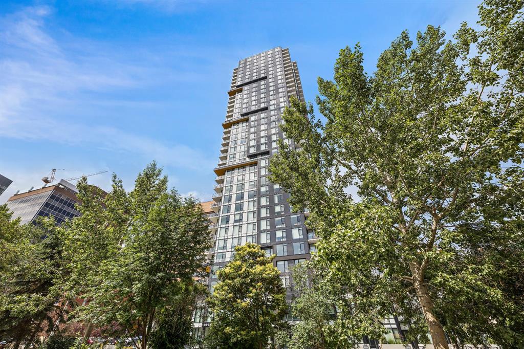 Perched high on the 16th floor, this exceptional corner end unit offers panoramic, unobstructed views of the city skyline, Memorial Park, and the Rocky Mountains. Expansive floor-to-ceiling windows and 9-foot ceilings flood the home with natural light, creating an airy, refined living space. Designed with modern sophistication, the open-concept layout features granite countertops, a large central island, integrated high-end appliances, and air conditioning, seamlessly blending style and function for everyday living or entertaining. The living and kitchen areas flow effortlessly, making the space equally suited for relaxing, dining, or working from home. The primary suite is a true retreat, showcasing tranquil park views and a walk-through closet leading to a luxurious 5-piece ensuite complete with a double marble vanity, glass-enclosed shower, and a deep soaker tub. A sun-filled home office adds versatility, while the second bedroom captures stunning west-facing mountain views. Step outside to the private balcony—perfect for summer barbecues or enjoying Calgary’s dynamic urban landscape. Additional conveniences include one titled, heated, secure underground parking stall, an assigned storage locker, and access to a car wash bay within the parkade. Park Point delivers an elevated, pet-friendly lifestyle with premium amenities including a beautifully appointed owner’s lounge with kitchen and fireplace, guest suite, 24-hour concierge, on-site security, secure underground parking, and dedicated bike storage with wash station. Pet owners will love the on-site dog wash, making daily life with four-legged companions effortless. Outdoor amenities include a Zen garden and terrace, BBQ area, and a cozy fire pit. Wellness-focused residents enjoy a fully equipped fitness centre, yoga studio, sauna, and steam room. Ideally located just steps from the Elbow River pathway system, tennis and pickleball courts, and the shops and restaurants of 17th Avenue. Downtown conveniences including the Calgary Public Library and the +15 skywalk system are only minutes away, offering exceptional connectivity and urban convenience. Please ask your real estate professional about the exciting news in regards to the neigbouring Sheldon Chumir health amenity (they can refer to the prviate realtor notes on this listing).