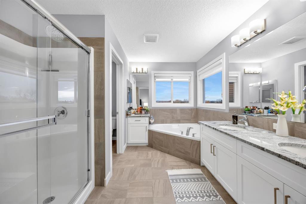 Upstairs, you’ll find a spacious bonus room, ideal for family movie nights or a play area. The upper level also includes three generously sized bedrooms, a shared 5-piece bathroom, and a convenient laundry room. The primary retreat is impressively sized and features a large walk-in closet and a luxurious 5-piece ensuite, offering a private space to unwind.