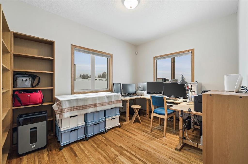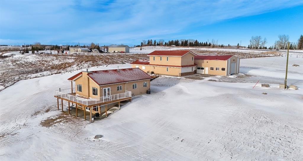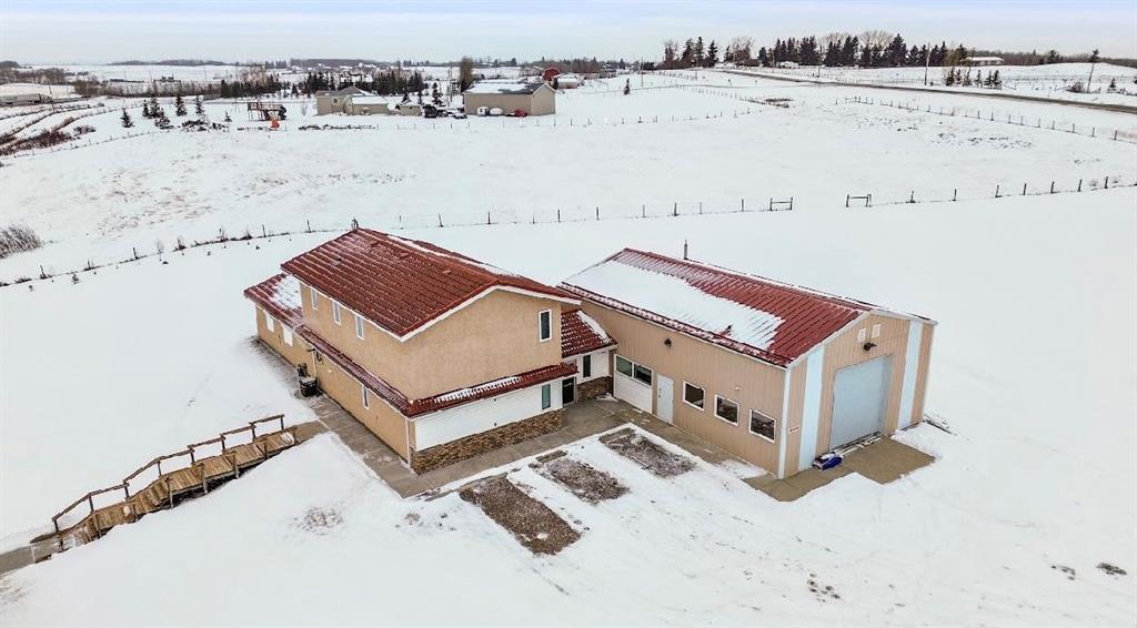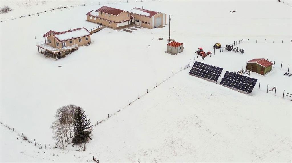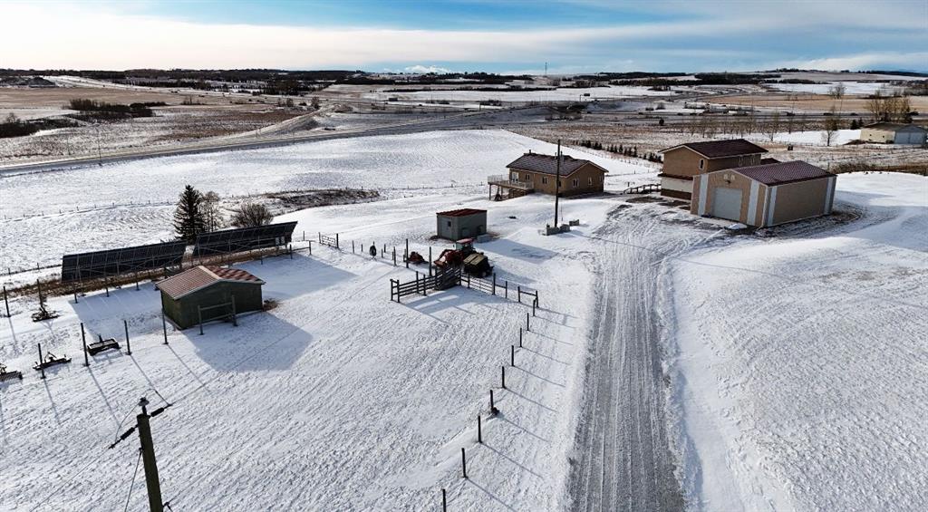 Amazing 24 acres with 3 bed walk out bungalow and rare commercial infrastructure (almost 4,000sf), located just minutes south of Calgary! Perfectly situated with easy access to Okotoks, and High River too. Previously a licensed retail operation for 14 years with a purpose-built COMMERCIAL COMPLEX. Suitable for a VARIETY OF BUSINESSES or live/work uses (subject to County approval). Land is cross fenced, hayed annually, and offers SUBDIVISION POTENTIAL (subject to approval). Exceptional water security includes year-round headwater spring feeding three interconnected ponds with registered agricultural water rights, a well, septic tank and 3,000-gallon cistern, multiple hydrants, and stock waterer. Power systems include Fortis power (25kVA), Kubota diesel standby generator (22kVA) with auto start, and 19.8 kWp solar array producing approx. $3,200/year in electrical savings. Property includes PRIMARY RESIDENCE (walkout 3-bedroom bungalow) and Commercial Complex with connected 2-STOREY building with fire-rated doors and dedicated exterior exit, a 1-storey building, and shop/warehouse with 12’ x 12’ overhead door (immaculately maintained and clean). Buildings have hydronic heating with HEATED CONCRETE FLOORS, A/C and hail-resistant roofing. SECONDARY SUITE potential (subject to approval). Other property features include a powered hay shed, gated entry with power, monitored security, stunning views and school bus access. A rare, infrastructure-rich opportunity close to Calgary.