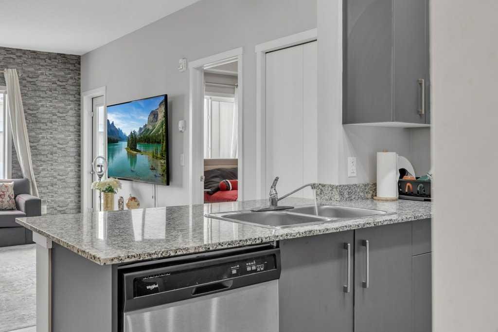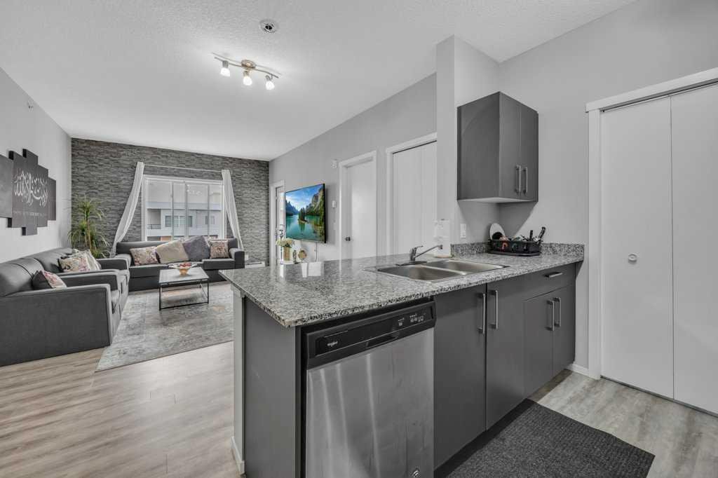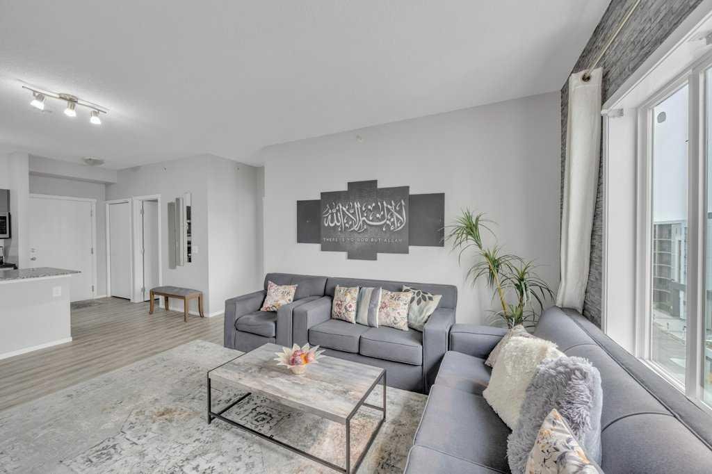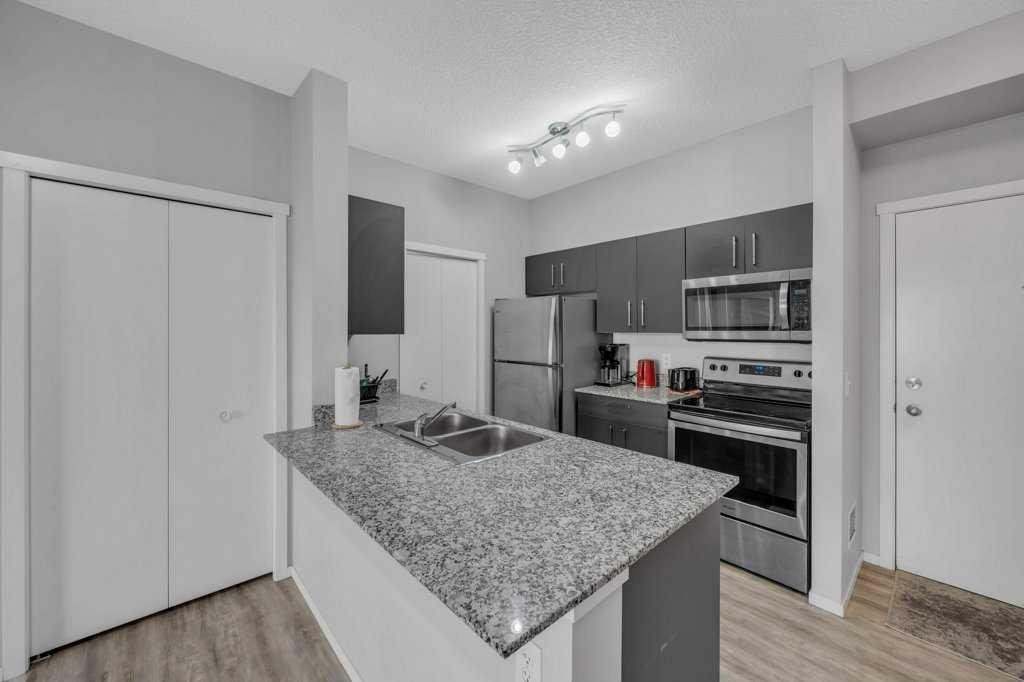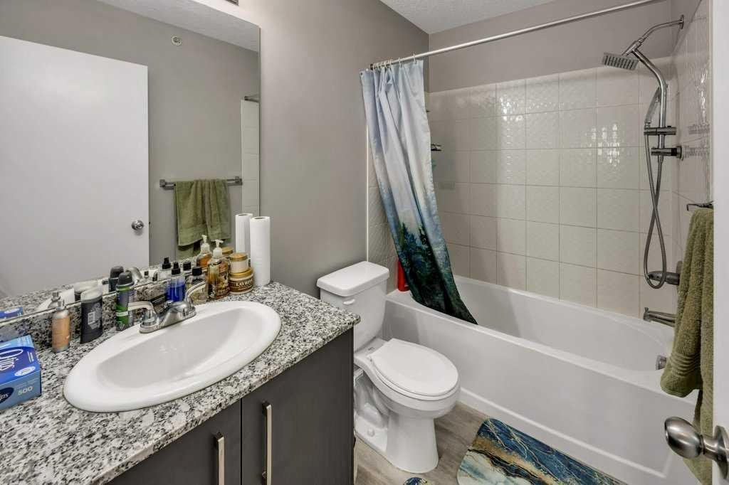 Rare Top-Floor Condo with Two Underground Parking Stalls! This exceptional 6th-floor unit offers a bright open-concept layout featuring 2 spacious bedrooms, a den with closet, and 2 full bathrooms. The modern kitchen is equipped with stainless steel appliances and granite countertops, while the inviting living area includes a stylish feature wall and access to a private balcony with beautiful views. The primary bedroom boasts its own 4-piece ensuite, and the second bedroom along with the den share a full bathroom, making this home perfect for comfortable living. With premium upgrades throughout and two underground parking stalls, this rare top-floor unit is an opportunity you don’t want to miss!