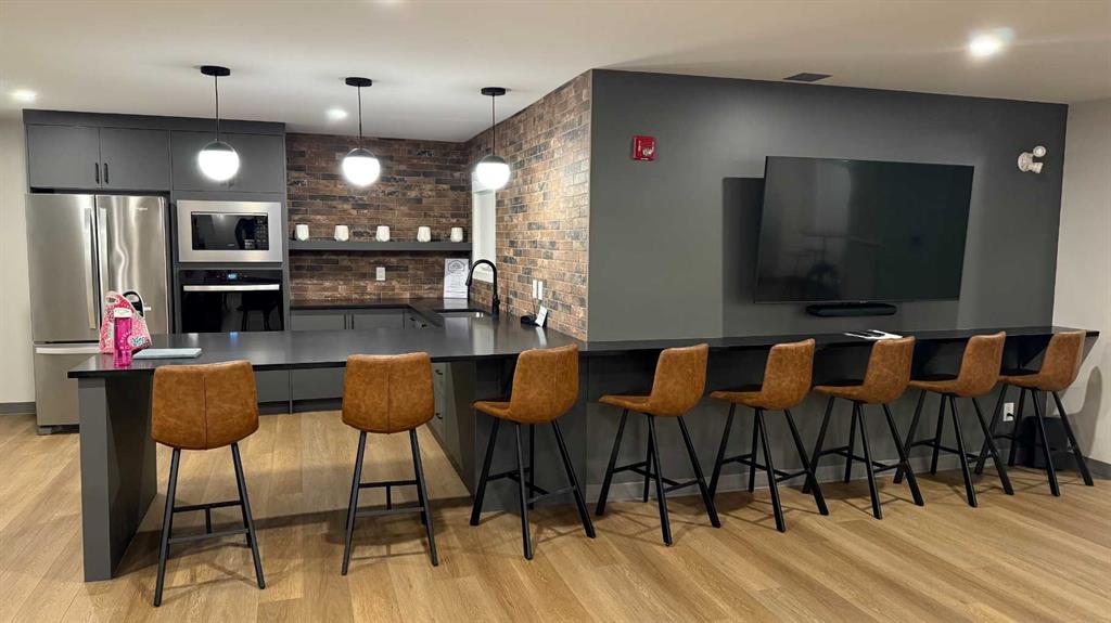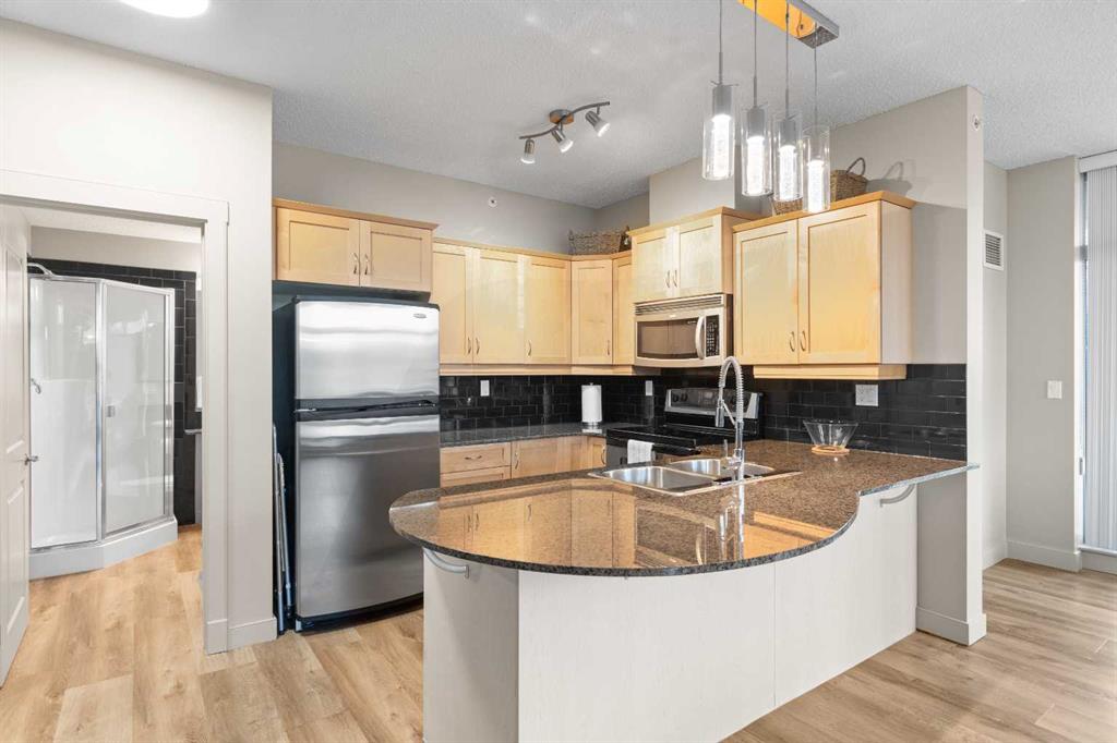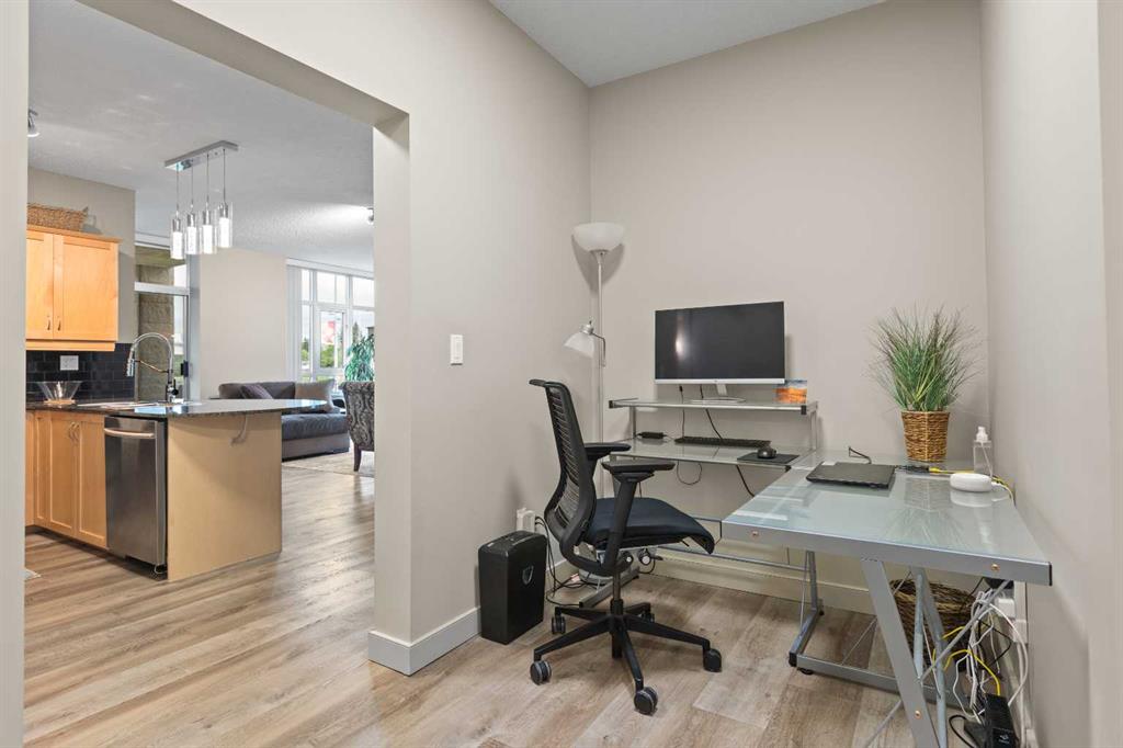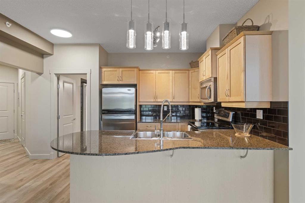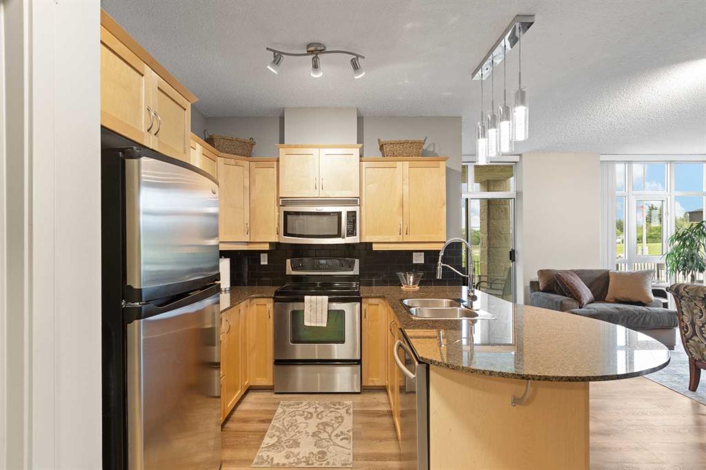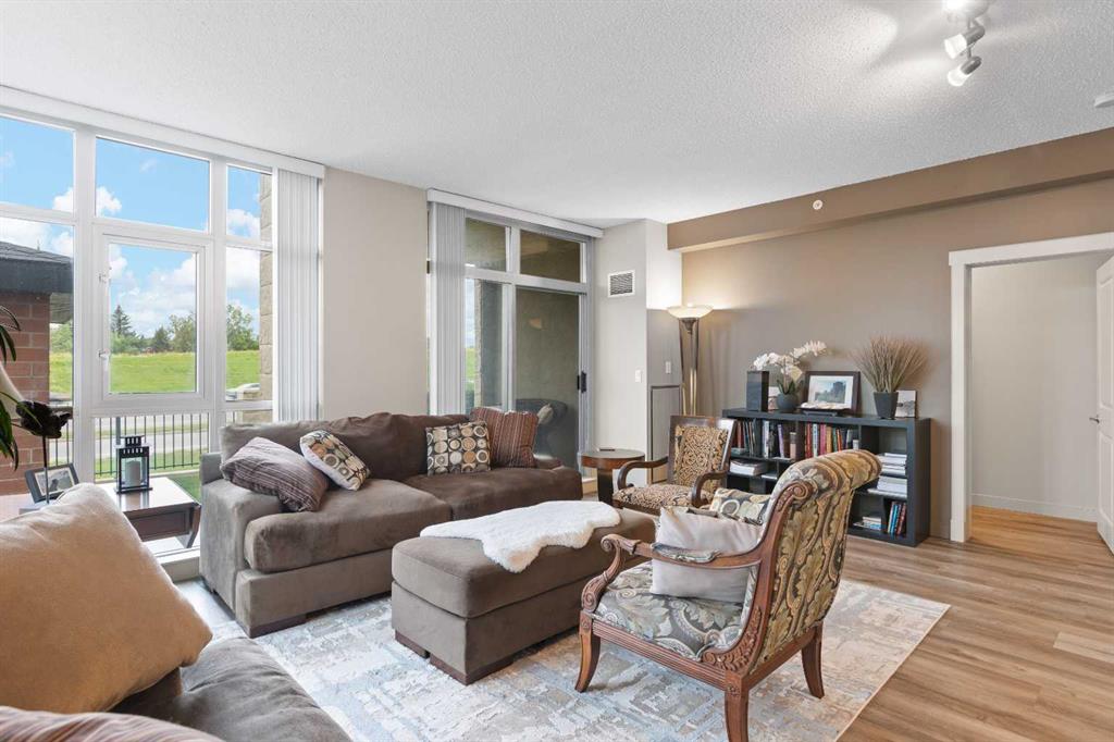 This is a rare find 1080 sq ft, move-in ready 2-bedroom main floor corner unit in the highly sought-after Lake Bonavista community. The kitchen is functional and spacious, featuring granite countertops, an extended eating bar, and under-cabinet lighting. Both bedrooms come with walk-through closets and ensuites, making it ideal for guests or roommates. With 9 ft ceilings, full-length windows, and new vinyl plank flooring throughout, this home is bright and inviting. The south-facing patio wraps around to a west-facing patio with lawn space directly outside, perfect for pet owners. This condo has geo-thermal heating, cooling, and electricity all included in the condo fees, and is built with concrete walls, including most interior walls, for added soundproofing. The building also offers fantastic amenities, including a state-of-the-art fitness center, two social rooms, guest suites, on-site management, and security. Condo fees cover all utilities except TV and Wi-Fi. Located within walking distance of the C-train, bus lines, South Centre Mall and Avenida Place, and with easy access to Deerfoot via Anderson Road, this unit is both convenient and well-connected. A titled underground heated parking stall with extra storage is conveniently located right in front. This home has been cared for by its original owner and is a must-see! Click the multimedia tab for an interactive 3D tour, additional photos, and floor plans.