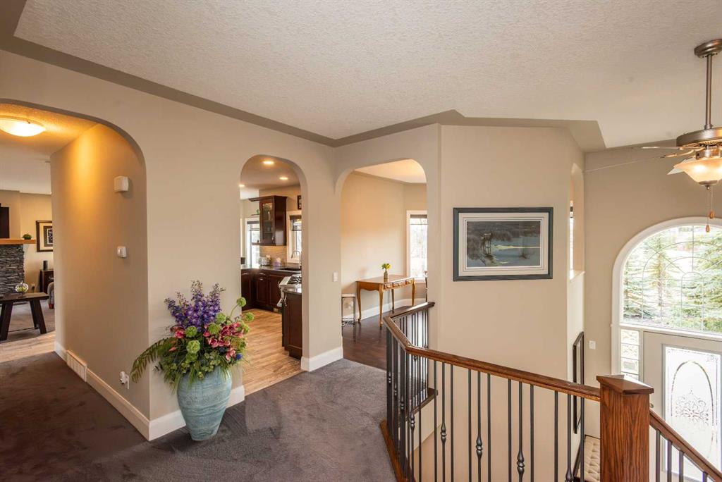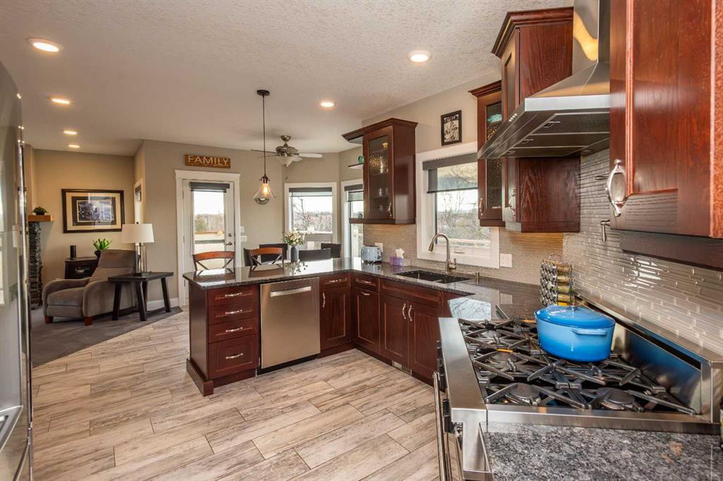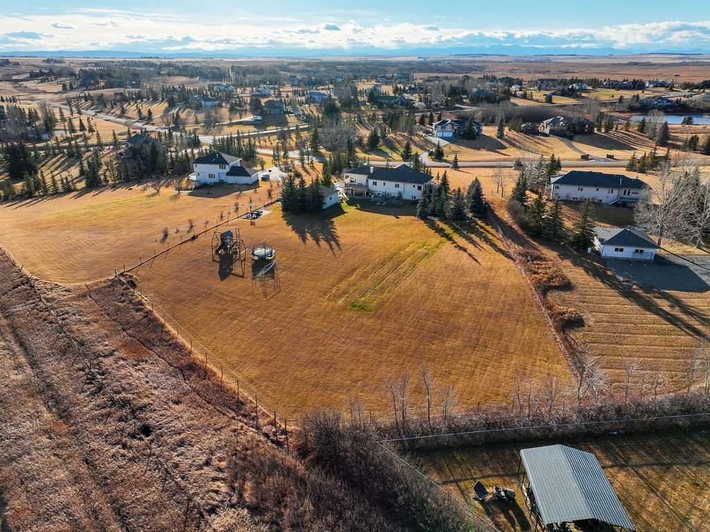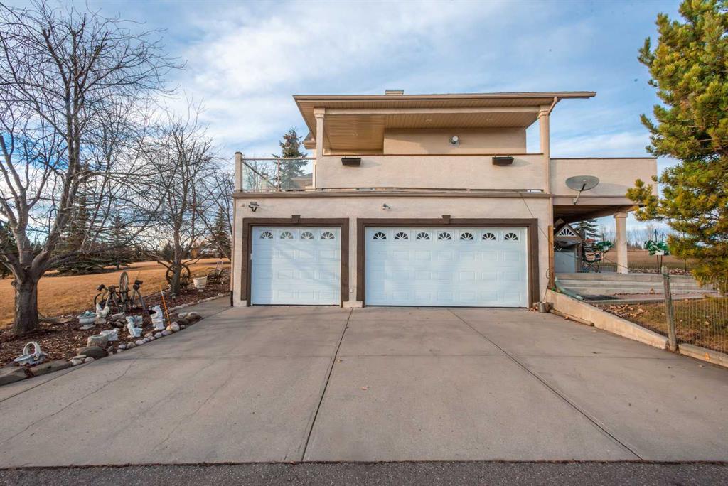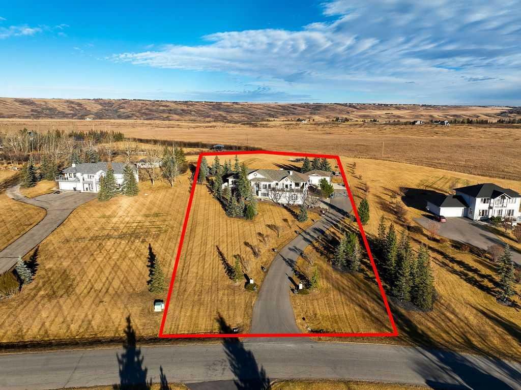 Wow, set on a 2-acre parcel in desirable Country Lane Estates, this exceptional acreage offers unmatched tranquillity, unobstructed mountain views, and quick access—just 20 minutes to downtown Calgary and minutes to the Trans-Canada Highway. Substantially renovated in 2017, this impressive bungalow showcases extensive updates and a near-perfect layout! Massive windows throughout capture panoramic views in all directions, filling the home with natural light and a sense of serenity. The updated chef’s kitchen features a full appliance package—including stove, microwave, dishwasher, and refrigerator—with seamless flow into the living and dining areas. The main floor offers three generous bedrooms, including a luxurious primary retreat with private deck access, a steam shower, a bidet, and a spacious 5-piece ensuite. The fully developed walkout lower level provides exceptional versatility for extended family, guests, or nanny accommodations. It includes a full second kitchen with a complete appliance package, a large bedroom, a bright recreation area, a formal den, ample storage (including a playroom under the stairs), and a temperature-controlled wine cellar with professional racking. In-floor heating on this level ensures year-round comfort. Mechanical upgrades include a high-efficiency furnace, hot water tank, furnace-mounted professional HEPA filter, air conditioning, in-floor heat in both the lower level and attached garage, central vacuum, and a timer-controlled exterior lighting system.Car enthusiasts and hobbyists will love the heated triple attached garage with epoxy floors, knockdown ceilings, included metal cabinets and workbench, and a Cal Canna heater. Even more impressive is the nearly 900 sq. ft. heated workshop/garage, complete with 12-ft ceilings, 220V service, and a gas line—perfect for equipment, vehicles, and large-scale projects.Outdoors, the property continues to shine: a wraparound deck, additional decks off multiple rooms, a large rear concrete patio, a fenced backyard, a fully paved driveway, and negotiable lawn/snow maintenance equipment for turnkey acreage living. Bingham Crossing shopping complex under construction just 4 minutes away, Phil Mickelson golf course, Launch Pad, Calaway Park, private/public schools (bussing) and quick access to city or Rocky Mountains. Book a private showing to view this amazing haven.