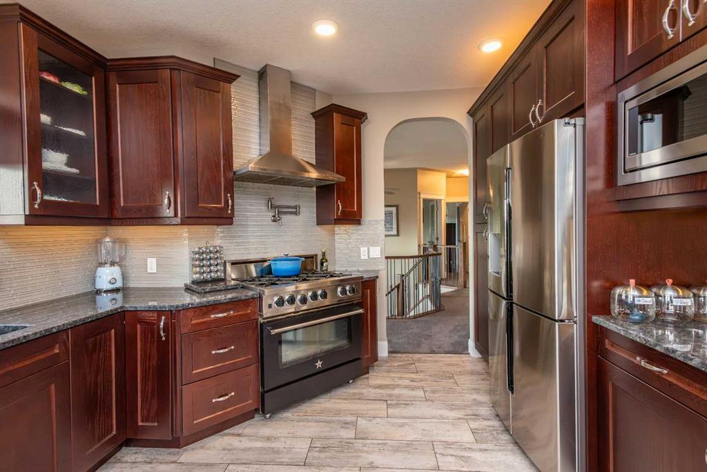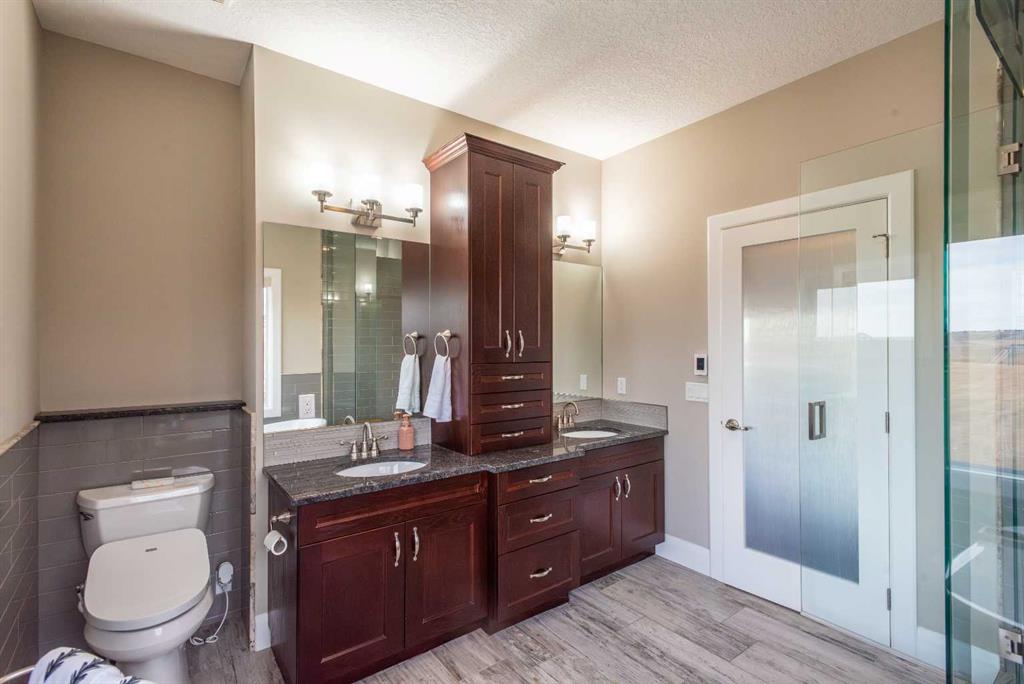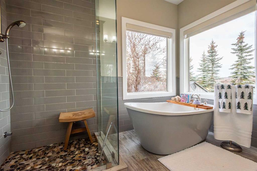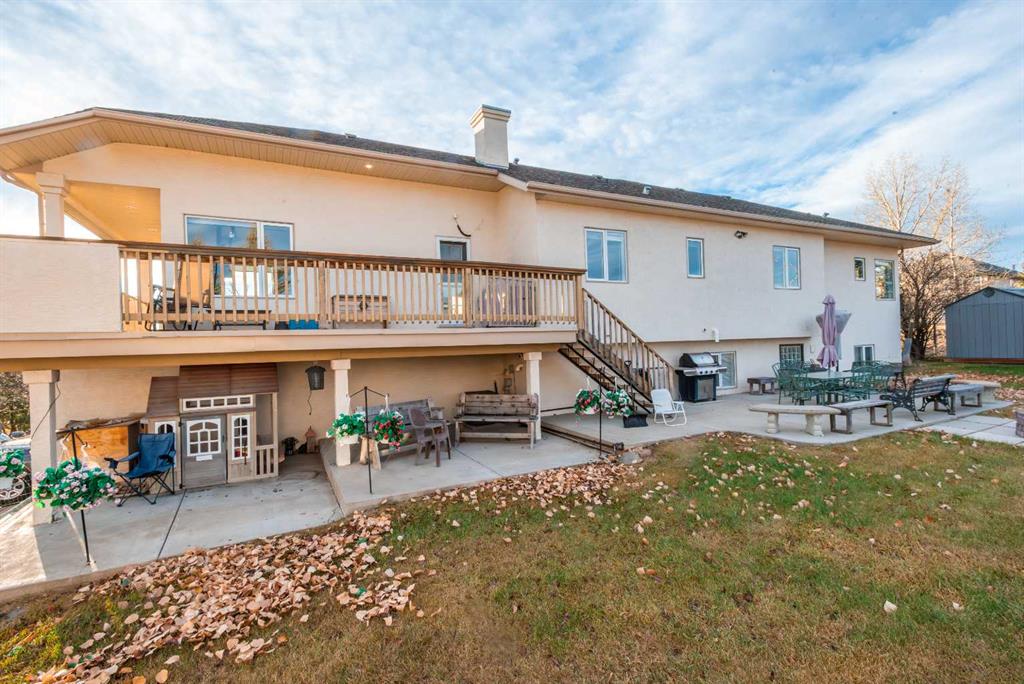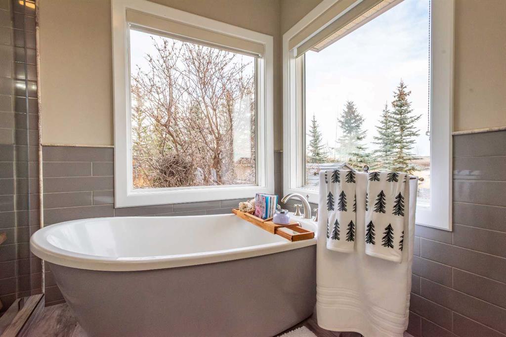 Wow, set on a 2-acre parcel in desirable Country Lane Estates, this exceptional acreage offers unmatched tranquillity, unobstructed mountain views, and quick access—just 20 minutes to downtown Calgary and minutes to the Trans-Canada Highway. Substantially renovated in 2017, this impressive bungalow showcases extensive updates and a near-perfect layout! Massive windows throughout capture panoramic views in all directions, filling the home with natural light and a sense of serenity. The updated chef’s kitchen features a full appliance package—including stove, microwave, dishwasher, and refrigerator—with seamless flow into the living and dining areas. The main floor offers three generous bedrooms, including a luxurious primary retreat with private deck access, a steam shower, a bidet, and a spacious 5-piece ensuite. The fully developed walkout lower level provides exceptional versatility for extended family, guests, or nanny accommodations. It includes a full second kitchen with a complete appliance package, a large bedroom, a bright recreation area, a formal den, ample storage (including a playroom under the stairs), and a temperature-controlled wine cellar with professional racking. In-floor heating on this level ensures year-round comfort. Mechanical upgrades include a high-efficiency furnace, hot water tank, furnace-mounted professional HEPA filter, air conditioning, in-floor heat in both the lower level and attached garage, central vacuum, and a timer-controlled exterior lighting system.Car enthusiasts and hobbyists will love the heated triple attached garage with epoxy floors, knockdown ceilings, included metal cabinets and workbench, and a Cal Canna heater. Even more impressive is the nearly 900 sq. ft. heated workshop/garage, complete with 12-ft ceilings, 220V service, and a gas line—perfect for equipment, vehicles, and large-scale projects.Outdoors, the property continues to shine: a wraparound deck, additional decks off multiple rooms, a large rear concrete patio, a fenced backyard, a fully paved driveway, and negotiable lawn/snow maintenance equipment for turnkey acreage living. Bingham Crossing shopping complex under construction just 4 minutes away, Phil Mickelson golf course, Launch Pad, Calaway Park, private/public schools (bussing) and quick access to city or Rocky Mountains. Book a private showing to view this amazing haven.
