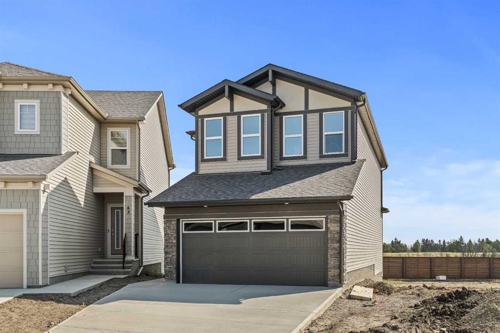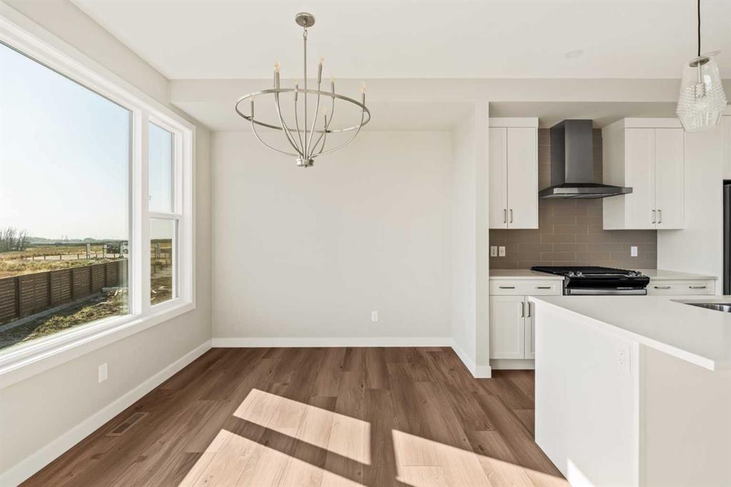 Welcome to your beautiful, brand-new Alliston build featuring 4 bedrooms, 3 full bathrooms, nearly 2,100 sq. ft. of expertly designed living space, and a side entrance to the basement, perfect for future development. This home is ideally located on a pie lot on a quiet crescent, where kids can safely play outside and you can enjoy peaceful mornings with a cup of coffee while watching the sunrise from the views out your East backyard windows. Step inside and be greeted by stylish vinyl plank flooring and airy 9-foot ceilings that flow through the open-concept main floor. The chef-inspired kitchen boasts floor-to-ceiling cabinetry, quartz countertops, a spacious island, and a sleek stainless steel appliance package with a gas stove. A dream for anyone who loves to cook and entertain. The adjoining dining area and living room are bright and welcoming, anchored by a striking electric fireplace that serves as the space’s focal point. A main-floor bedroom and a complete bathroom offer flexibility for guests, a home office, or convenient main-floor living. The mudroom off the 19×20 garage (with an additional 4′ for stair access) ensures there’s ample room for parking two vehicles. Upstairs, the primary suite is your private retreat, featuring a walk-in closet with natural light and a spa-inspired ensuite with a large shower and soaker tub. Two additional spacious bedrooms, another full bathroom, a convenient laundry room, and a front-facing bonus room complete this well-planned upper level. The unfinished basement, with its separate side entrance, offers loads of potential. It’s already equipped with bathroom rough-in and wet bar rough-in with water lines, giving you a head start on future development possibilities. Located in the vibrant community of Belvedere in Calgary’s southeast, this home offers the perfect blend of urban convenience and relaxed suburban living. With nearby parks, schools, shopping, and easy access to major routes, Belvedere is a welcoming, family-friendly neighbourhood where you can truly put down roots. Photos are representative and are of the same model home with similar colour pallet/finishings. RMS has been applied to builder blueprints. Taxes to be assessed.