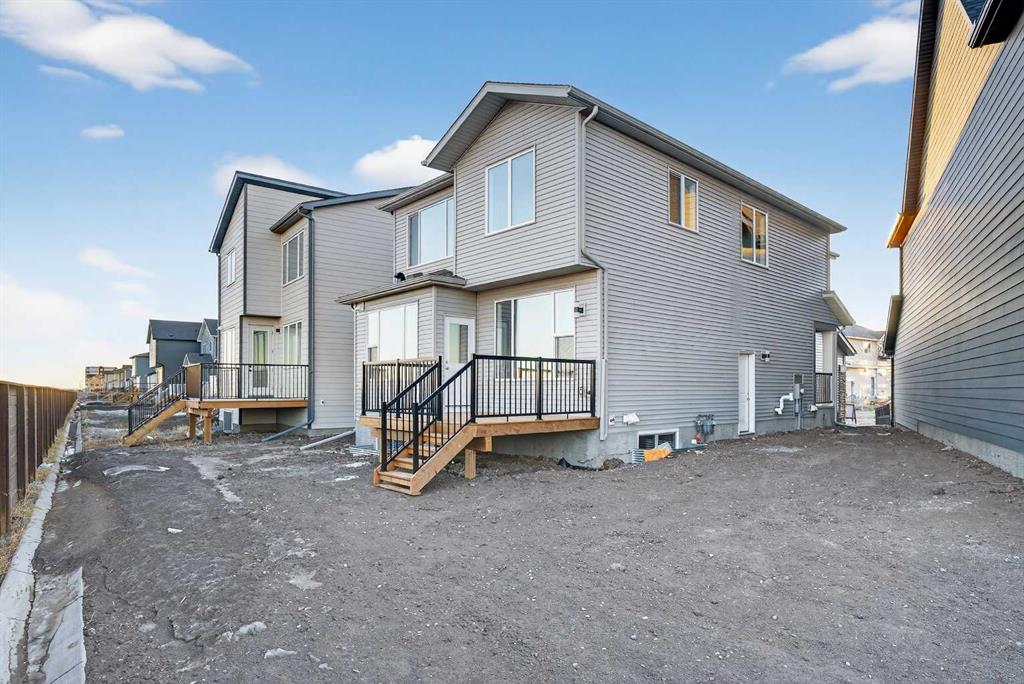 Welcome to your beautiful, brand-new Alliston build featuring 4 bedrooms, 3 full bathrooms, nearly 2,100 sq. ft. of expertly designed living space, and a side entrance to the basement, perfect for future development. This home is ideally located on a pie lot on a quiet crescent, where kids can safely play outside and you can enjoy peaceful mornings with a cup of coffee while watching the sunrise from the views out your East backyard windows. Step inside and be greeted by stylish vinyl plank flooring and airy 9-foot ceilings that flow through the open-concept main floor. The chef-inspired kitchen boasts floor-to-ceiling cabinetry, quartz countertops, a spacious island, and a sleek stainless steel appliance package with a gas stove. A dream for anyone who loves to cook and entertain. The adjoining dining area and living room are bright and welcoming, anchored by a striking electric fireplace that serves as the space’s focal point. A main-floor bedroom and a complete bathroom offer flexibility for guests, a home office, or convenient main-floor living. The mudroom off the 19×20 garage (with an additional 4′ for stair access) ensures there’s ample room for parking two vehicles. Upstairs, the primary suite is your private retreat, featuring a walk-in closet with natural light and a spa-inspired ensuite with a large shower and soaker tub. Two additional spacious bedrooms, another full bathroom, a convenient laundry room, and a front-facing bonus room complete this well-planned upper level. The unfinished basement, with its separate side entrance, offers loads of potential. It’s already equipped with bathroom rough-in and wet bar rough-in with water lines, giving you a head start on future development possibilities. Located in the vibrant community of Belvedere in Calgary’s southeast, this home offers the perfect blend of urban convenience and relaxed suburban living. With nearby parks, schools, shopping, and easy access to major routes, Belvedere is a welcoming, family-friendly neighbourhood where you can truly put down roots. Photos are representative and are of the same model home with similar colour pallet/finishings. RMS has been applied to builder blueprints. Taxes to be assessed.