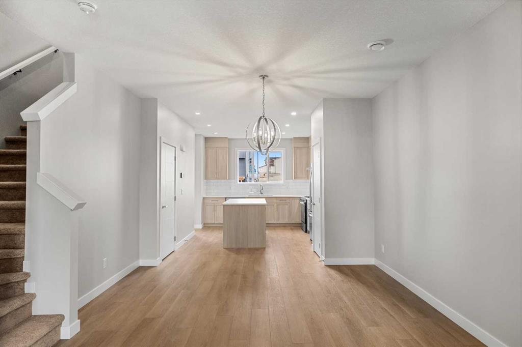 Welcome to the Edward by Partners Homes, located in the new North Calgary community of Keystone Creek, across from an environmental reserve. With 3 bedrooms and 3 full bathrooms, this newly built quick-possession home blends modern style, everyday convenience, and long-term value, and includes full new home warranty for added peace of mind. The main floor features a versatile front flex room/bedroom, ideal for a home office, guest space, or multi-generational living. An open-concept layout connects the dining and living areas to a well-appointed kitchen with shaker cabinets, quartz countertops, a large island, upgraded hood fan, and gas range, along with plenty of storage. A rear mudroom provides access to the backyard, complete with a BBQ gas line for outdoor living. A full bathroom with a tiled walk-in shower completes the main floor for added convenience. Upstairs, the primary suite includes a walk-in closet and an ensuite with dual sinks and a walk-in tiled shower. Two additional bedrooms, a central bonus room, a full bathroom, and upper-level laundry with washer and dryer included make this layout highly functional for families or shared living. Additional features include 9’ ceilings on the main and in the basement, a two-car gravel parking pad, Prairie elevation, upgraded finishes, and front yard landscaping with trees and shrubs. Keystone Creek is a thoughtfully planned community in North Calgary offering quiet streets, green spaces, and direct access to pathways, wetlands, and parks. Daily essentials, schools, dining, and services are minutes away, with convenient access to CrossIron Mills, YYC Airport, Stoney Trail, and Deerfoot Trail. Book your showing today to discover why Keystone Creek is quickly becoming one of Calgary’s most desirable new communities.