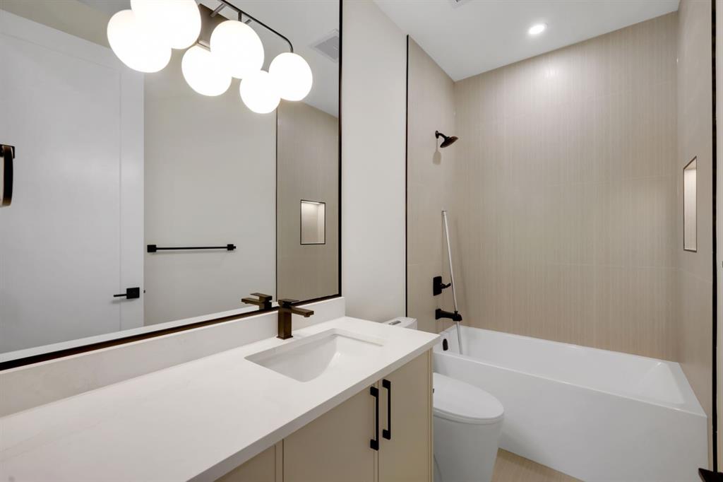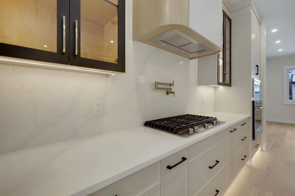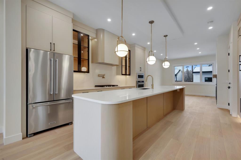 Welcome to this stunning brand-new duplex in the highly sought-after community of Capitol Hill! Thoughtfully designed with modern elegance and functional living in mind, this home offers exceptional finishings and a prime inner-city location. The main floor features impressive 10-foot ceilings and a bright, south-facing entrance that fills the home with natural light. The well-appointed dining area flows seamlessly into a sleek, contemporary kitchen complete with a stylish coffee bar and premium finishes. A dedicated office/flex space provides the perfect setup for working from home. The inviting living room is anchored by a gas fireplace and large patio doors that lead to a spacious rear deck, fully fenced backyard, and double detached garage — ideal for entertaining and everyday convenience. Upstairs, you’ll find three generously sized bedrooms, a bonus room, convenient upper-floor laundry, and two full bathrooms. The primary retreat offers a walk-in closet and a luxurious ensuite featuring dual vanities, heated floors, and rough-in for a steam shower. The fully finished basement expands your living space with two additional bedrooms, a full bathroom, and a wet bar — perfect for guests, extended family, or added entertainment space. Located just minutes from Confederation Park, SAIT, the University of Calgary, downtown, and numerous amenities, this home offers the perfect balance of lifestyle and location. A rare opportunity to own a beautifully crafted new home in one of Calgary’s most desirable inner-city communities! Please note: The photos are from a different project.