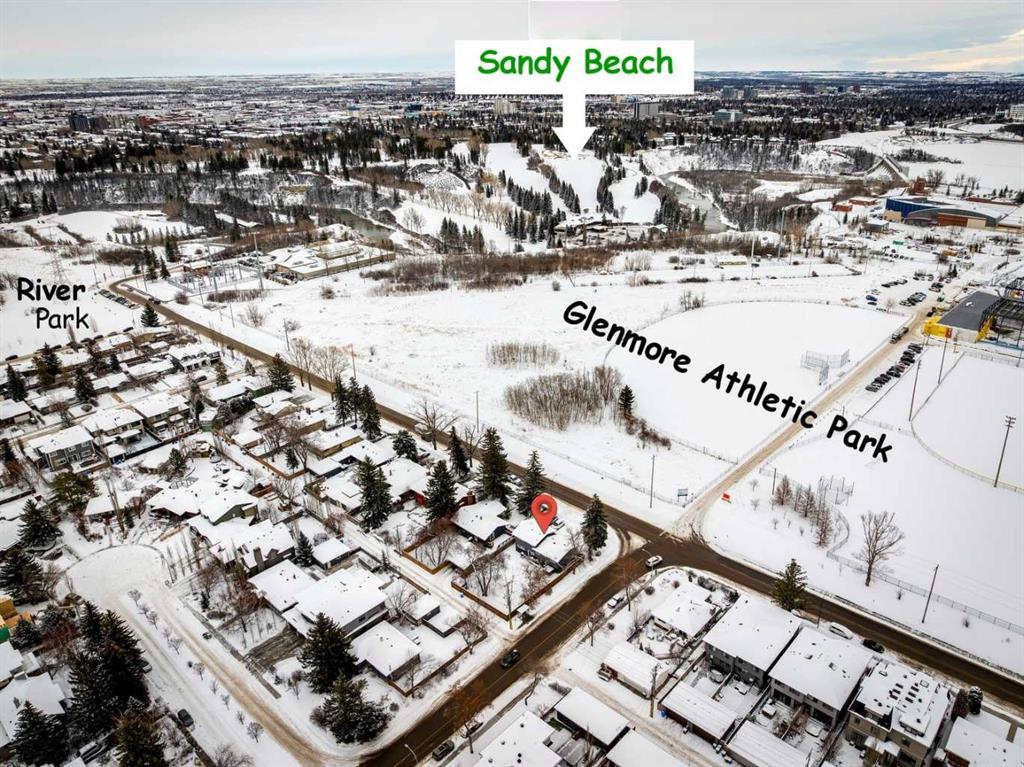 Offers subject to viewing. Incredible opportunity to redevelop this 63’x121′ corner lot facing Glenmore Athletic Park and only steps to River Park, Sandy Beach and Altadore Elementary School. Zoned RCG, this property offers an array of redevelopment opportunities. This super solid 4-level split with a single attached garage and five bedrooms offers a very livable home (current owners have been here for 14 years). Hardwood floors, open kitchen with replaced cabinets, granite countertops, newer backsplash and stainless steel appliances. Renovations to both baths, a beautiful full-height fireplace in the living room, a finished lower level with two bedrooms, a family room, and a small gym/flex room. New roof, newer on-demand boiler, high-efficiency furnace and more. Excellent holding property or redevelop now. Note: The access road to Glenmore Athletic Park across the street will be permanently closed. Offers are subject to viewing. Call Jon if any questions 403-827-9499. Offers are subject to viewing. No sign on property.