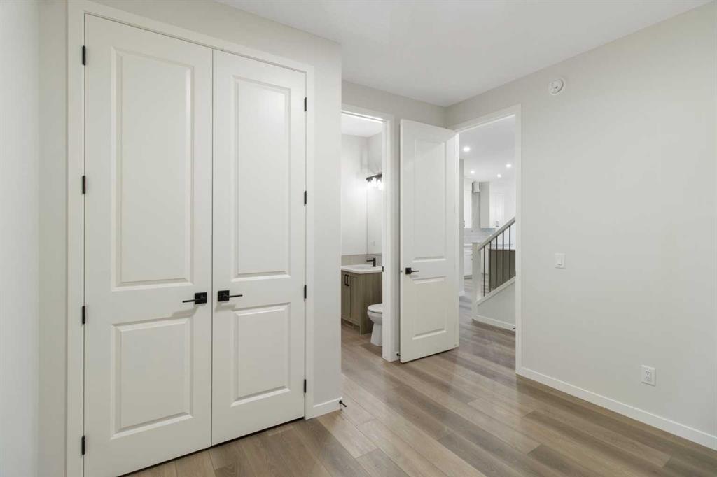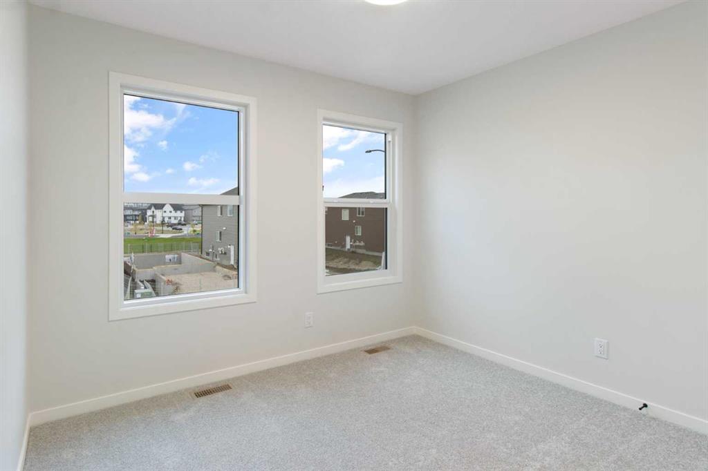 Welcome to your next chapter in the vibrant and growing community of Belmont in SW Calgary. This is a neighbourhood known for its family-friendly atmosphere, scenic pathways, and quick access to shopping, schools, and major routes like Macleod Trail and Stoney Trail. Whether you’re a growing family or looking for multigenerational flexibility, this 5-bedroom home checks all the boxes. Step inside and be greeted by light brown luxury vinyl plank flooring that flows seamlessly throughout the open-concept main floor. A versatile main floor bedroom perfect for guests, a home office, or family members, sits beside a full 3-piece bathroom for added convenience. The heart of the home is the upgraded chef-inspired kitchen, where bright white perimeter cabinets are beautifully balanced by a warm wood-toned island, upgraded designer backsplash tile, sleek quartz countertops, and striking black hardware throughout. You’ll get to choose your own appliances with an allowance of $7000 from the builder’s supplier. The kitchen overlooks both the spacious great room featuring a beautiful electric fireplace and sunny dining nook, creating an effortless flow for entertaining and everyday living. Off the dining area, step out to your rear-facing deck, perfect for summer BBQs and outdoor relaxation. Upstairs, cozy carpet welcomes you to a thoughtfully laid-out second level featuring a central bonus room ideal for movie nights or a kids’ play zone. The primary bedroom is a true retreat, complete with a spa-inspired ensuite (double vanities and a walk-in shower) and a generous walk-in closet. Three more bedrooms, a full bathroom, and an upper-floor laundry room round out this functional upper level. An attached garage adds convenience, and the unfinished walkout basement offers room to grow or customize to your lifestyle. Bonus: the basement is roughed in for a future legal suite (subject to permitting and approval by the city)! Create your backyard oasis with a $2,000 landscaping allowance to be provided to the buyer upon completion of landscaping. Whether you’re looking for more space, smart design, or a modern aesthetic, this Belmont beauty offers it all, set in a community that blends nature, accessibility, and a strong sense of connection. Don’t miss your chance to own in one of Calgary’s most exciting new neighbourhoods – book your showing today! *Some photos are Virtually Staged.*