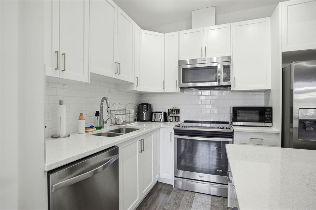 Discover exceptional value and effortless living in this beautifully designed townhouse in the community of Evanston. Perfectly positioned as a corner unit facing the courtyard, this home offers added privacy, abundant natural light, and a bright, airy atmosphere throughout. The thoughtfully designed open-concept layout is enhanced by soaring vaulted ceilings and windows on three sides, creating a warm and inviting living space ideal for both relaxing and entertaining. The contemporary kitchen showcases sleek white cabinetry, quartz countertops, stainless steel appliances, a functional island with seating, and a convenient pantry, delivering both style and practicality. Flow seamlessly from the spacious living and dining area to the covered balcony overlooking the courtyard, a perfect retreat for enjoying fresh air and quiet moments outdoors. The home features two well-appointed bedrooms, including a comfortable primary suite with a generous walk-in closet. A four-piece bathroom and in-suite laundry add everyday convenience to the main level. On the lower level, direct access to the single attached garage is complemented by additional flexible space that can be used for extra storage. Additional highlights include central air conditioning, a desirable courtyard-facing location, and a rare price point for the area. With limited opportunities available in this range, this home presents an outstanding chance to own in one of Calgary’s most desirable northwest communities.