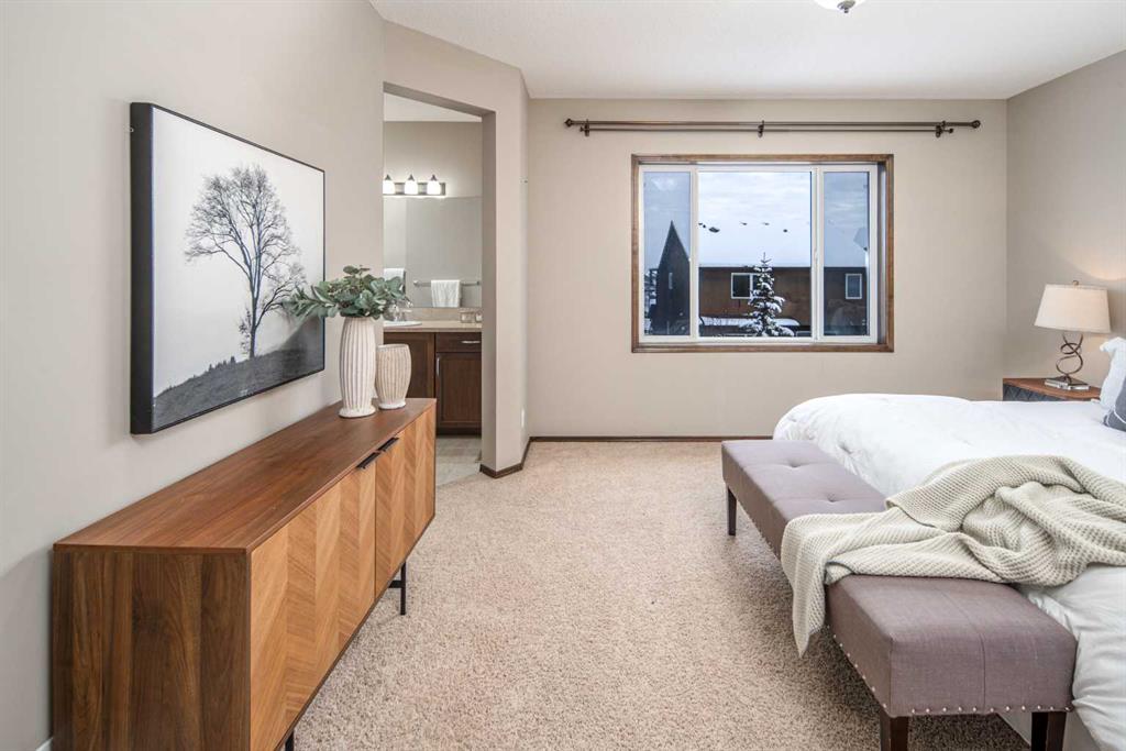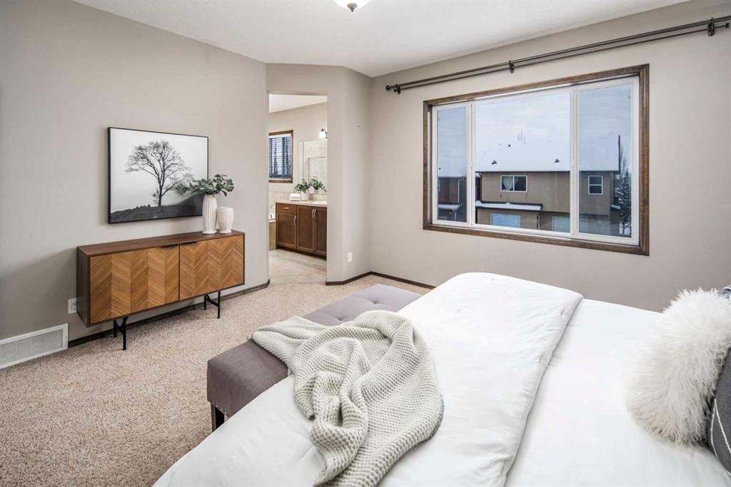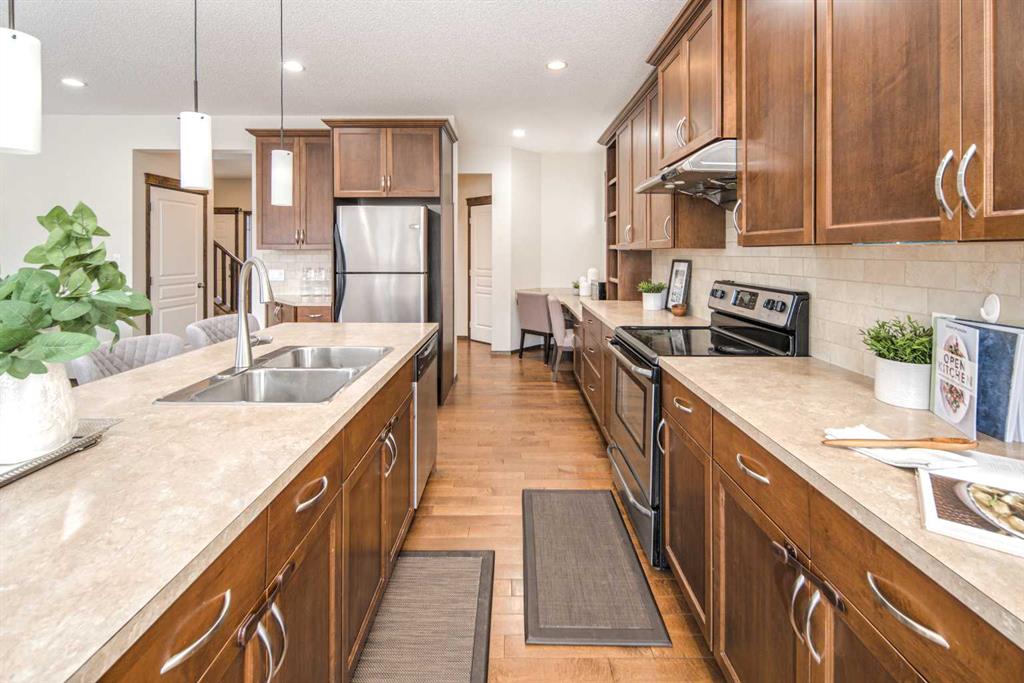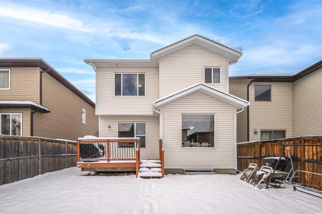 Welcome to this beautiful 3-bedroom, 2.5-bathroom home tucked away on a quiet street in the highly sought-after community of Evergreen. Pride of ownership is unmistakable from the moment you arrive, with impressive curb appeal enhanced by a new roof and complete exterior siding replacement (2021). Inside, a grand front foyer welcomes you with gleaming maple hardwood floors and flush-mount vents. The expansive chef’s kitchen is a true showpiece, showcasing rich maple cabinetry, stainless steel appliances, a timeless tile backsplash, a walk-through pantry, and an oversized central island perfect for cooking, entertaining, and gathering. Connected to the kitchen, the spacious living room features a gas fireplace with a contemporary mantel and tile surround, while the bright dining nook and living area are framed by large windows that fill the space with natural light. main floor highlights include a private half bath, a convenient laundry area, and a fully insulated and double garage. Both the main floor and second level feature rare 9-ft ceilings, adding to the home’s open and airy feel. Upstairs, two generous secondary bedrooms share a full 4-piece bathroom, while the substantial bonus room is ideal for family movie nights or a cozy lounge space. The serene primary suite overlooks the lush backyard and features a spa-inspired ensuite with a luxurious soaker tub, separate tiled shower, and a walk-in closet with custom built-ins. The lower level is undeveloped and ready for your personal touch. Ideally located just steps from greenspace, an elementary school, and Fish Creek Park, and only minutes from Costco, shopping, and the ring road, this home perfectly blends style, comfort, and convenience.