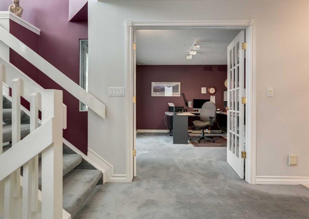 An incredible opportunity awaits for RENOVATORS, FLIPPERS, INVESTORS and all SAVVY buyers in the highly desirable community of Hawkwood. This executive-style home backs directly onto GREEN SPACE and offers breathtaking VIEWS of the ROCKY MOUNTAINS and foothills. With over 3000 SQUARE FEET above grade, this spacious home is perfect for buyers looking to renovate and add their personal touch while appreciating a well-designed layout and unbeatable location. The main floor features VAULTED CEILINGS, elegant spindle railings, and TIMELESS architectural details. Enjoy a formal living room with a gas fireplace and custom precast concrete mantle, a generous dining room, and a functional kitchen with granite countertops. One of the home’s standout features is the bright glass-enclosed sunroom—perfect for family breakfasts, dinners, or simply soaking in the views and nature year-round. A cozy family room with a second fireplace, a private office, and a powder room complete the main level. Upstairs, the large primary bedroom includes a private sundeck with PANORAMIC MOUNTAIN VIEWS, a luxurious ensuite with jetted tub and walk-in shower, and ample closet space with built-ins. Two additional bedrooms, a full bathroom, and an upper-floor laundry room offer added convenience for family living. The fully finished basement features a media room with a wood stove, a games area, flex space that could be used as a 4th bedroom, and another full bathroom—ideal for entertaining or guest accommodation. Outside, the private tiered backyard offers a peaceful retreat surrounded by mature trees, flowering shrubs, and a tranquil pond/fountain. A multi-level deck with gas line for BBQ makes outdoor dining and entertaining easy. Notable upgrades include some vinyl windows, two hot water tanks, and a durable metal roof. Located just minutes from Crowfoot Shopping, Melcor YMCA, the LRT, the University of Calgary, and with easy access to Stoney Trail and the mountains, this home combines space, views, and incredible potential in one of NW Calgary’s most sought-after communities. Don’t miss this rare chance to create your dream home in an exceptional location. Click the media icon for the video tour and book your private showing today!