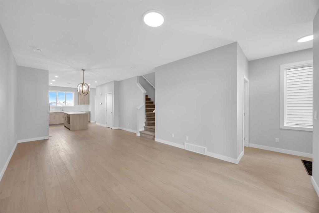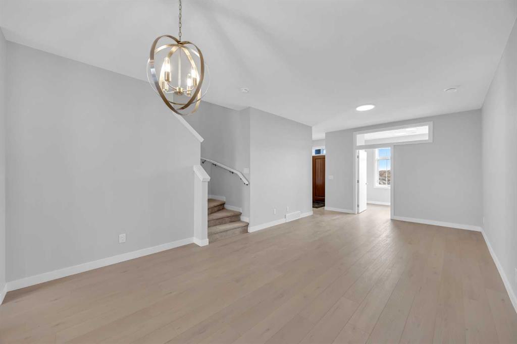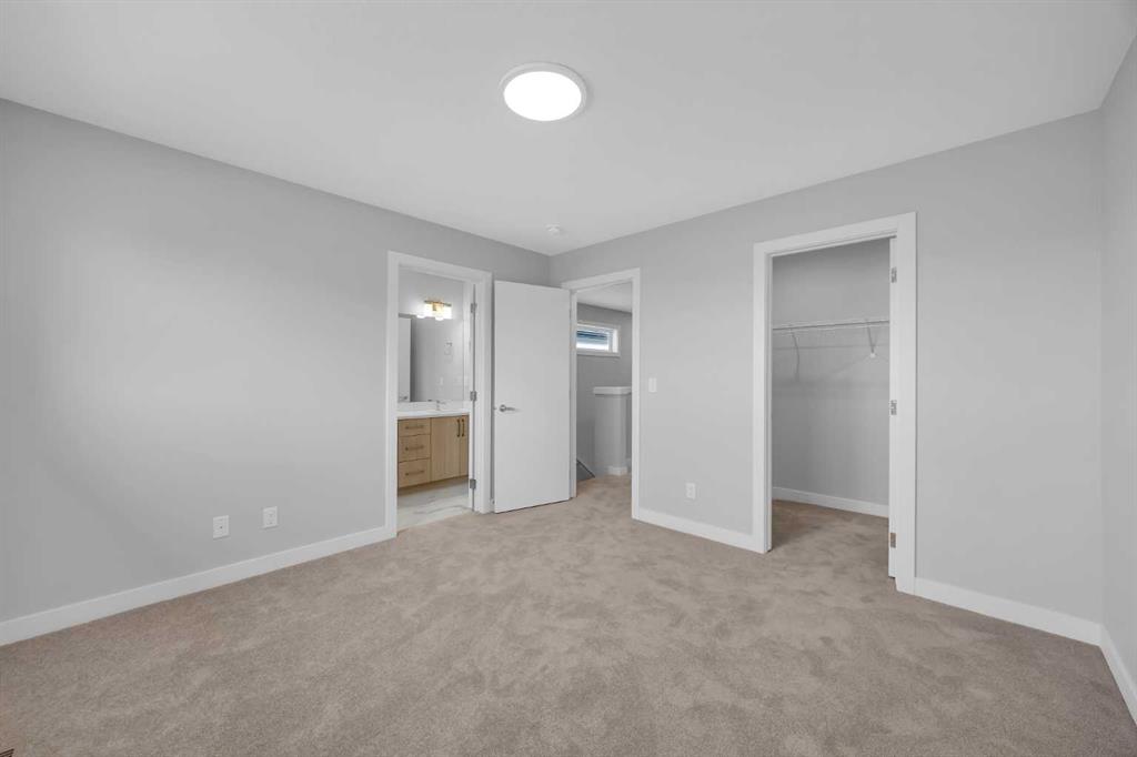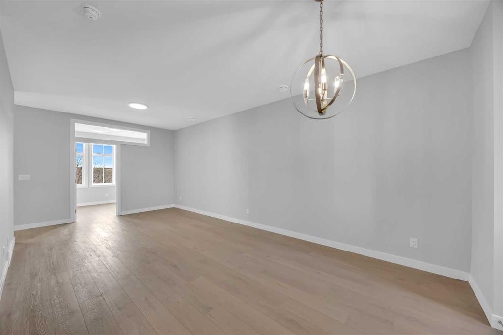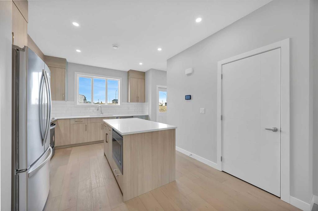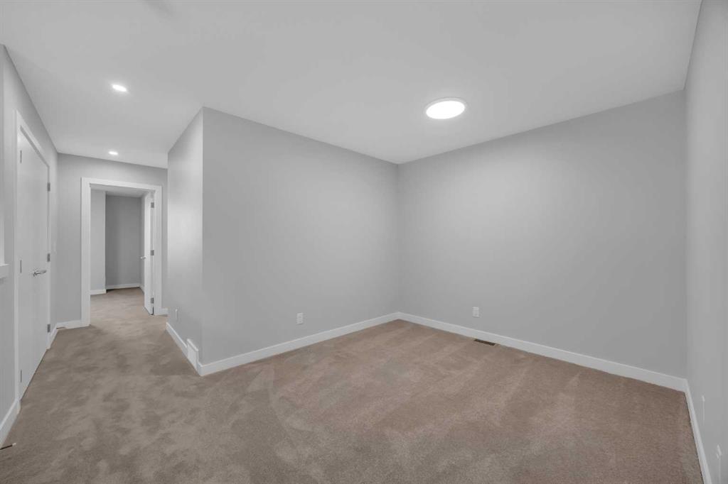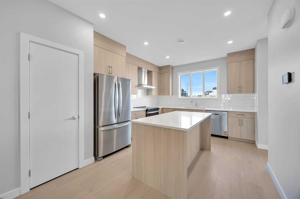 Welcome to The Edward by Partners Homes in Keystone Creek, a brand new home in NE Calgary offering 4 bedrooms including a main floor bedroom, 3 full bathrooms, a central bonus room, and a side entrance. Designed for modern living, this home combines a functional layout, upgraded finishes, and flexibility in one of North Calgary’s growing communities. The main floor features a bright open concept layout with a front flex room that can easily be used as a fourth bedroom, home office, or guest space, ideal for multi-generational living. A full bathroom is also located on the main level. The kitchen is the focal point of the home, finished with full height cabinetry, quartz countertops, a large island, and a chimney-style hood fan with built-in microwave. The stainless steel appliance package includes an upgraded electric range, along with a gas line to the range. The dining and living areas flow together seamlessly, creating a comfortable space for everyday living and entertaining. A rear mudroom provides additional storage and access to the backyard, and a BBQ gas line is already in place. Upstairs, the primary bedroom offers a private retreat with a walk-in closet and ensuite featuring dual vanities and a tiled walk-in shower. Two additional bedrooms and a central bonus room provide flexible living space, perfect for a family room, media area, or playroom. Upper level laundry with washer and dryer is included for added convenience. The basement features 9 foot ceilings and a wet bar rough-in, offering additional space for future development. Additional features include knockdown ceilings, a prairie elevation, upgraded interior finishes, front landscaping, and a 20’ x 21’ gravel parking pad with alley access and future garage potential. Located in Keystone Creek, NE Calgary, this home offers access to parks, pathways, and nearby amenities, with convenient connections to Stoney Trail, Deerfoot Trail, CrossIron Mills, and Calgary International Airport. A well-designed new construction home in North Calgary that offers space, flexibility, and long-term value.