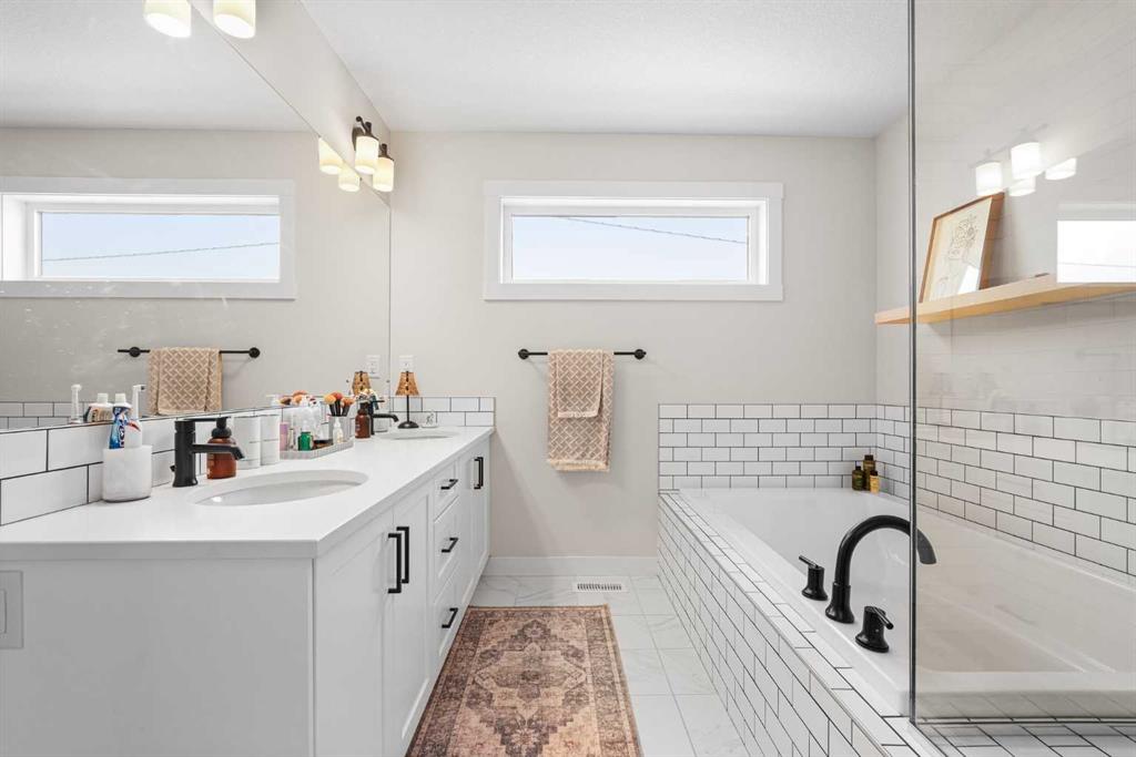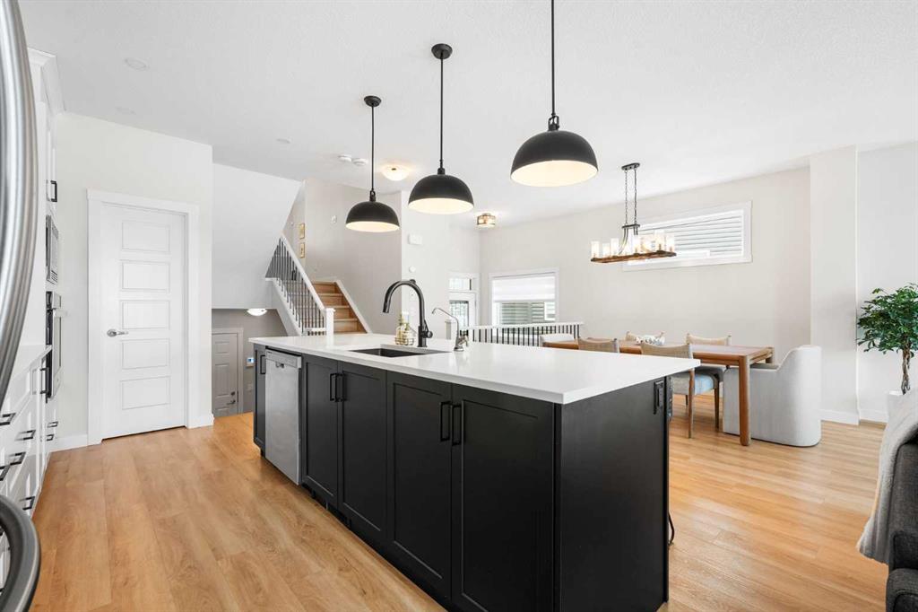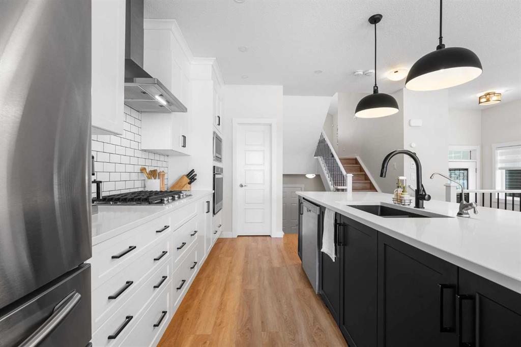 Welcome to this beautifully designed 4-level split offering 2,163 sq. ft. above grade plus a fully developed 710 sq. ft. walkout basement, perfectly located on a quiet half cul-de-sac—an ideal setting for families. The open-concept main floor is bright and inviting, featuring a high-end kitchen with quality finishes and excellent flow for everyday living and entertaining. Just up a level, the stunning bonus room showcases a dramatic vaulted ceiling and an elegant built-in bookshelf, creating a warm and functional space for relaxing or gathering. The upper level hosts three spacious bedrooms, including the primary retreat complete with a walk-in closet and a well-appointed ensuite featuring double sinks. A standout large walk-in laundry room with custom built-ins adds both luxury and convenience to daily living. The walkout basement is fully developed and incredibly versatile, offering a fourth bedroom, full bathroom, private office, and a large recreation room—perfect for guests, a home workspace, or additional family living space. Situated on a quiet, family-friendly street, this home is ideal for children and offers unbeatable access to shopping, amenities, and major routes including the ring road. A rare combination of space, design, and location—this home truly has it all.