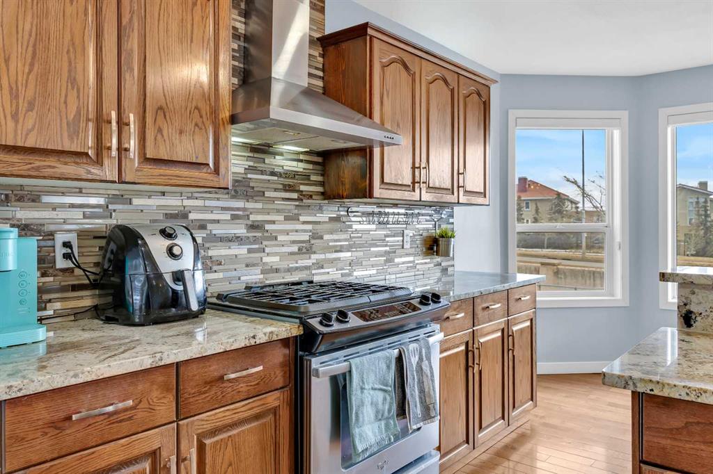 Elegance meets Practicality in this thoughtfully designed home. For the discerning buyer, this home has nice curb appeal, sits on an elevated lot with sunshine basement, has a wider double garage to easily accomodate 2 automobiles. The main floor features a living room with stone-facing gas fireplace to cozy up on chilly nights, while the south facing kitchen and dining room are so bright they will just light up every day and you will get to WITNESS THE STUNNING MOUNTAIN VIEWS EVERYDAY! The upgraded kitchen cabinets feature solid oak doors, granite countertops, sleek stainless appliances, and a sizeable pantry. With its nicely appointed finishings and elegant hardwood flooring throughout the main floor living areas, this home is designed to SATIATE ALL YOUR FAMILY NEEDS. Upstairs you have a KING SIZED FAMILY ROOM with nice open views, 3 good sized bedrooms (master has separate closet from bathroom and a privacy door for the ensuite washroom). The details matter and this home has many curated details so all your needs are fulfilled! The basement is developed with 2 bedrooms (windows may not pass egress with current code), and a full 4-piece bathroom, large family room so you can watch movies or chill out on hot summer days. The EXPANSIVE REAR YARD HAS A MASSIVE DECK FOR YOUR SUMMER PARTIES AND OUTDOOR ENTERTAINMENT! Relax and soak up the sun on the south-facing deck, where you will find TRUE RELAXATION WITH THE PICTURESQUE MOUNTAIN AND VALLEY VIEWS to the south and west. WALKING DISTANCE TO THE PARKS, TUSCANY SHOPPING DISTRICT WHERE YOU WILL FIND STARBUCKS, SOBEY’S AND A SELECTION OF LOCAL AMENITIES. THIS IS THE PERFECT LOCATION FOR QUICK AND EASY ACCESS IN OR OUT FROM THE NEIGHBORHOOD. Come and become the newest member in one of Calgary’s Premier neighborhoods. Quick access to the Tuscany C-TRAIN station, schools and community bicycle trails which connect to Calgary’s regional pathway system.