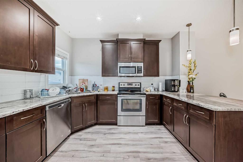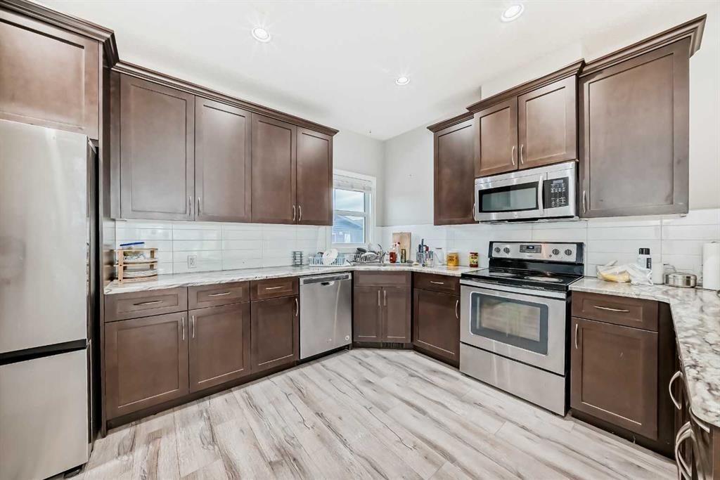 PERFECT LOCATION WITH LEGAL BASEMENT-Welcome to this beautiful single-family home located in the heart of Cornerstone—one of Northeast Calgary’s most desirable communities. This well-maintained property features a fully LEGAL BASEMENT SUITE and an oversized DOUBLE DETACHED GARAGE, offering exceptional value for families, investors, or first-time homebuyers. The main floor features an open-concept layout designed for comfort and style. Enjoy a bright, spacious living room that flows into a modern kitchen equipped with stainless steel appliances, a large island, and ample cabinet space perfect for cooking, hosting, and everyday living. At the rear, a fully developed deck provides a low-maintenance outdoor space ideal for relaxation and gatherings, with easy access to the double garage. Upstairs, you will find three generous bedrooms and two full bathrooms, including a well-appointed primary suite. A convenient upper-floor laundry room adds to the home’s practicality. The legal basement suite, complete with its own separate side entrance, includes two additional bedrooms, a full bathroom, a functional kitchen, and a spacious recreation area—ideal for extended family or rental income opportunities. Located just minutes away from parks, bus stops, and shopping centers, this home offers both comfort and convenience in a vibrant, growing community. Don’t miss your chance to own this spacious, versatile, and beautifully maintained home in Cornerstone!