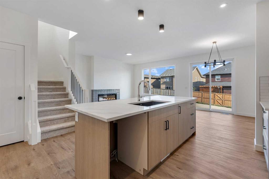 Brand new home built by Homes by Fifty Six, located in Heritage Hills of Cochrane. This home is loaded with upgrades & features which include: quartz, LVP, Tile, electric Fireplace, oversized garage, wrought iron railings, lots of windows allowing lots of natural lighting, 9′ ceilings main & lower, walk through pantry, south facing yard, back lane & much more. The main floor features a den, 2c bath, spacious great room with fireplace & a good size kitchen that offers an island, walk through pantry & breakfast nook that has access to the yard. The upper floor features a bonus room, 4pc bath, laundry & 3 good size bedrooms. The primary bedroom offers a walk in closet & full ensuite. The lower level is awaiting your ideas. Heritage Hills offers a blend of small-town charm and modern amenities. Residents enjoy access to parks, green spaces, and local conveniences such as Mountain Ridge Plaza, which hosts services like a pharmacy, fitness center, and dining options. The community is served by designated schools including Glenbow Elementary, Mitford School, and Bow Valley High School. With its tranquil atmosphere and proximity to both Calgary and outdoor recreational areas, Heritage Hills is an attractive choice for families and individuals seeking a balanced lifestyle. Fifty6 is devoted to the craft of legendary home-building. With a heritage dating back to 1956, building on the past and bringing a modern perspective to homebuilding and design. Click on link to view 3D walkthrough.