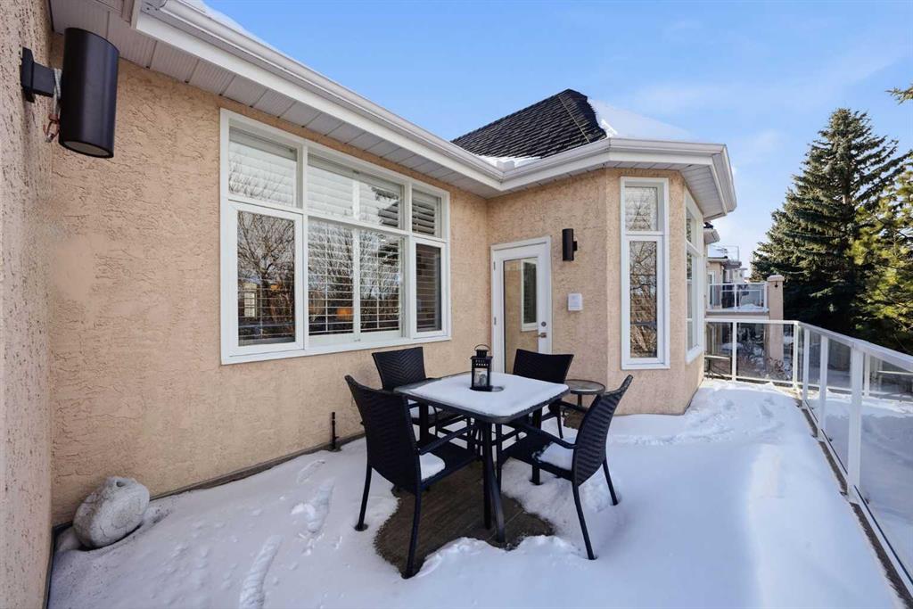 At the front of the home is a private sitting terrace finished with cobblestone pavers, creating a great outdoor space to enjoy the quiet street and mature surroundings.