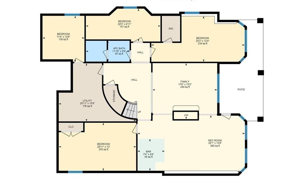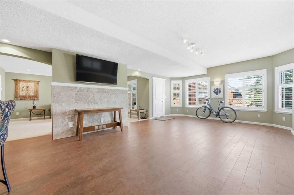 The walkout basement includes 4 additional bedrooms, 1 full bathroom with a steam shower, and a large rec room with a wet bar, built-in speakers for media room surround sound, and a second gas fireplace.