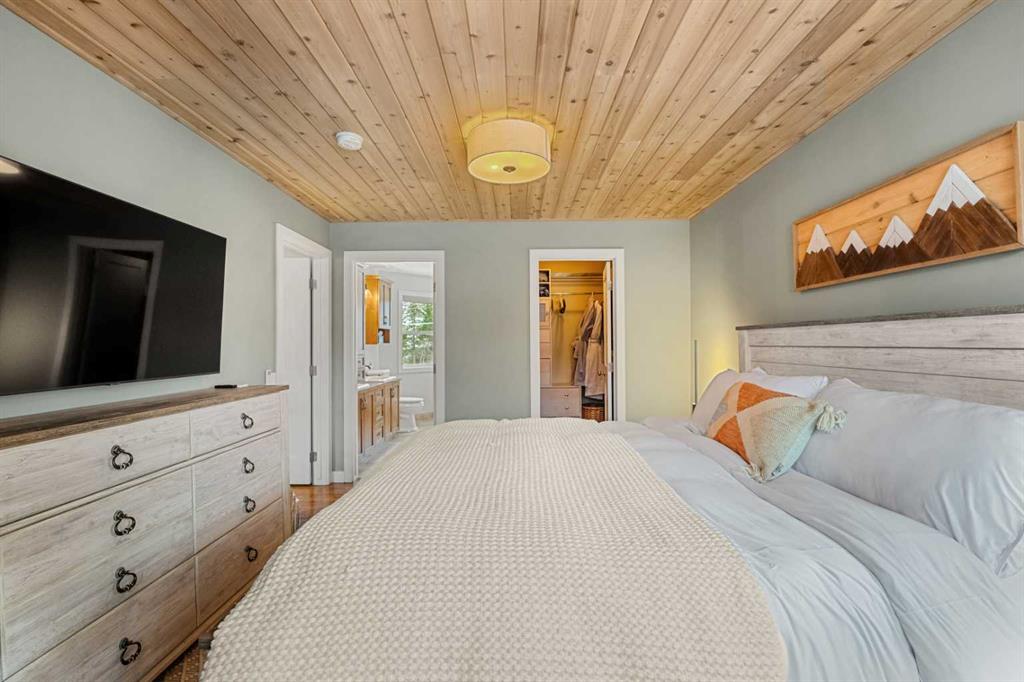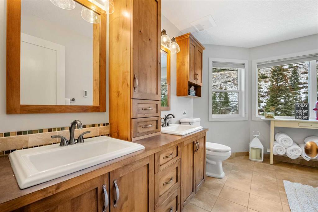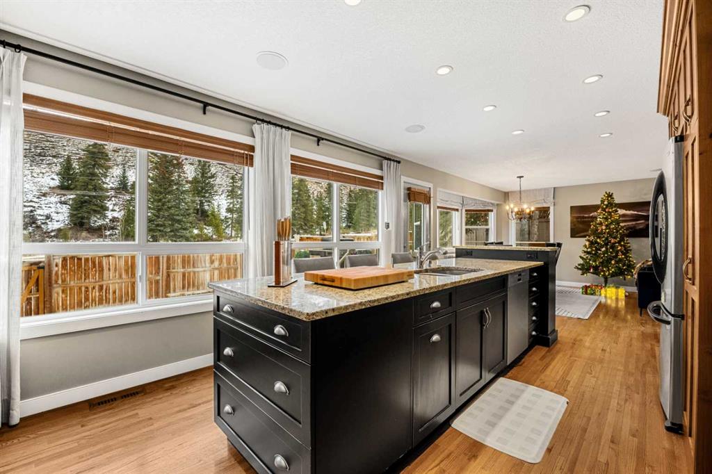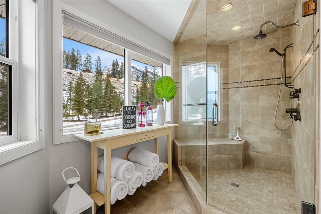 With 4 bedrooms, a fully finished basement, and major mechanical upgrades already done—including a newer roof, central A/C, and updated furnace and hot water tank—there’s truly nothing left to do but move in. A tiled entryway leads to a grand staircase and a warm, inviting living area. The jaw-dropping kitchen is the heart of the home, featuring stunning cabinetry, granite counters, a beverage centre, gas stove, and a massive dining nook wrapped in windows with patio-door access to your private backyard oasis. Upstairs, you’ll find three spacious bedrooms, including a perfect home-office option with corner windows framing Three Sisters and Lawrence Grassi mountain views. The primary suite impresses with a cedar-finished ceiling, generous closet, and a beautiful ensuite with dual sinks and a large walk-in shower.