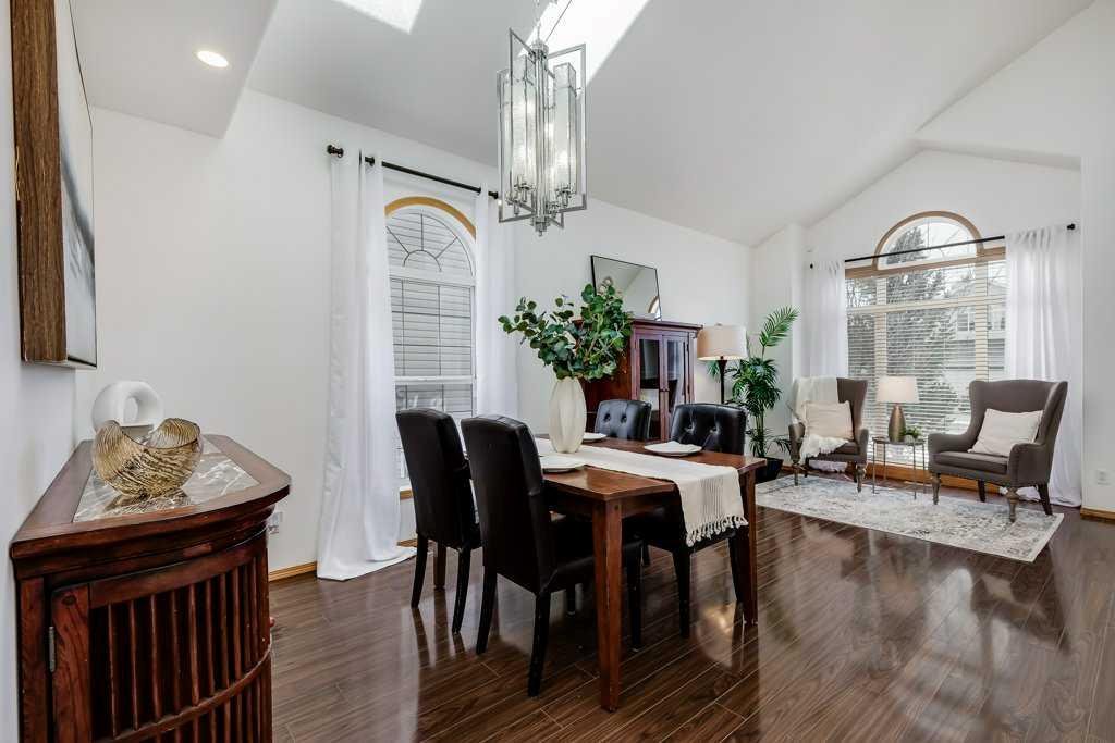 With soaring ceilings, multiple living spaces, and five spacious bedrooms, this home offers the kind of room that growing families are always searching for. The main floor welcomes you with soaring vaulted ceilings and three skylights, filling the space with natural light and creating an open, airy feel throughout the main living areas. The home has been freshly professionally painted and professionally cleaned, including the carpets, making it move-in ready from day one. As you enter, you’ll appreciate the large front living room and the convenience of a walk-in closet at the front entry — a rare and practical feature for busy households. A dedicated main floor office with doors provides the privacy needed for working from home or managing day-to-day tasks. The updated kitchen features warm finishes, abundant counter space, pot and pan drawers, a corner pantry, and a double oven, making it perfect for cooking and entertaining. The layout offers both a formal dining space for gatherings and a bright everyday dining area for casual meals. This home is equipped with central air conditioning, and several key mechanical updates have already been completed, including a new furnace in 2023 and hot water tank in 2025, plus a roof that is approximately 10 years old. With five large bedrooms, there is plenty of space for a growing family. The fully developed lower level adds even more flexibility with a kitchenette, a sauna, and a bathroom with heated floors, creating an ideal space for guests, extended family, or entertaining. Outside, the mature trees in the backyard provide privacy and character, while the location offers quick access to golf, schools, and nearby amenities. Homes with this much space, flexibility, and such a great location rarely come along. If you’re looking for a property that can comfortably accommodate a large family while still offering excellent entertaining space, this one deserves a spot on your list.