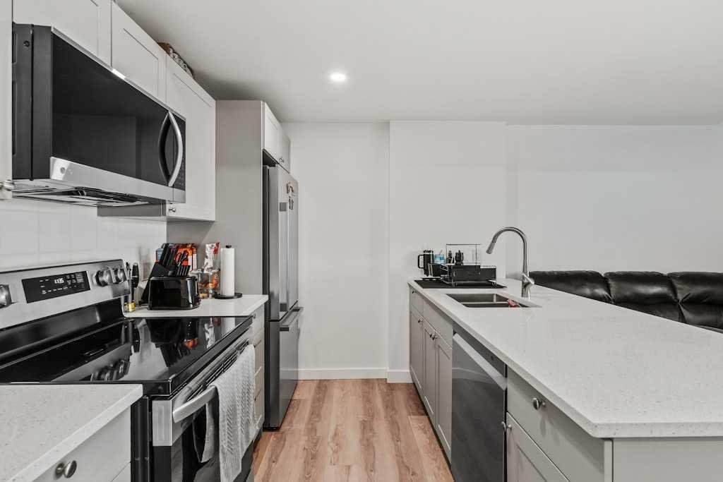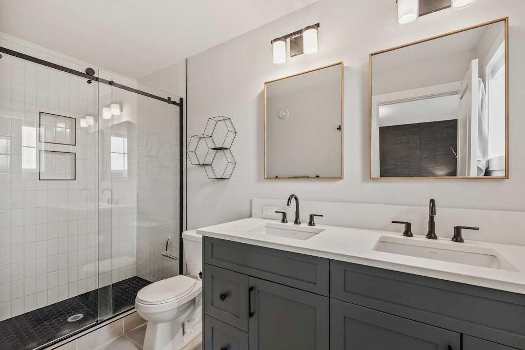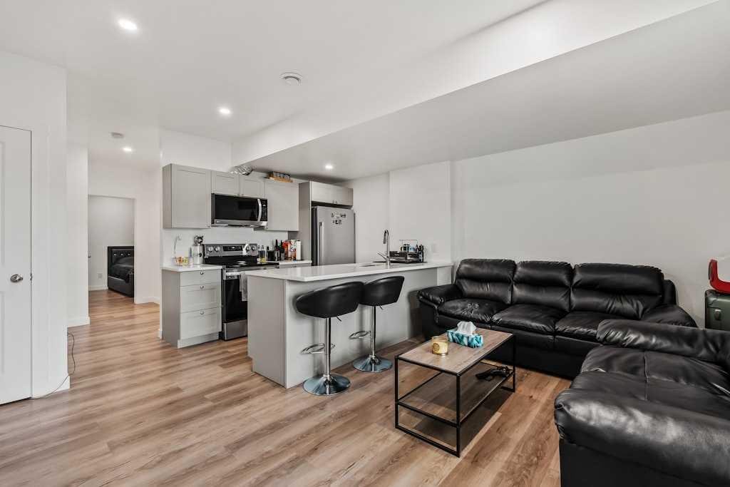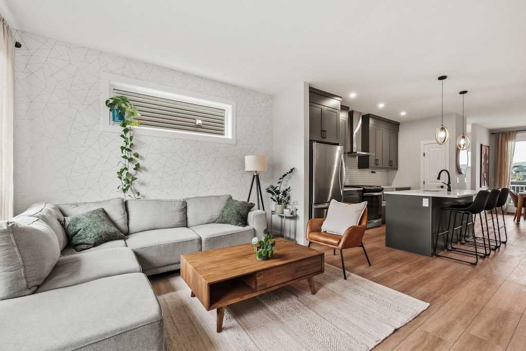 Meticulously maintained and stylishly upgraded, this beautiful home with a COMPLETELY SEPARATE, WALK-UP LEGAL SUITE combines modern design with flexible living options directly across from Rockland Park Pond and the new Rockland Park Discovery Centre. A welcoming front balcony invites you to relax or entertain while enjoying park views and evening sunsets. Inside, the open main floor is filled with natural light. The dining area features chic designer lighting and direct access to the patio, setting the stage for memorable gatherings. A chef-inspired kitchen anchors the heart of the home with stainless steel appliances including a gas stove, full-height cabinetry, timeless subway tile, stone countertops, a spacious pantry and a large centre island that encourages casual connection. Clear sightlines extend to the inviting living room where oversized windows frame backyard views and a modern feature wall adds warmth. A discreet powder room completes this level. Upstairs, the primary retreat offers a restful atmosphere with a walk-in closet and a spa-inspired ensuite featuring dual sinks and an oversized shower. Two additional bedrooms are generously sized, complemented by a stylish 4 pc bathroom and the convenience of an upper-level laundry room. The legal basement suite echoes the same designer flair as the main residence. A large living room, modern kitchen with stainless steel appliances and peninsula island with seating, separate laundry, a spacious bedroom, and a full 4 pc bathroom provide privacy and independence for extended family or the opportunity for rental income. Outside, a double detached garage ensures secure parking and storage, while the paved back lane adds convenience. Across the street, Rockland Park Discovery Centre provides an extraordinary lifestyle amenity hub with a 6,500 sqft HOA building, outdoor pool, hot tub, fire pit, gathering spaces, casual skate trail, hockey rink, basketball courts, picnic and bbq shelters, amphitheatre, playground and lush gardens. Scenic walking paths and ponds weave throughout the community, creating a tranquil environment that supports both active and relaxed lifestyles. This home delivers exceptional versatility for families, multi-generational living or those seeking a mortgage helper, all in a vibrant amenity-rich community!