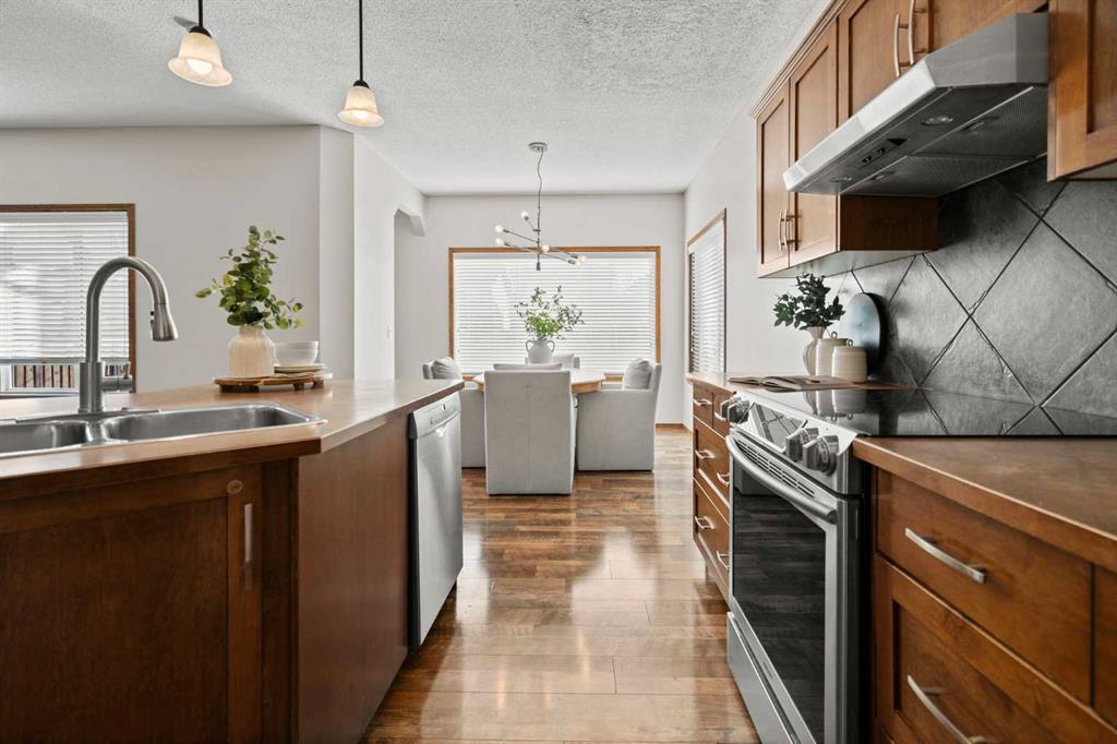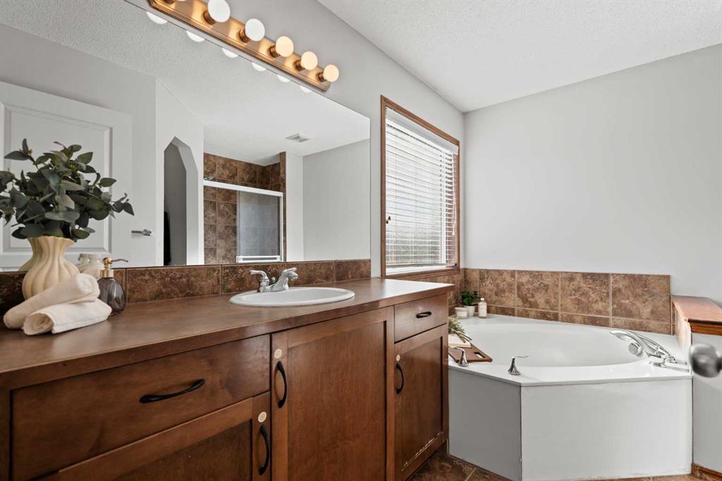 Welcome to this beautifully maintained 4-bedroom, 3.5-bathroom home located on a quiet street in McKenzie Towne. The main floor features hardwood flooring, a cozy gas fireplace, and a bright, functional layout that flows seamlessly through the living and dining spaces. Upstairs, you’ll find a spacious bonus room with a charming Juliette balcony, along with the primary suite that offers a relaxing retreat complete with a corner soaker tub, walk-in shower, and generous walk-in closet. The fully finished basement includes durable LVP flooring and soft to touch carpet with a raised subfloor system, in-floor heating in the guest ensuite bathroom, and a stand out media room, wired for surround sound plus a spacious gym area with rubber floor matting. Outside, enjoy a completely low-maintenance backyard with composite decking, a built-in hot tub, astro turf, and professional landscaping, all enclosed by a new fence. The 24×26 ft parking pad is ready for a future garage, offering added convenience and value. Major updates include furnace (2022), air conditioning (2022), and hot water tank in 2017, Fresh paint on the main and 2nd floor. This beautiful home is move-in ready and available for immediate possession—get settled before Christmas!