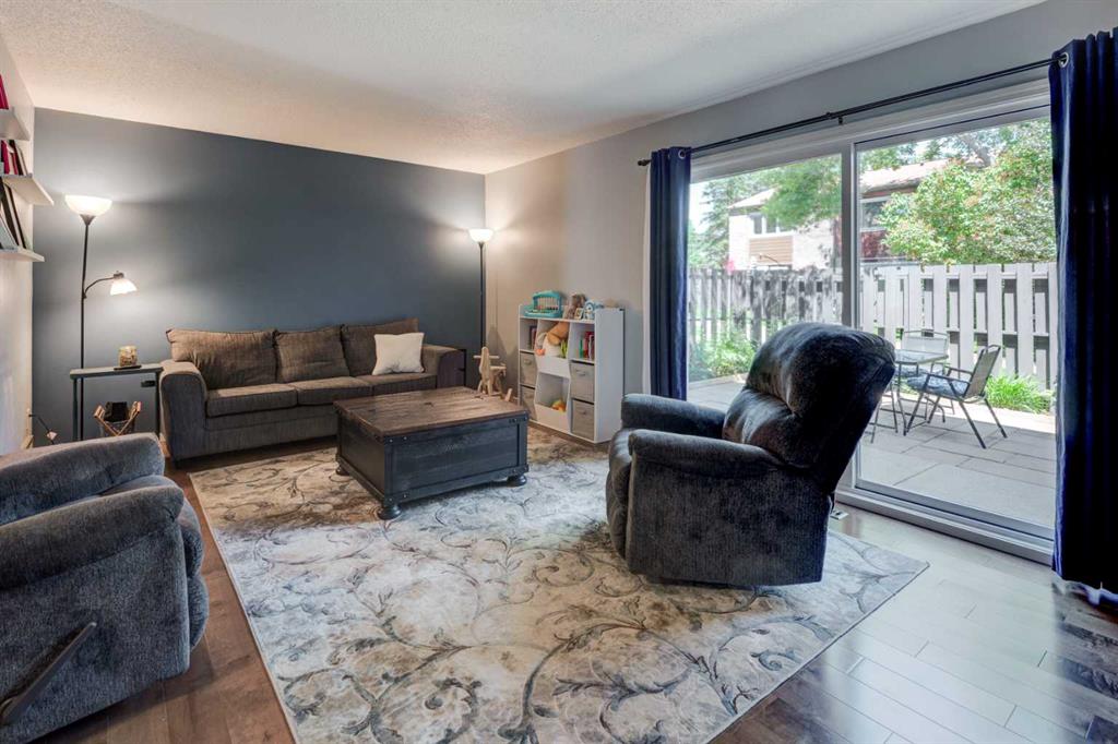 Charming End-Unit Condo in Highland Estates, Acadia. Welcome to this fantastic end-unit condo with attached garage in the sought-after Highland Estates, perfectly located in the heart of Acadia. This bright and inviting 3-bedroom, 1.5 bath home offers over 1,500 sq. ft. of living space and checks all the boxes for today’s discerning buyer. Here are the main level highlights: Spacious kitchen flooded with natural light, ample cabinetry and counter space, and a generous eat-in area, Gleaming engineered hardwood flooring in the living room/dining room, Open-concept, bright, living and dining room, ideal for entertaining, Convenient half-bath, and access to a private patio off the living room —perfect for summer BBQs and morning coffee. Second Level Features: Large primary bedroom, Updated 4-piece bath with tiled surround, Two additional bedrooms, perfect for kids, guests, or a home office. Lower Level Convenience: Partially finished basement with direct access to the attached single garage, Large Laundry and utility room. Extra driveway parking for added convenience. Perks: Low condo fees of $370/month, Walking distance to parks, playgrounds, schools, and shopping, Easy access to Macleod Trail and Heritage LRT station and Acadia Rec Centre, a community hub with tons of events and activities. Upgrades Include: Front Door Dec 2024, Windows April 2020 (except office), Kitchen upgrades 2021-2025, Upper Bathroom December 2020, Hot Water Heater October 2020. This home offers the perfect blend of space, functionality, and location. Whether you’re a first-time buyer, a growing family, or looking to downsize, this pet-friendly gem in Acadia is ready to welcome you!