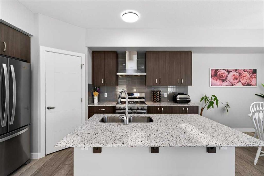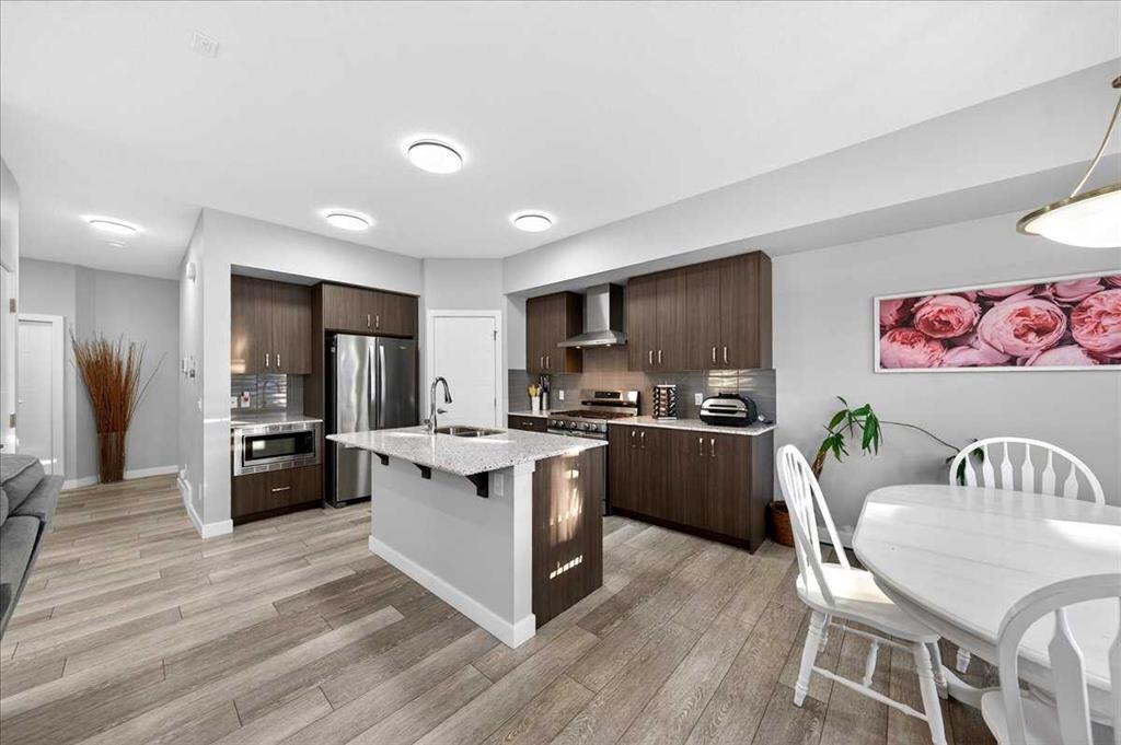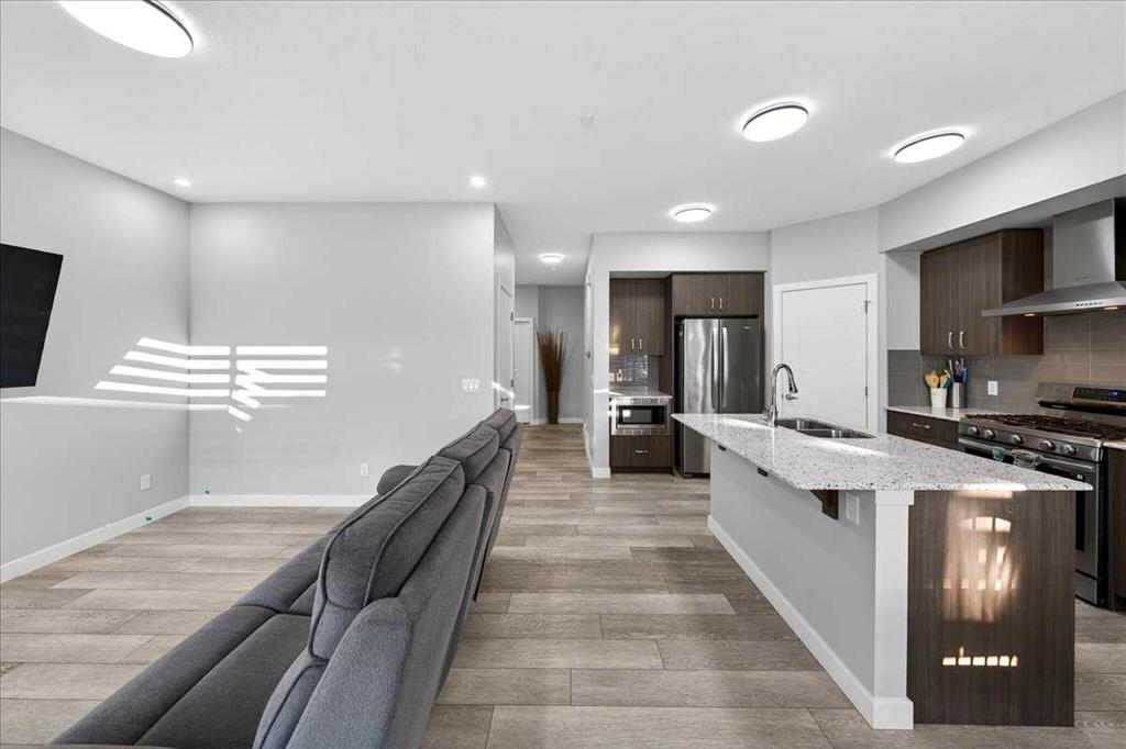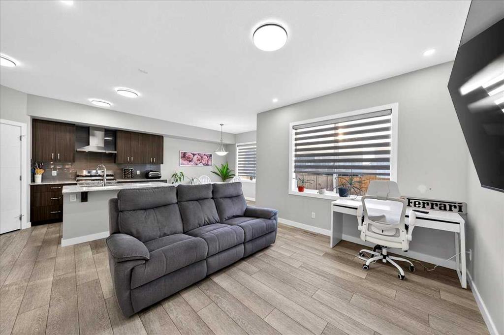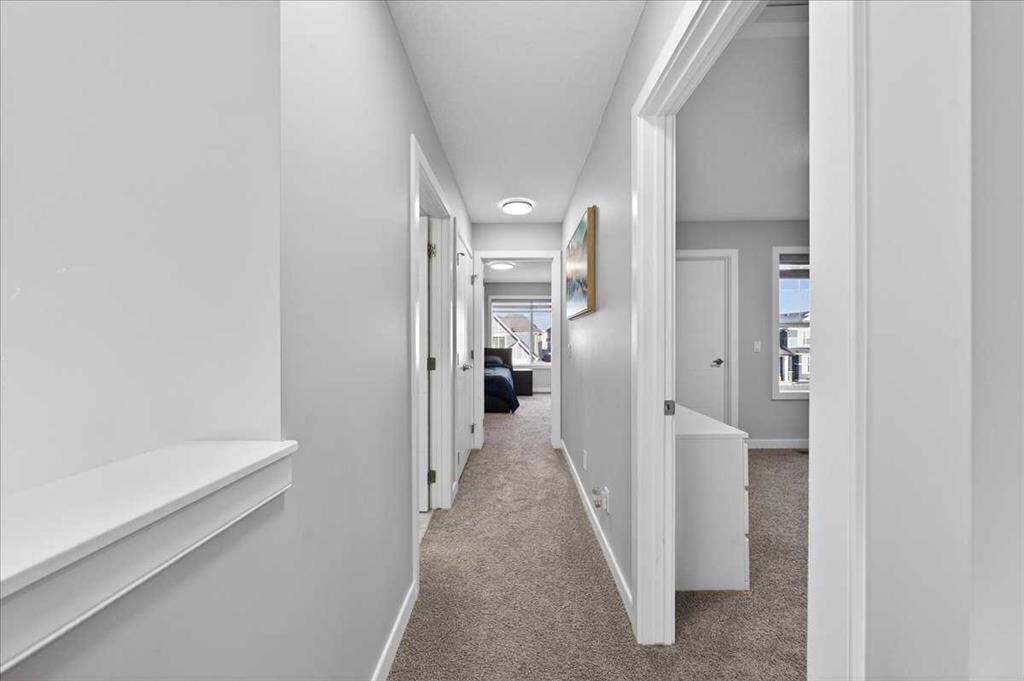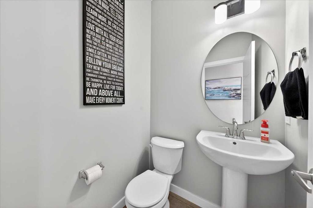 Welcome to Belmont, a thoughtfully designed two-storey home offering 1,706 sq ft of comfortable and functional living space. This beautifully upgraded home features 3 bedrooms and 2.5 bathrooms, perfectly suited for modern family living. The main floor boasts a bright rear dining nook and a spacious living room filled with natural light, flowing seamlessly from the upgraded kitchen. Enjoy quartz countertops, stainless steel appliances including a built-in microwave and gas stove, a large island, and a convenient walk-in pantry—ideal for both everyday use and entertaining. A practical mudroom and 2-piece bath complete the main level. Upstairs, you’ll find a central bonus/family room that provides a great space for relaxing or gathering, along with a full laundry room for added convenience. The private primary bedroom features a walk-in closet and a 3-piece ensuite, while the additional bedrooms also include their own walk-in closets, offering plenty of storage for the whole family. The basement is undeveloped and includes a separate side entrance, providing excellent potential for future development or rental income, subject to city approvals and permits. Close to all the amenities. With a well-balanced layout designed for both comfort and functionality, this home in the desirable Belmont community is a fantastic opportunity you won’t want to miss!